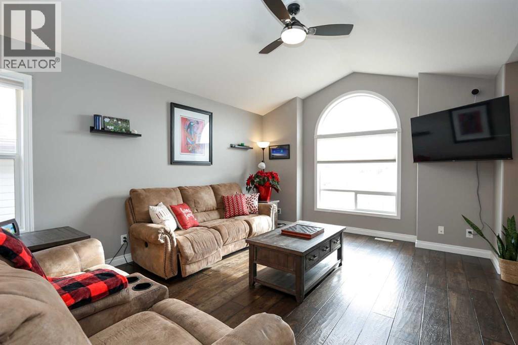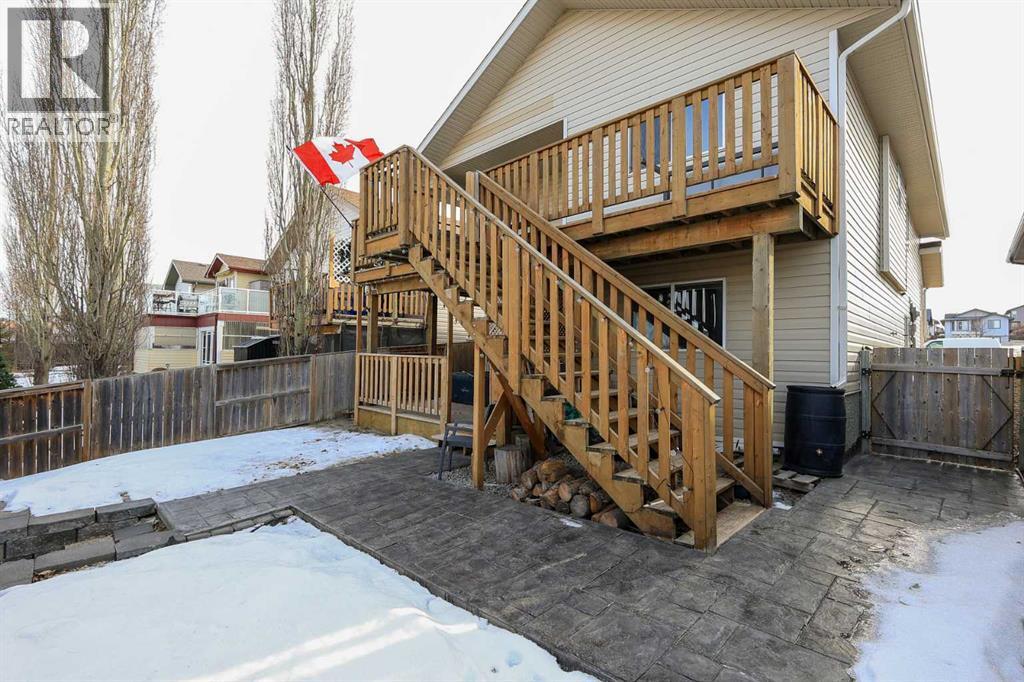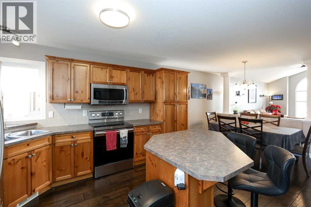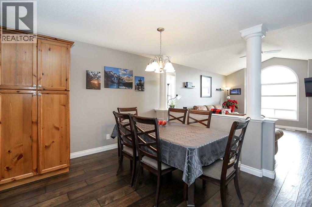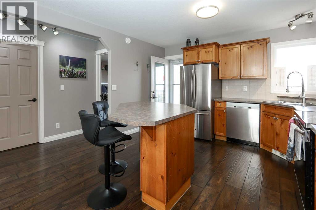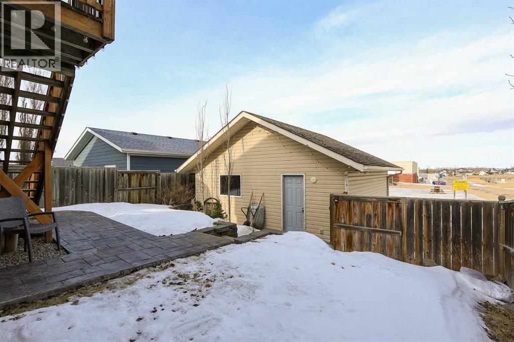 FULLY DEVELOPED 3 BEDROOM, 3 BATHROOM BI-LEVEL ~ WALKOUT BASEMENT ~ HEATED DOUBLE GARAGE & RV PARKING ~ FACING A GREEN SPACE & BACKING ONTO A PARK & SCHOOLS ~ Sunny south facing front yard with raised garden boxes with an irrigation system ~ Covered front veranda welcomes you and leads to a bright and spacious foyer with high ceilings ~ The living room features vaulted ceilings and a large south facing window that fills the space with natural light while offering beautiful park views ~ Architectural columns provide a visually appealing separation between the living and dining space while maintaining an open floor plan ~ The kitchen offers plenty of pine cabinets with crown moulding and built in wall pantry; ample counter space including an island with an eating bar; full tile backsplash; and a window above the sink that overlooks the deck and park ~ Garden door access to the partially covered upper deck that spans the entire width of the home, has a gas line, and offers park views ~ The primary bedroom can easily accommodate a king size bed, has ample closet space, and a 3 piece ensuite ~ Second main floor bedroom is also a generous size and is conveniently located next to the 4 piece main bathroom ~ The fully finished, walkout basement has large above grade windows, high ceilings and operational in-floor heating ~ Family room/den (currently being used as a home office) has board and batten wainscotting and opens to the rec room with plenty of space for a seating area and games table or home gym, plus a separate entry leading to a covered deck (with wiring roughed in for a hot tub), and the backyard ~ 3rd bedroom is conveniently located next to a 3 piece bathroom with a walk in shower ~ Laundry is located in it's own room, has a large window and tons of space for storage ~ The backyard is landscaped and fully fenced ~ HEATED 22' x22' detached garage with shelving, 220V wiring on it's own sub panel, and a workbench (seller will replace shingles on garage before poss ession) ~ RV parking beside the garage with an easy approach and paved back alley ~ Backing onto Meadowview Park, École Fox Run School and École Mother Theresa Catholic School ~ Easy access to walking trails, more great parks and playgrounds, shopping, dining, and the beach/Lakeshore Drive ~ (id:49203)
