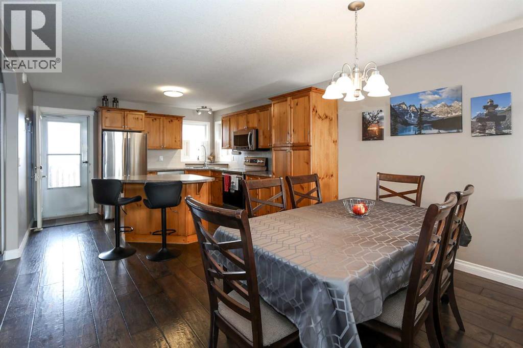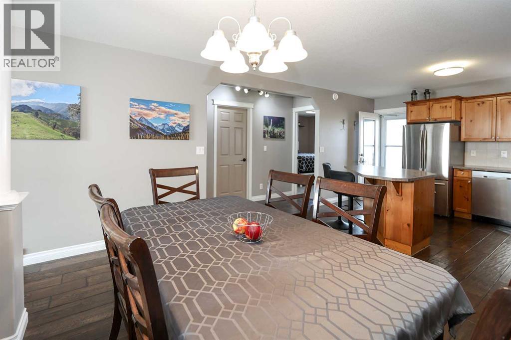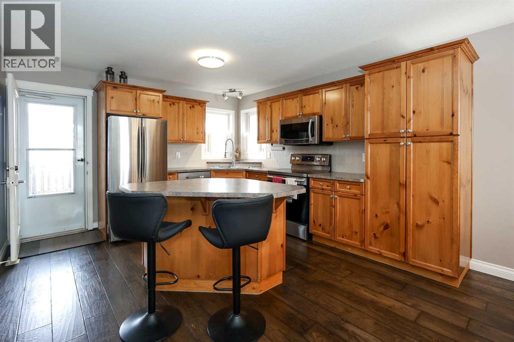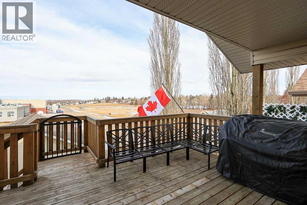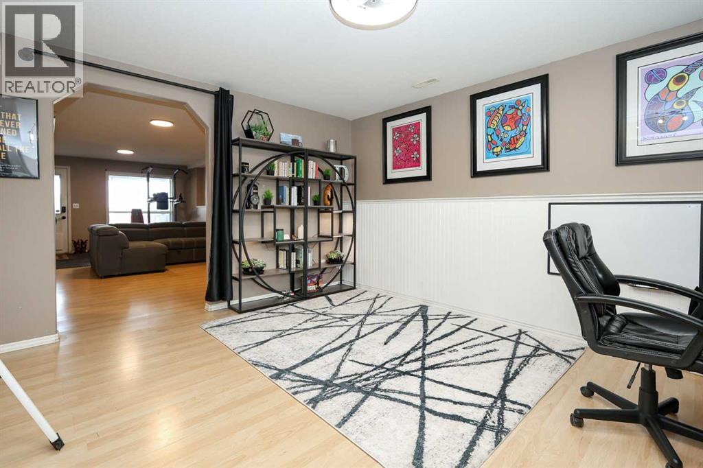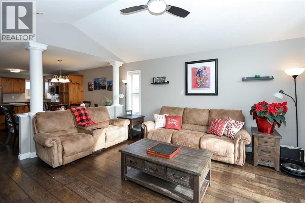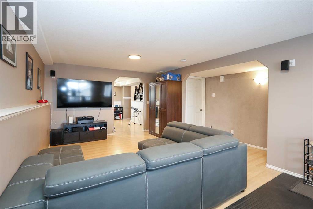 FULLY DEVELOPED 3 BEDROOM, 3 BATHROOM BI-LEVEL ~ WALKOUT BASEMENT ~ HEATED DOUBLE GARAGE & RV PARKING ~ FACING A GREEN SPACE & BACKING ONTO A PARK & SCHOOLS ~ Sunny south facing front yard with raised garden boxes with an irrigation system ~ Covered front veranda welcomes you and leads to a bright and spacious foyer with high ceilings ~ The living room features vaulted ceilings and a large south facing window that fills the space with natural light while offering beautiful park views ~ Architectural columns provide a visually appealing separation between the living and dining space while maintaining an open floor plan ~ The kitchen offers plenty of pine cabinets with crown moulding and built in wall pantry; ample counter space including an island with an eating bar; full tile backsplash; and a window above the sink that overlooks the deck and park ~ Garden door access to the partially covered upper deck that spans the entire width of the home, has a gas line, and offers park views ~ The primary bedroom can easily accommodate a king size bed, has ample closet space, and a 3 piece ensuite ~ Second main floor bedroom is also a generous size and is conveniently located next to the 4 piece main bathroom ~ The fully finished, walkout basement has large above grade windows, high ceilings and operational in-floor heating ~ Family room/den (currently being used as a home office) has board and batten wainscotting and opens to the rec room with plenty of space for a seating area and games table or home gym, plus a separate entry leading to a covered deck (with wiring roughed in for a hot tub), and the backyard ~ 3rd bedroom is conveniently located next to a 3 piece bathroom with a walk in shower ~ Laundry is located in it's own room, has a large window and tons of space for storage ~ The backyard is landscaped and fully fenced ~ HEATED 22' x22' detached garage with shelving, 220V wiring on it's own sub panel, and a workbench (seller will replace shingles on garage before poss ession) ~ RV parking beside the garage with an easy approach and paved back alley ~ Backing onto Meadowview Park, École Fox Run School and École Mother Theresa Catholic School ~ Easy access to walking trails, more great parks and playgrounds, shopping, dining, and the beach/Lakeshore Drive ~ (id:49203)