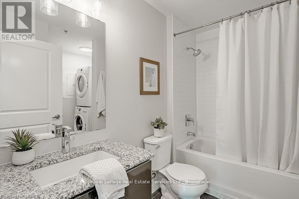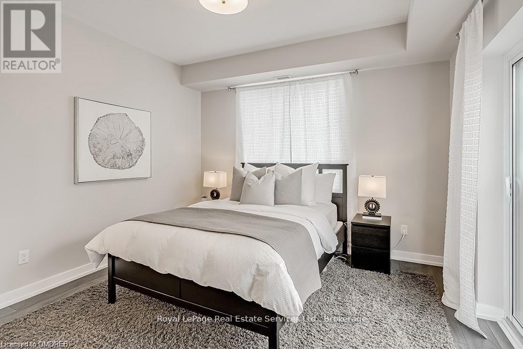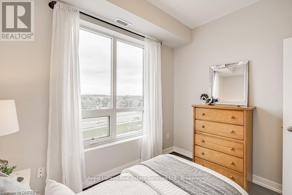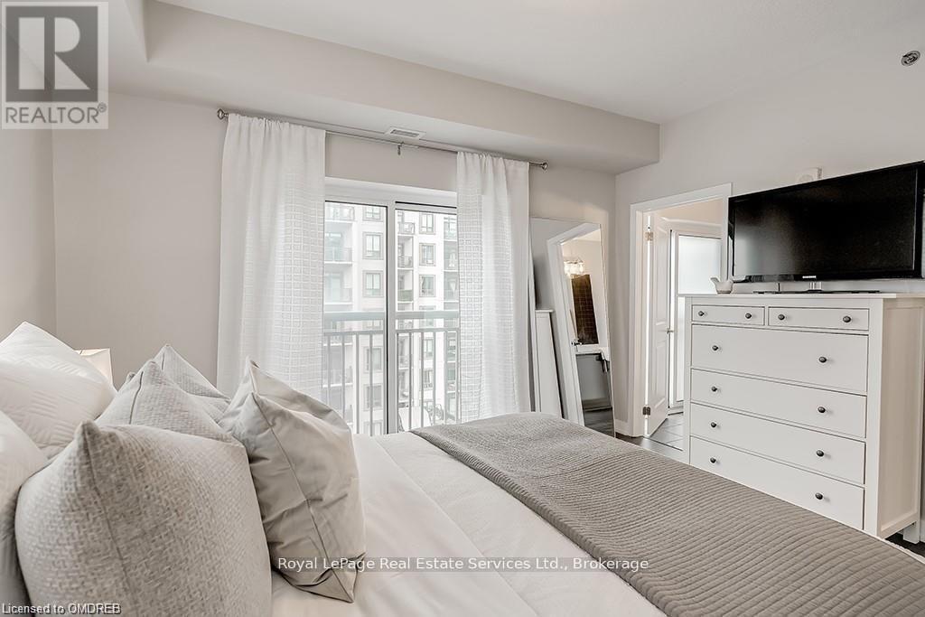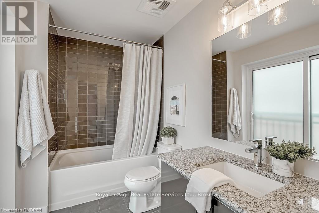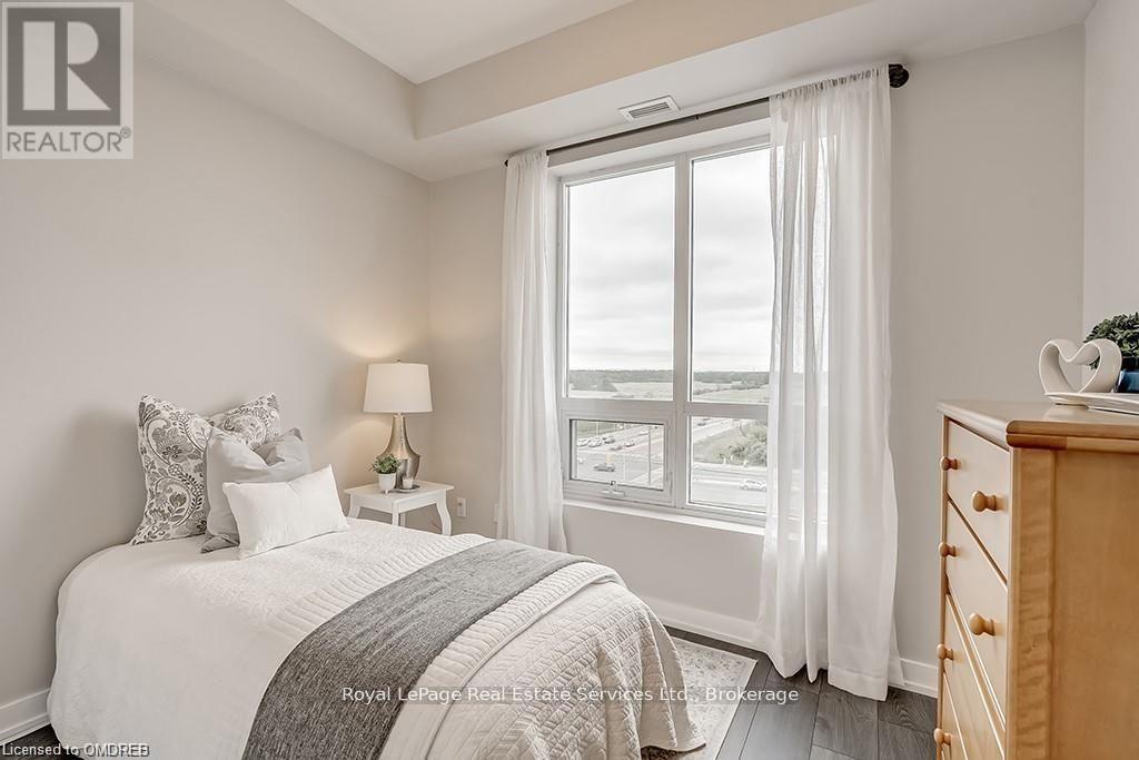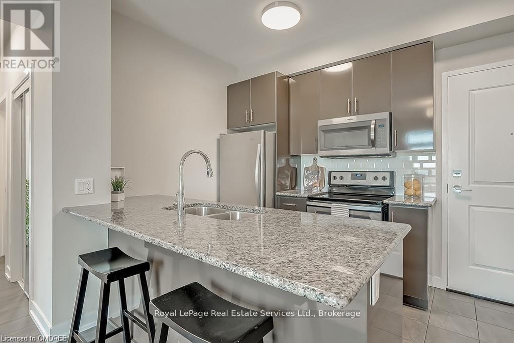 Stunning 2 Bed 2 Bath Corner Unit with 2 Underground Parking Spaces + 1 Locker. This condo showcases a modern interior flooded with natural light and countless builder upgrades. Functional Galley-style kitchen with sleek high-gloss cabinetry, granite counters, full-size stainless steel appliances & bar seating. Bright & spacious living room provides access to the private, north facing balcony with unobstructed green space & escarpment views. Massive primary bedroom with space for a king bed, huge walk-in closet, Juliette balcony & 4pc ensuite with granite counters and upgraded Kohler fixtures. Sizeable 2nd bedroom features large closet and oversized window. 4pc main bathroom with granite counters & upgraded Kohler fixtures. In-suite laundry with upgraded front-load washer & dryer. Geothermal building means that heating, cooling as well as water are included in the rent. Great central location with quick access to Oakville, Burlington, Milton & major Hwys. Building amenities include gym, yoga room, party room & rooftop patio. No pets + no smoking. (id:49203)
