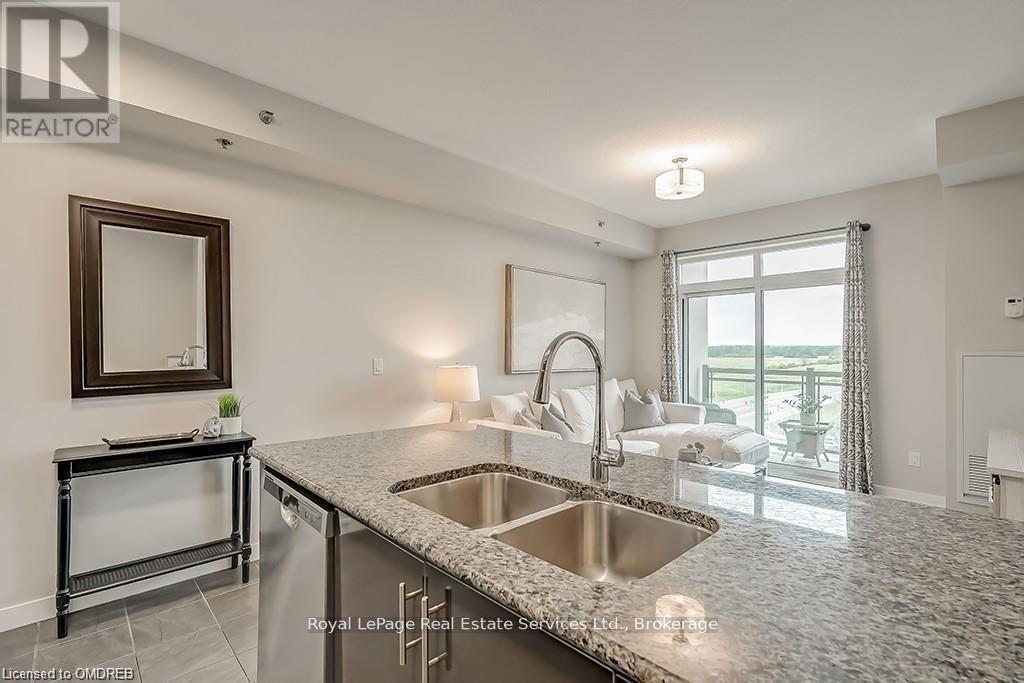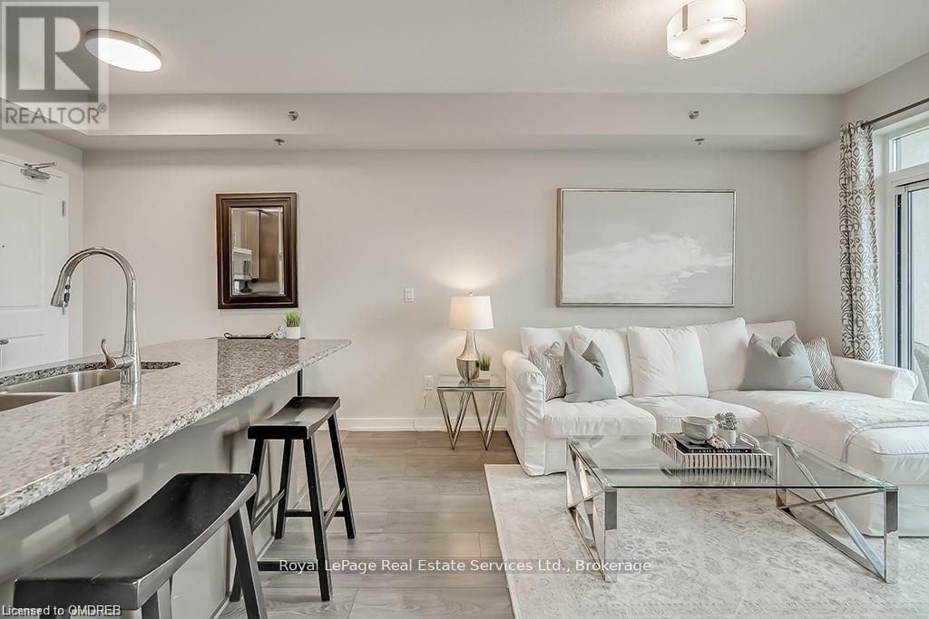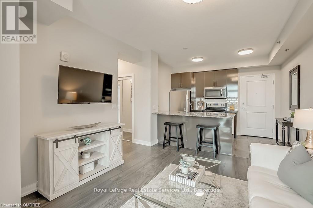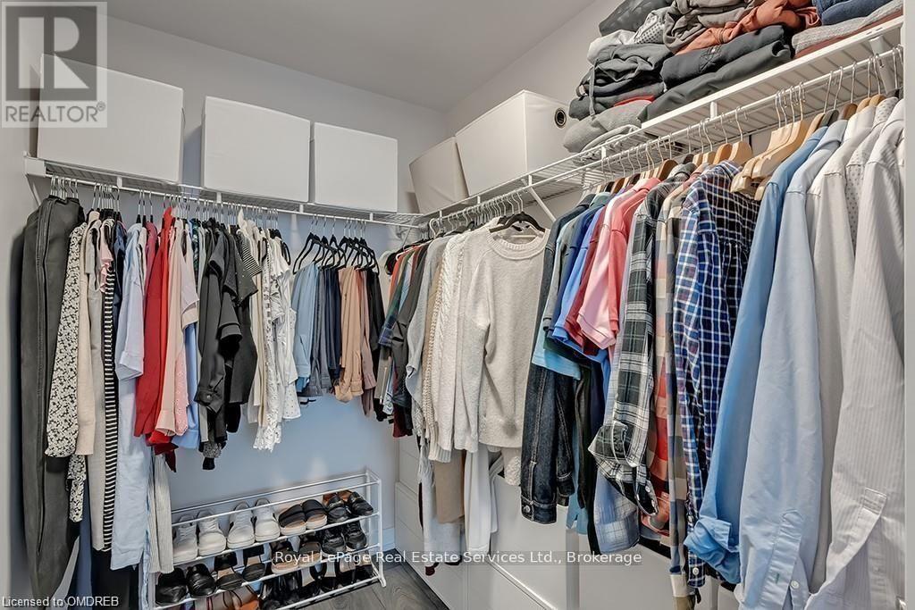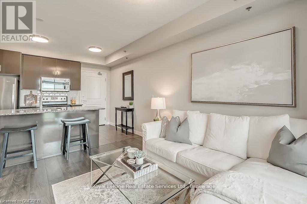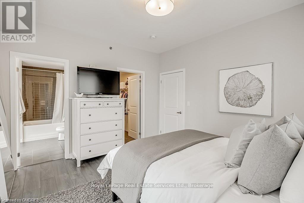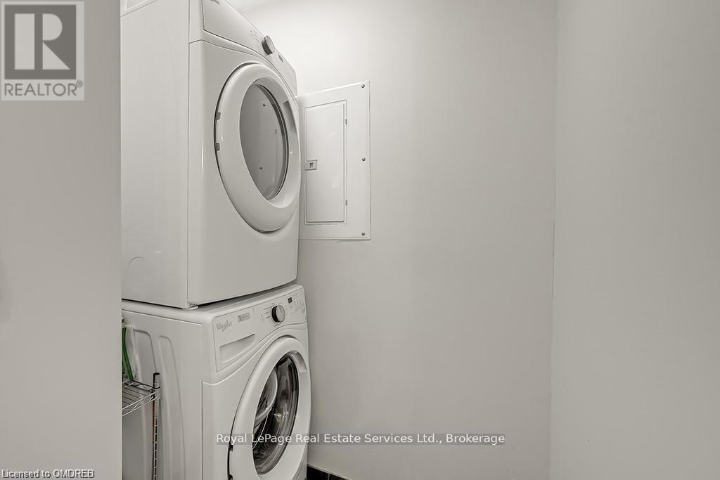 Stunning 2 Bed 2 Bath Corner Unit with 2 Underground Parking Spaces + 1 Locker. This condo showcases a modern interior flooded with natural light and countless builder upgrades. Functional Galley-style kitchen with sleek high-gloss cabinetry, granite counters, full-size stainless steel appliances & bar seating. Bright & spacious living room provides access to the private, north facing balcony with unobstructed green space & escarpment views. Massive primary bedroom with space for a king bed, huge walk-in closet, Juliette balcony & 4pc ensuite with granite counters and upgraded Kohler fixtures. Sizeable 2nd bedroom features large closet and oversized window. 4pc main bathroom with granite counters & upgraded Kohler fixtures. In-suite laundry with upgraded front-load washer & dryer. Geothermal building means that heating, cooling as well as water are included in the rent. Great central location with quick access to Oakville, Burlington, Milton & major Hwys. Building amenities include gym, yoga room, party room & rooftop patio. No pets + no smoking. (id:49203)