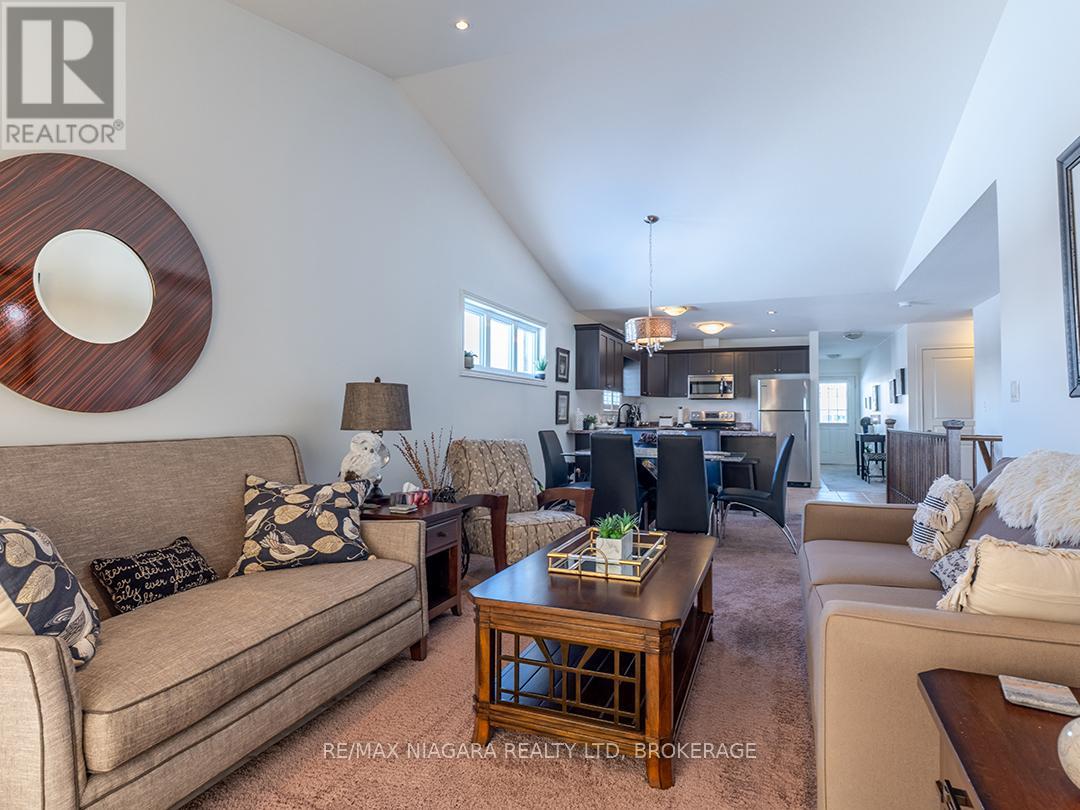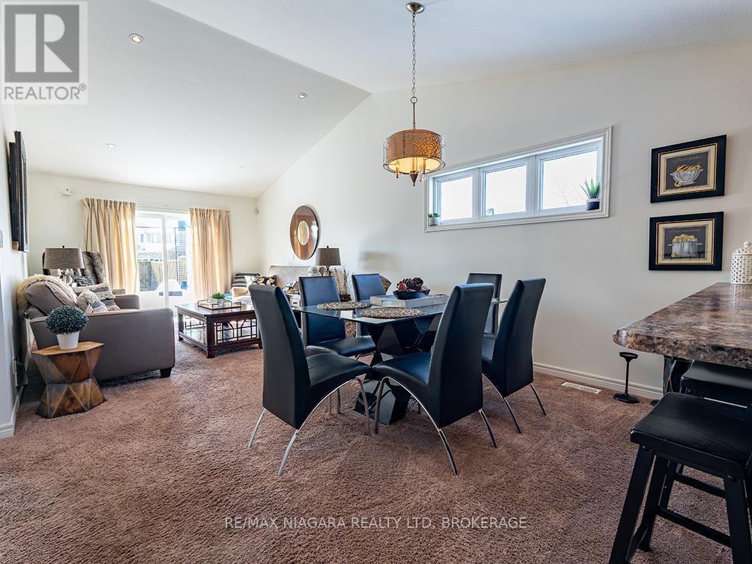 Well-kept end-unit bungalow townhome located in the sought-after Coyle Creek / Harvest Estates neighbourhood. Built in 2013, this 2+1 bedroom, 1.5 bath home offers 1,170 sq. ft. of main-floor living in a peaceful, family-oriented community.The open-concept main level features a bright kitchen, dining area, and living room with sliding doors leading to a sunny deck and fully fenced backyard. The full basement provides additional living space with a finished rec room featuring a gas fireplace, a third bedroom, a 2nd bathroom, and plenty of storage. Mainfloor laundry closet is located by the inside entry to the attached garage. A covered front porch adds welcoming curb appeal. This popular southwest Welland location is close to the Welland Recreational Waterway, parks, Cardinal Lakes Golf Club, and major shopping, with easy access to Fonthill, Pelham, and Hwy 406 for commuters. Immediate possession available. Enjoy the ease of townhome living with no monthly fees. (id:49203)