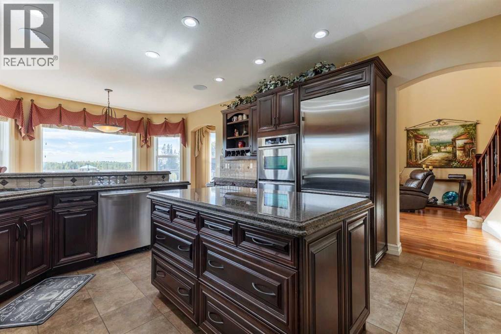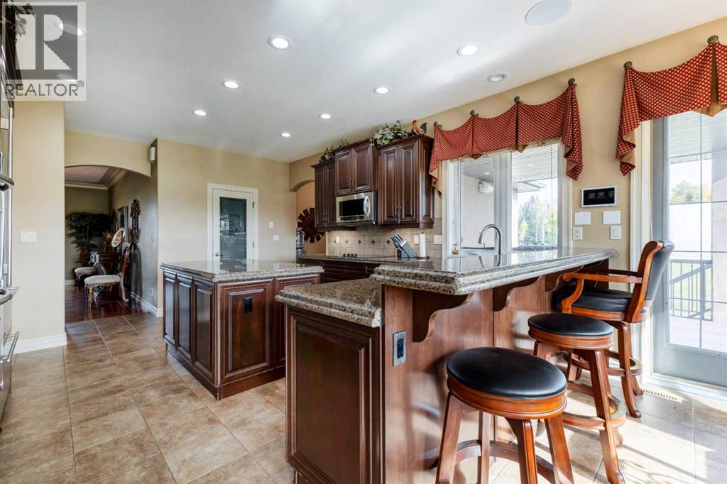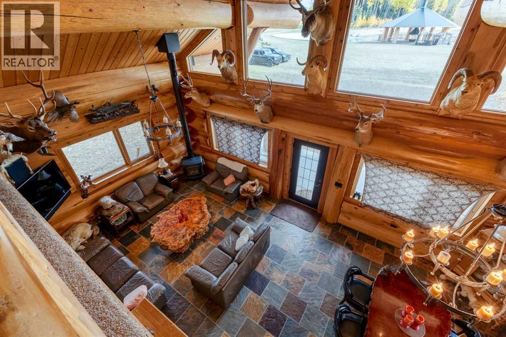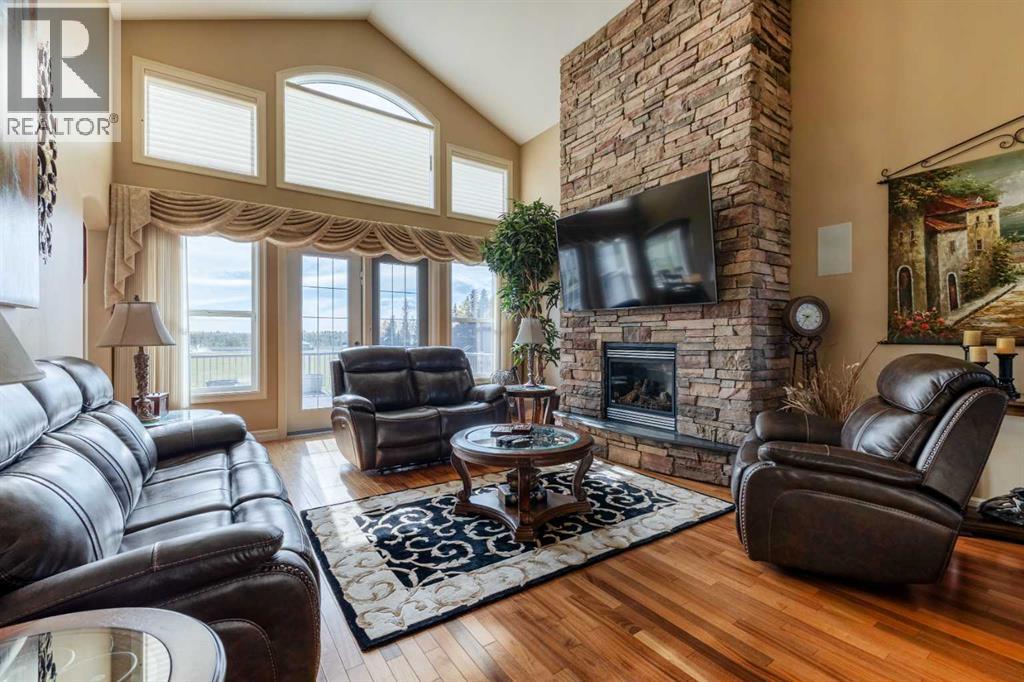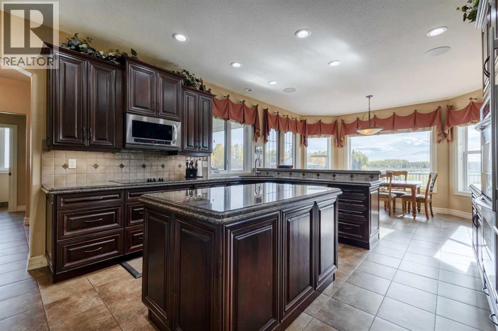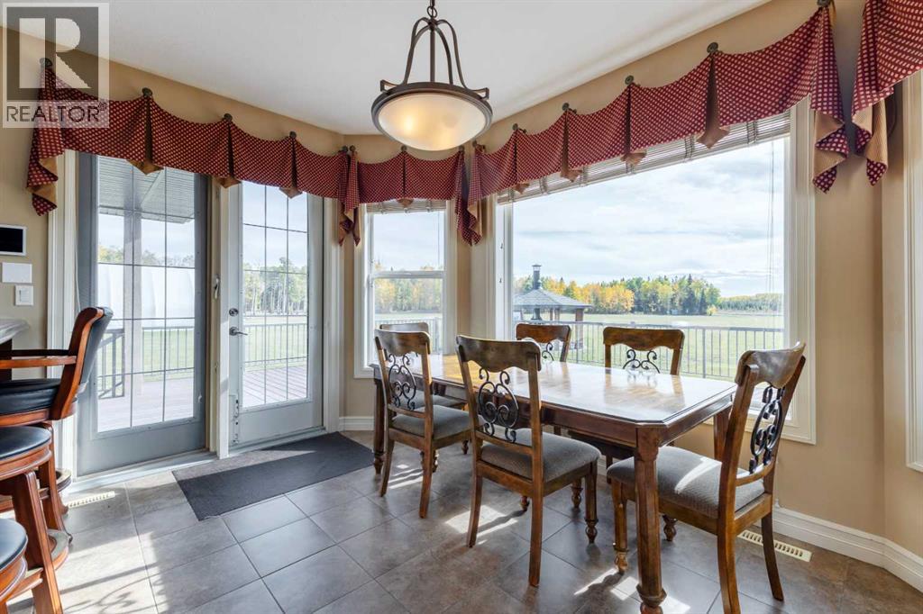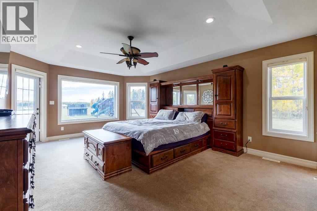 Welcome to Rocky Mountain House Retreat, where adventure awaits and possibilities are infinite. This spectacular estate encompasses all that western living has to offer, with truly unique and breathtaking amenities. Approach the property greeted by the regal stamped concrete fence and iron gate which sets the tone as an impressive entryway to the 160 awe inspiring acres held behind it. The soft babble of the front yard water feature, along with expansive views of the surrounding rolling hills, wooded areas, and personal lake greets visitors as they approach the primary residence. Over 5,500 Sq.Ft. of living space plays host to a functional living space suitable for families of any size. Enter the main floor living area greeted by soaring ceilings and large windows which deliver long views of the property and an abundance of natural light. Take in the incredible scenery of the Rocky Mountains within the main floor primary bedroom, and enjoy ample living space hosting a large walk in closet, and a spa-like five piece ensuite with a beautiful glass shower, and jetted soaker tub. Gather in the spacious kitchen featuring stainless steel appliances, sub-zero fridge, along with a surplus of counter space for prep and cabinetry for storage. Perfectly designed for hosting guests, a dining area in the kitchen along with an additional formal dining space provides an abundance of space to do so. Step directly out of the home through glass doors from both the living room and kitchen onto the expansive composite rear deck and enjoy breathtaking views from every angle. Emerge through the staircase to the lower level greeted by the pinnacle of entertainment spaces. The sumptuous wet bar serves as the anchor for this space encompassed by a billiards table, gaming area, and the perfect nook for a poker table or additional seating. Take in a movie or watch the game in the impressive theatre room complete with built-in sound, and projector system. The basement is complete with a wine cellar for the discerning sommelier, ample storage, and an additional bedroom perfect for guests. The top floor provides an additional three bedrooms along with a five piece bathroom, a perfect space for the kids. Walk across the manicured lawn and revel in all that the 160 acres of this pristine property has to offer, centred around the magnificent spring fed 6 acre lake. Enjoy swimming, paddle boarding, or laying out on the white sand beach during the summer months. Aptly stocked with 4,500 Rainbow and Brook Trout which roam the crystal clear waters year round. Lakeside, the ultimate guest house awaits. The gorgeous log structure hosts an additional 1073 Sq.Ft. of living space, and provides the utmost of charm and coziness. Two magnificent log gazebos protrude from the land with steel fire pits and chimneys, serving as incredible places to connect and gather around a fire with friends and family alike. Take advantage of the limitless opportunities of owning this truly one of a kind personal oasis. (id:49203)