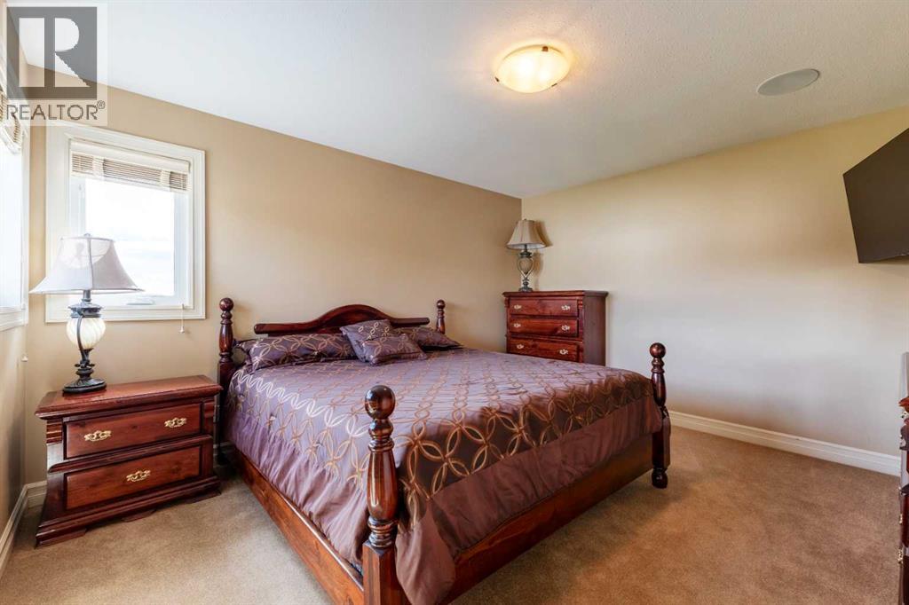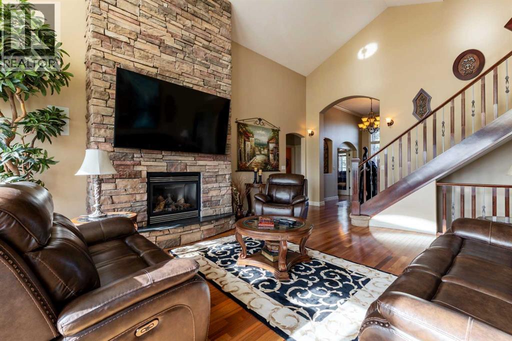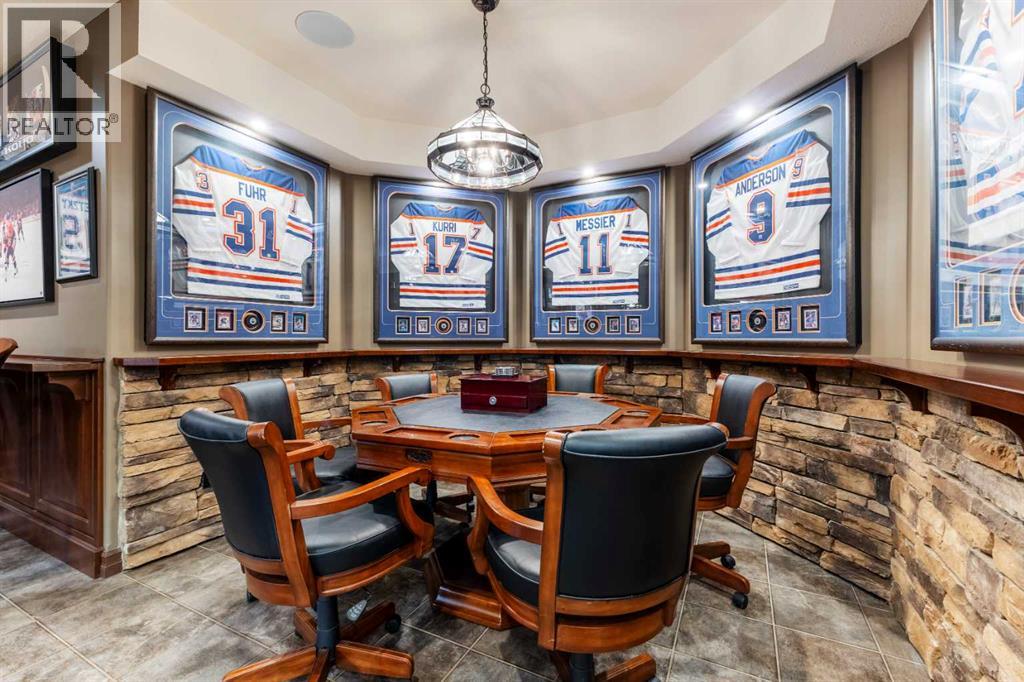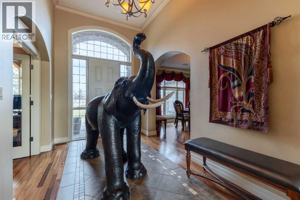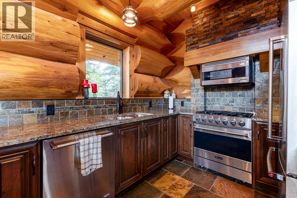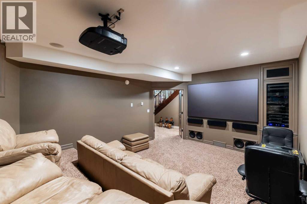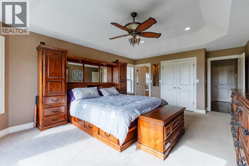 Welcome to Rocky Mountain House Retreat, where adventure awaits and possibilities are infinite. This spectacular estate encompasses all that western living has to offer, with truly unique and breathtaking amenities. Approach the property greeted by the regal stamped concrete fence and iron gate which sets the tone as an impressive entryway to the 160 awe inspiring acres held behind it. The soft babble of the front yard water feature, along with expansive views of the surrounding rolling hills, wooded areas, and personal lake greets visitors as they approach the primary residence. Over 5,500 Sq.Ft. of living space plays host to a functional living space suitable for families of any size. Enter the main floor living area greeted by soaring ceilings and large windows which deliver long views of the property and an abundance of natural light. Take in the incredible scenery of the Rocky Mountains within the main floor primary bedroom, and enjoy ample living space hosting a large walk in closet, and a spa-like five piece ensuite with a beautiful glass shower, and jetted soaker tub. Gather in the spacious kitchen featuring stainless steel appliances, sub-zero fridge, along with a surplus of counter space for prep and cabinetry for storage. Perfectly designed for hosting guests, a dining area in the kitchen along with an additional formal dining space provides an abundance of space to do so. Step directly out of the home through glass doors from both the living room and kitchen onto the expansive composite rear deck and enjoy breathtaking views from every angle. Emerge through the staircase to the lower level greeted by the pinnacle of entertainment spaces. The sumptuous wet bar serves as the anchor for this space encompassed by a billiards table, gaming area, and the perfect nook for a poker table or additional seating. Take in a movie or watch the game in the impressive theatre room complete with built-in sound, and projector system. The basement is complete with a wine cellar for the discerning sommelier, ample storage, and an additional bedroom perfect for guests. The top floor provides an additional three bedrooms along with a five piece bathroom, a perfect space for the kids. Walk across the manicured lawn and revel in all that the 160 acres of this pristine property has to offer, centred around the magnificent spring fed 6 acre lake. Enjoy swimming, paddle boarding, or laying out on the white sand beach during the summer months. Aptly stocked with 4,500 Rainbow and Brook Trout which roam the crystal clear waters year round. Lakeside, the ultimate guest house awaits. The gorgeous log structure hosts an additional 1073 Sq.Ft. of living space, and provides the utmost of charm and coziness. Two magnificent log gazebos protrude from the land with steel fire pits and chimneys, serving as incredible places to connect and gather around a fire with friends and family alike. Take advantage of the limitless opportunities of owning this truly one of a kind personal oasis. (id:49203)