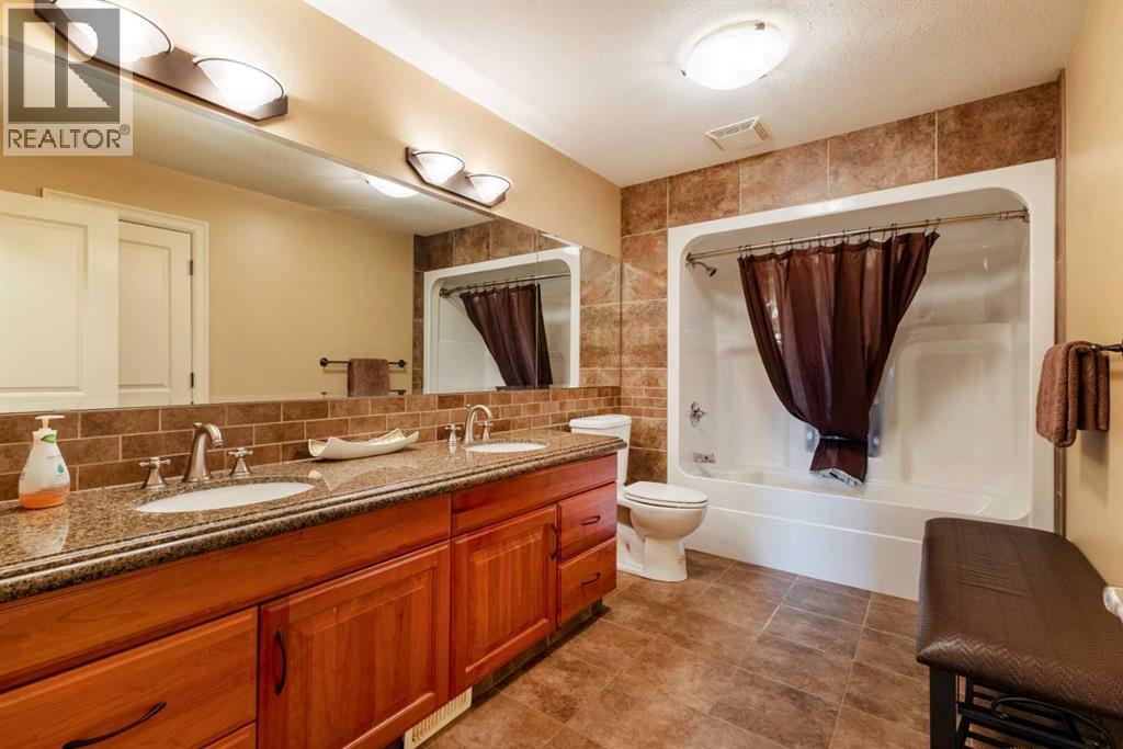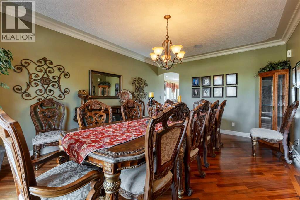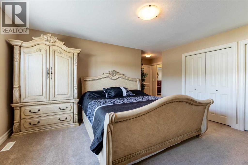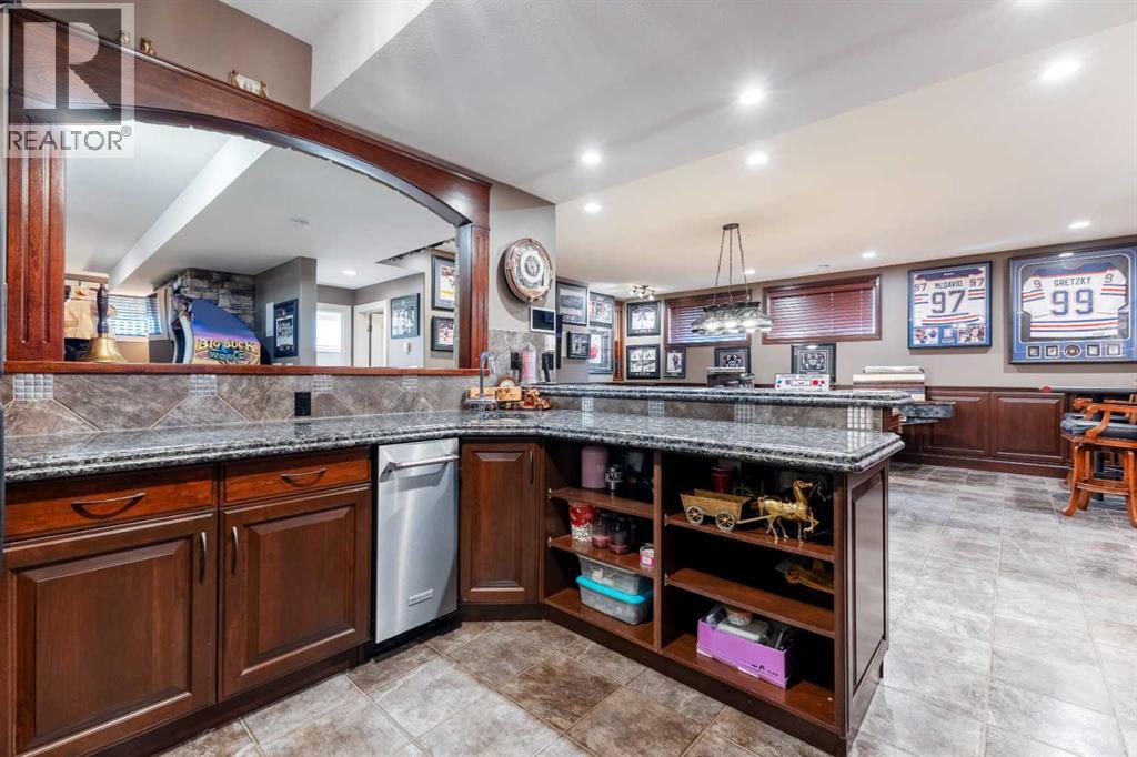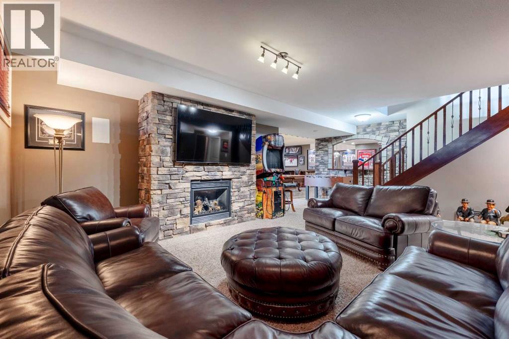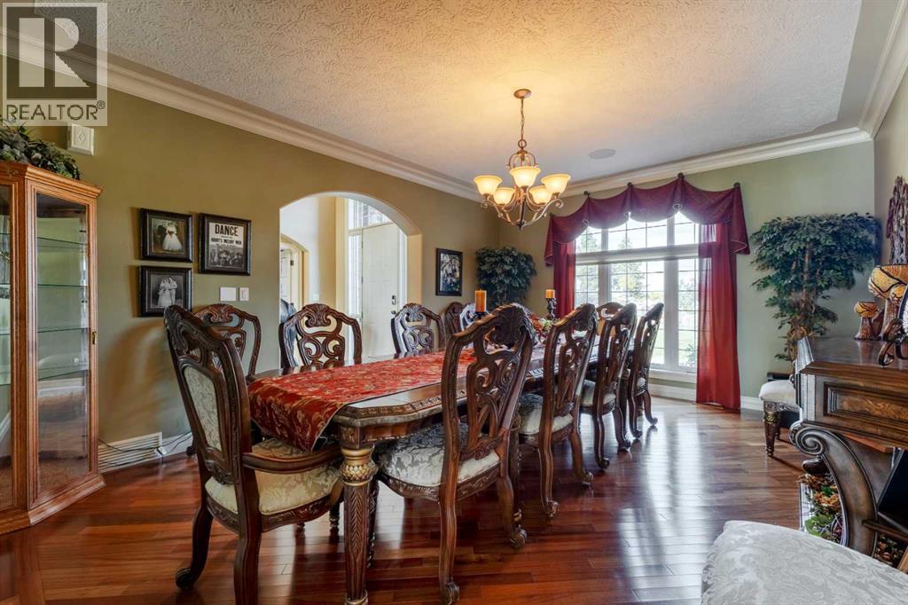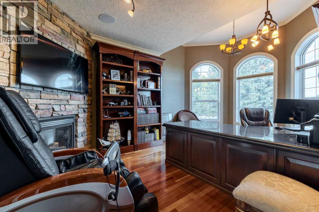Welcome to Rocky Mountain House Retreat, where adventure awaits and possibilities are infinite. This spectacular estate encompasses all that western living has to offer, with truly unique and breathtaking amenities. Approach the property greeted by the regal stamped concrete fence and iron gate which sets the tone as an impressive entryway to the 160 awe inspiring acres held behind it. The soft babble of the front yard water feature, along with expansive views of the surrounding rolling hills, wooded areas, and personal lake greets visitors as they approach the primary residence. Over 5,500 Sq.Ft. of living space plays host to a functional living space suitable for families of any size. Enter the main floor living area greeted by soaring ceilings and large windows which deliver long views of the property and an abundance of natural light. Take in the incredible scenery of the Rocky Mountains within the main floor primary bedroom, and enjoy ample living space hosting a large walk in closet, and a spa-like five piece ensuite with a beautiful glass shower, and jetted soaker tub. Gather in the spacious kitchen featuring stainless steel appliances, sub-zero fridge, along with a surplus of counter space for prep and cabinetry for storage. Perfectly designed for hosting guests, a dining area in the kitchen along with an additional formal dining space provides an abundance of space to do so. Step directly out of the home through glass doors from both the living room and kitchen onto the expansive composite rear deck and enjoy breathtaking views from every angle. Emerge through the staircase to the lower level greeted by the pinnacle of entertainment spaces. The sumptuous wet bar serves as the anchor for this space encompassed by a billiards table, gaming area, and the perfect nook for a poker table or additional seating. Take in a movie or watch the game in the impressive theatre room complete with built-in sound, and projector system. The basement is complete with a wine cellar for the discerning sommelier, ample storage, and an additional bedroom perfect for guests. The top floor provides an additional three bedrooms along with a five piece bathroom, a perfect space for the kids. Walk across the manicured lawn and revel in all that the 160 acres of this pristine property has to offer, centred around the magnificent spring fed 6 acre lake. Enjoy swimming, paddle boarding, or laying out on the white sand beach during the summer months. Aptly stocked with 4,500 Rainbow and Brook Trout which roam the crystal clear waters year round. Lakeside, the ultimate guest house awaits. The gorgeous log structure hosts an additional 1073 Sq.Ft. of living space, and provides the utmost of charm and coziness. Two magnificent log gazebos protrude from the land with steel fire pits and chimneys, serving as incredible places to connect and gather around a fire with friends and family alike. Take advantage of the limitless opportunities of owning this truly one of a kind personal oasis. (id:49203)