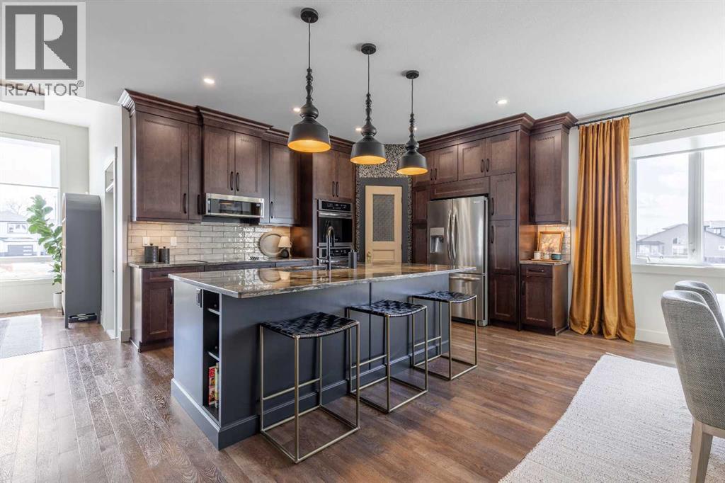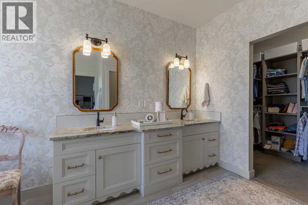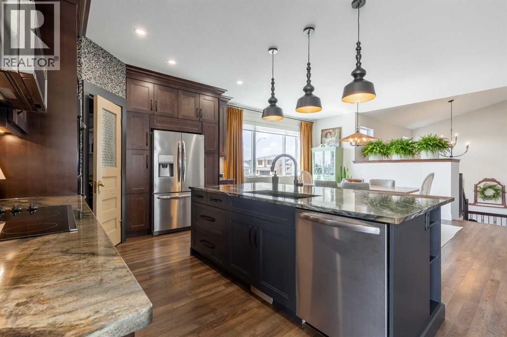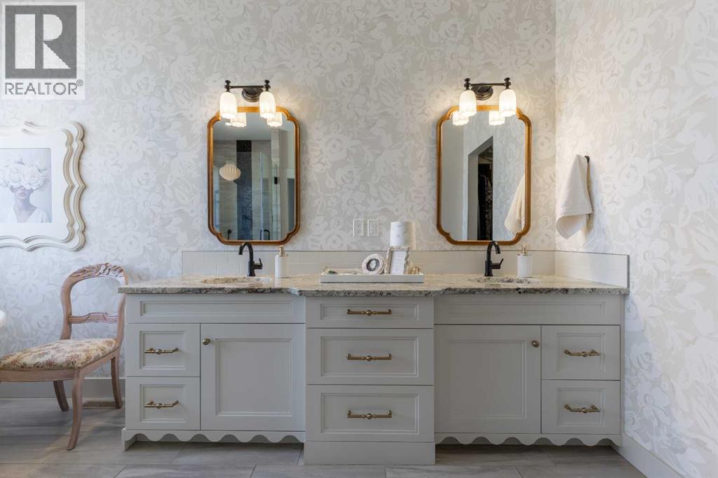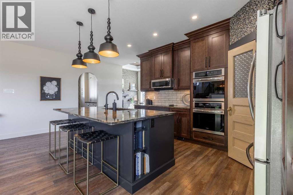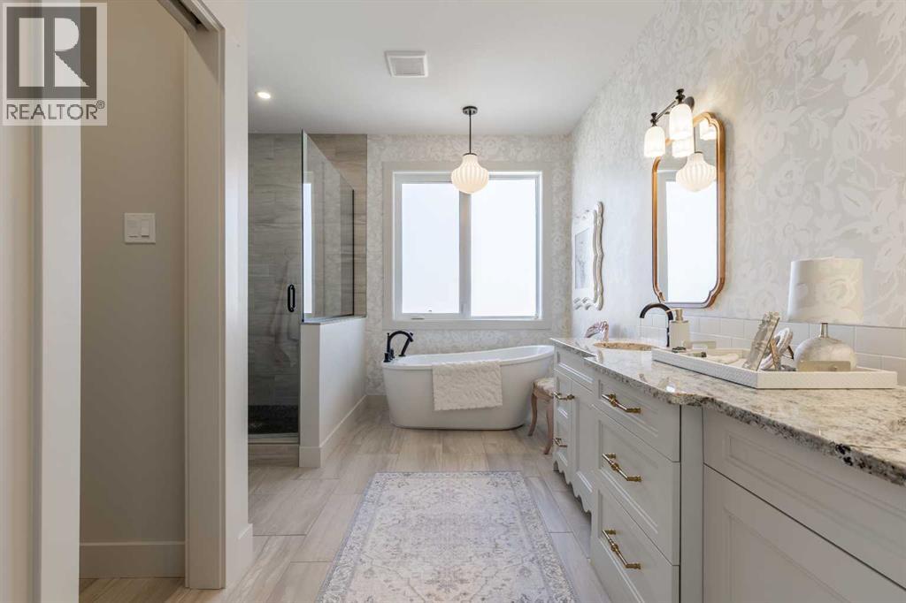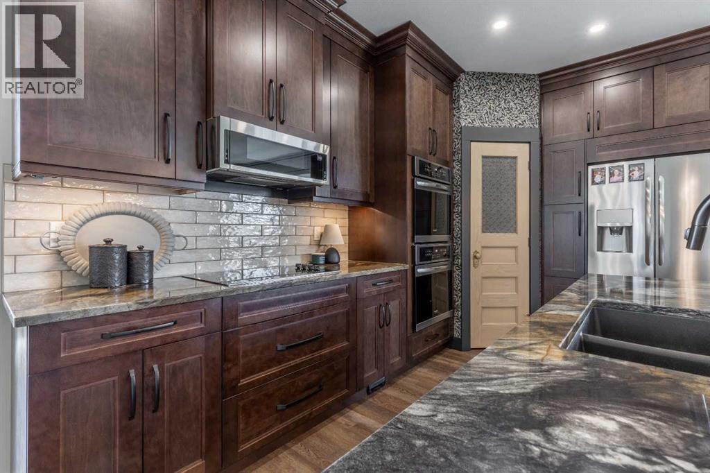 This home is stunning from top to bottom! If you've ever wanted to live inside an Architectural Digest home, this is it. Thoughtfully renovated to maximize functionality and style, this custom bi-level + bonus offers a unique floor plan that is elegant with high-end, custom finishes galore and plentiful parking! The entry is a show-stopper; covered verandah, soaring ceilings and a grand entry into a 1,454 sq/ft main floor. The open concept entertaining space includes a statement kitchen with luxurious granite counter tops, two wall ovens, a perfectly planned corner pantry with thoughtful shelving for your kitchen goods but that isn't to mention the custom butlers pantry with secondary fridge, appliance garage and plentiful storage space - a dream come true! The sunken living room is warm and cozy, with a statement stone wall, gas fireplace and tray ceiling complete with wood inlay. The back deck is covered and enclosed with screens that are retractable; you're able to enjoy the weather with complete privacy! There is a bedroom, 4 piece bathroom that was recently upgraded and laundry room rounding out the main floor. Taking the steps upstairs you are welcomed into the primary retreat - an oasis meant for a Queen! Tray ceiling, 5 piece ensuite with tiled shower, soaker tub, toilet closet, custom wooden walk-in closet and a stylish place to enjoy. The fully finished basement offers 9' ceilings, a wet bar with quartz counters in the family room, 2 well sized bedrooms, 4 piece bathroom and storage area. The attached triple garage is heated, there's AC, vinyl fencing and you simply have nothing left to do but move in and love every minute of it! (id:49203)