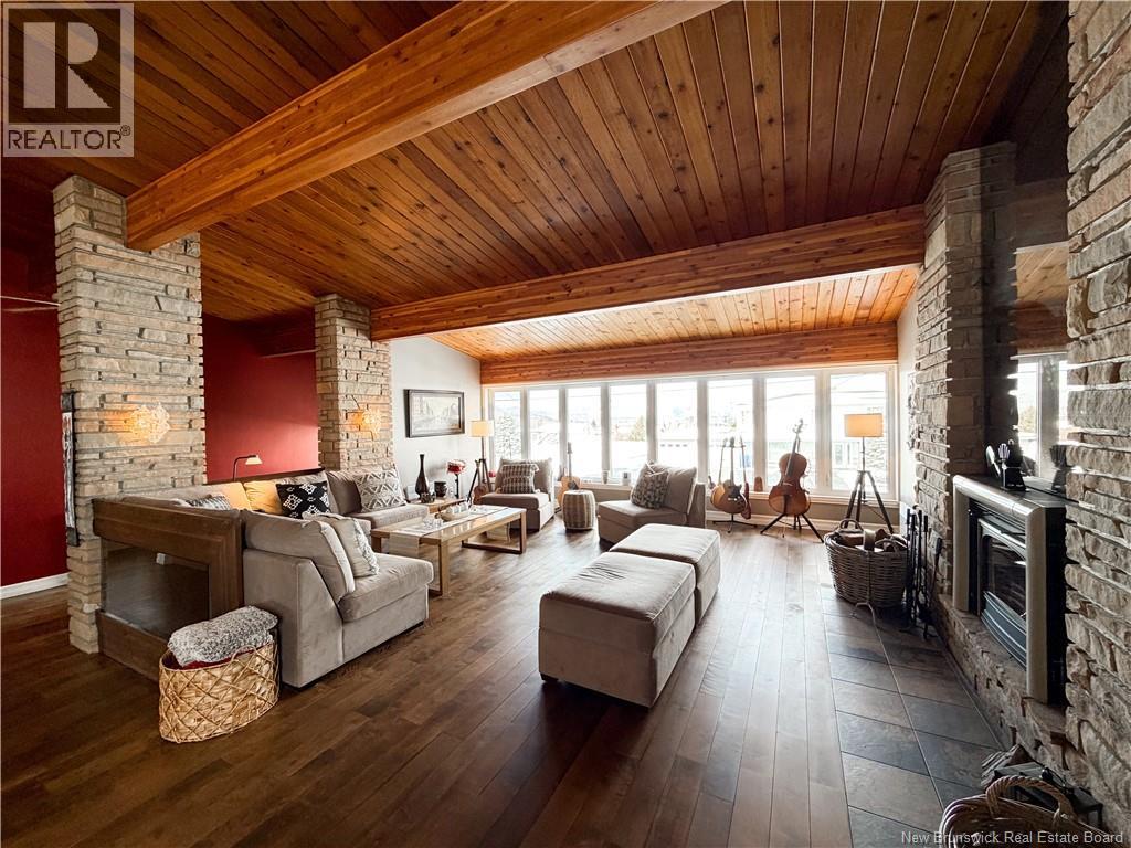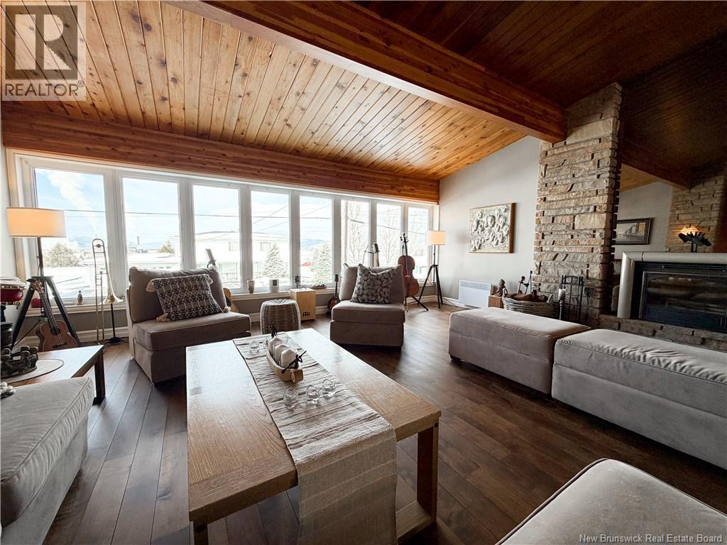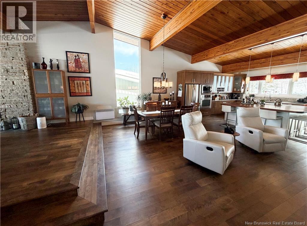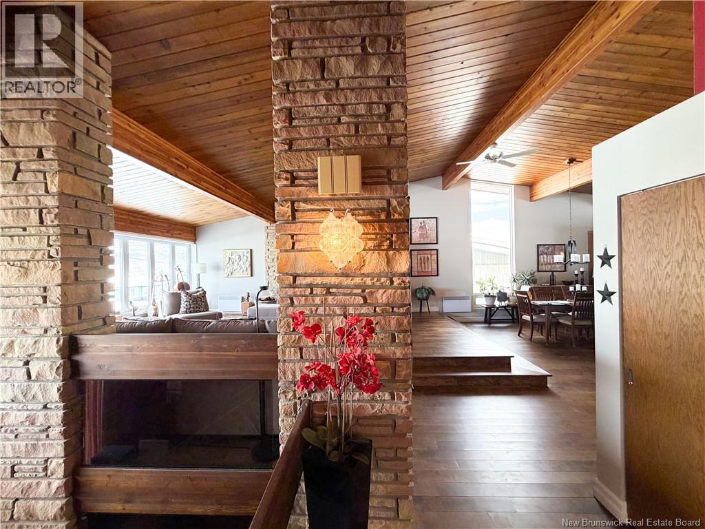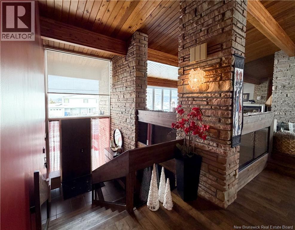 Architect-designed home with a distinctive retro/modern blend, featuring many original vintage details that are still in excellent condition, giving the property a unique character you rarely find today. The home has been very well cared for over the years, reflecting pride of ownership. It also features a flat roof, with the roof and drainage system redone in 2024. Inside, youll find an open-concept layout with beautiful stone and wood finishes that add warmth and style throughout the living spaces. The kitchen is equipped with a large island with a JennAir stove with grill top, ideal for cooking and entertaining. A chefs dream kitchen. The home includes 3 bathrooms and an attached garage that is currently converted into a gathering area to relax and play games. Also convenient for added storage. Located in Atholville, the property with fenced-in backyard sits in a very family-friendly neighbourhood with a park nearby and offers a view of the beautiful Restigouche River. It is also close to the hospital, shopping, and everyday amenities, and only about 6 minutes from schools in Campbellton, making it an ideal location for families or anyone looking for comfort and convenience. (id:49203)