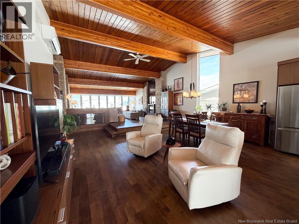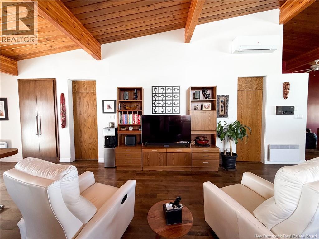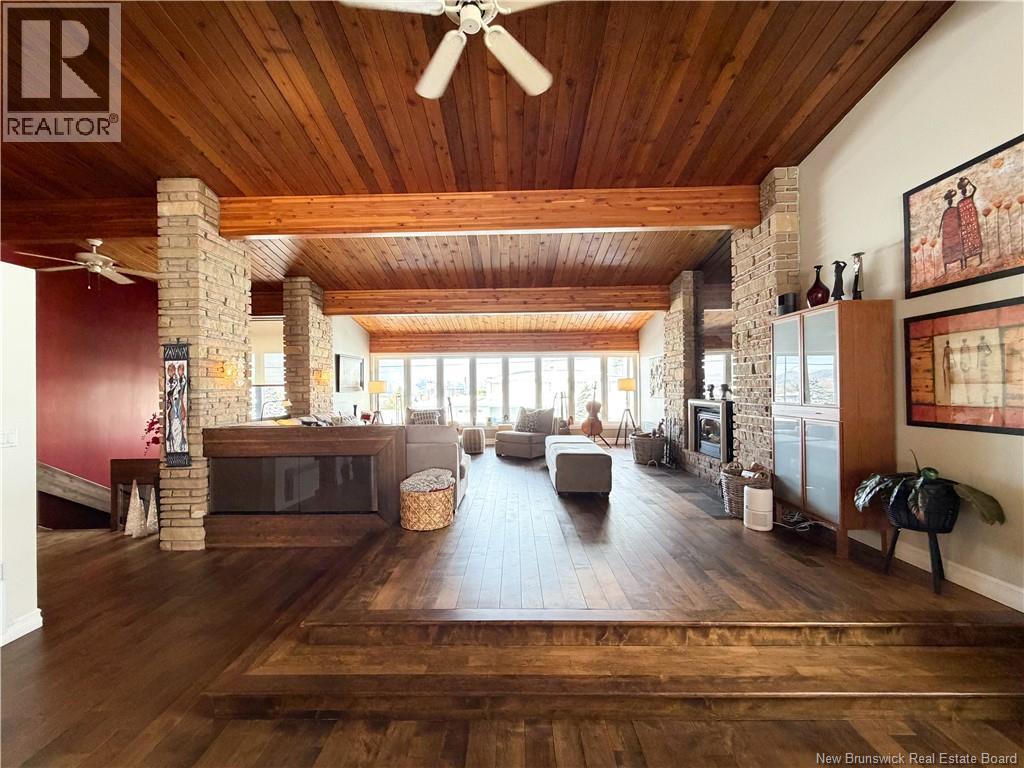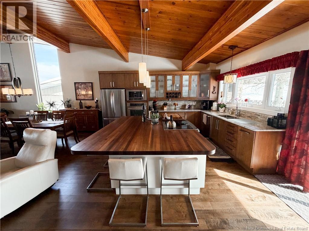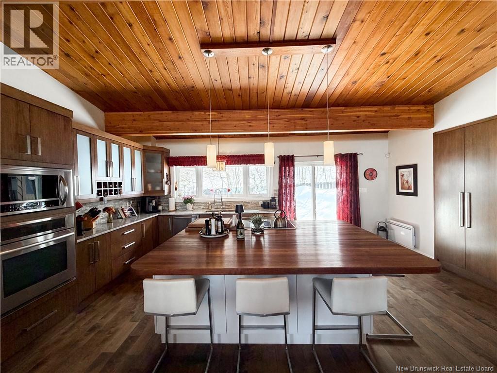 Architect-designed home with a distinctive retro/modern blend, featuring many original vintage details that are still in excellent condition, giving the property a unique character you rarely find today. The home has been very well cared for over the years, reflecting pride of ownership. It also features a flat roof, with the roof and drainage system redone in 2024. Inside, youll find an open-concept layout with beautiful stone and wood finishes that add warmth and style throughout the living spaces. The kitchen is equipped with a large island with a JennAir stove with grill top, ideal for cooking and entertaining. A chefs dream kitchen. The home includes 3 bathrooms and an attached garage that is currently converted into a gathering area to relax and play games. Also convenient for added storage. Located in Atholville, the property with fenced-in backyard sits in a very family-friendly neighbourhood with a park nearby and offers a view of the beautiful Restigouche River. It is also close to the hospital, shopping, and everyday amenities, and only about 6 minutes from schools in Campbellton, making it an ideal location for families or anyone looking for comfort and convenience. (id:49203)