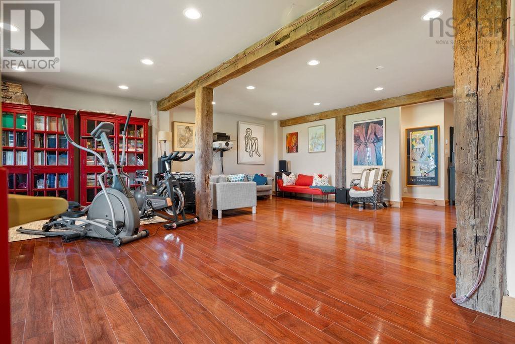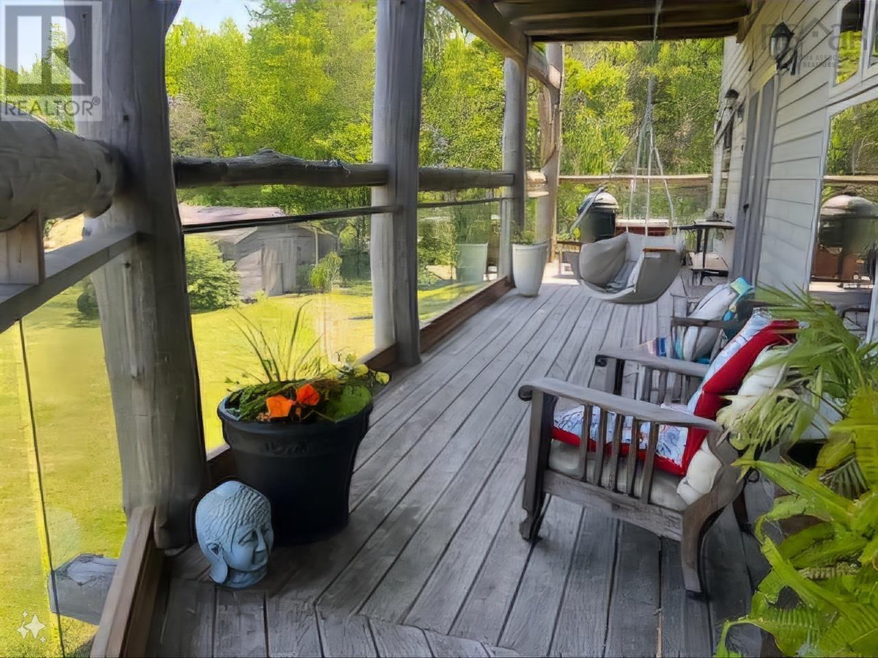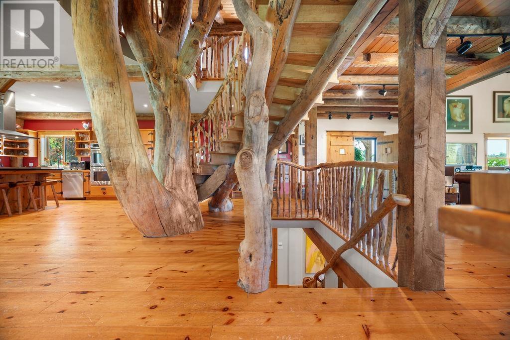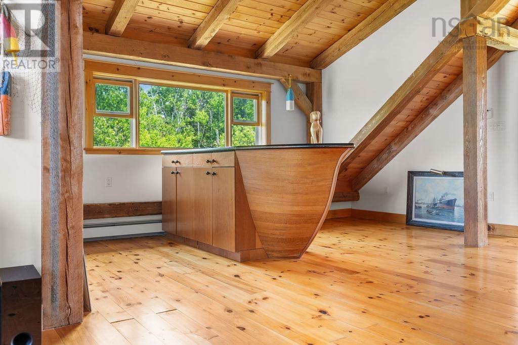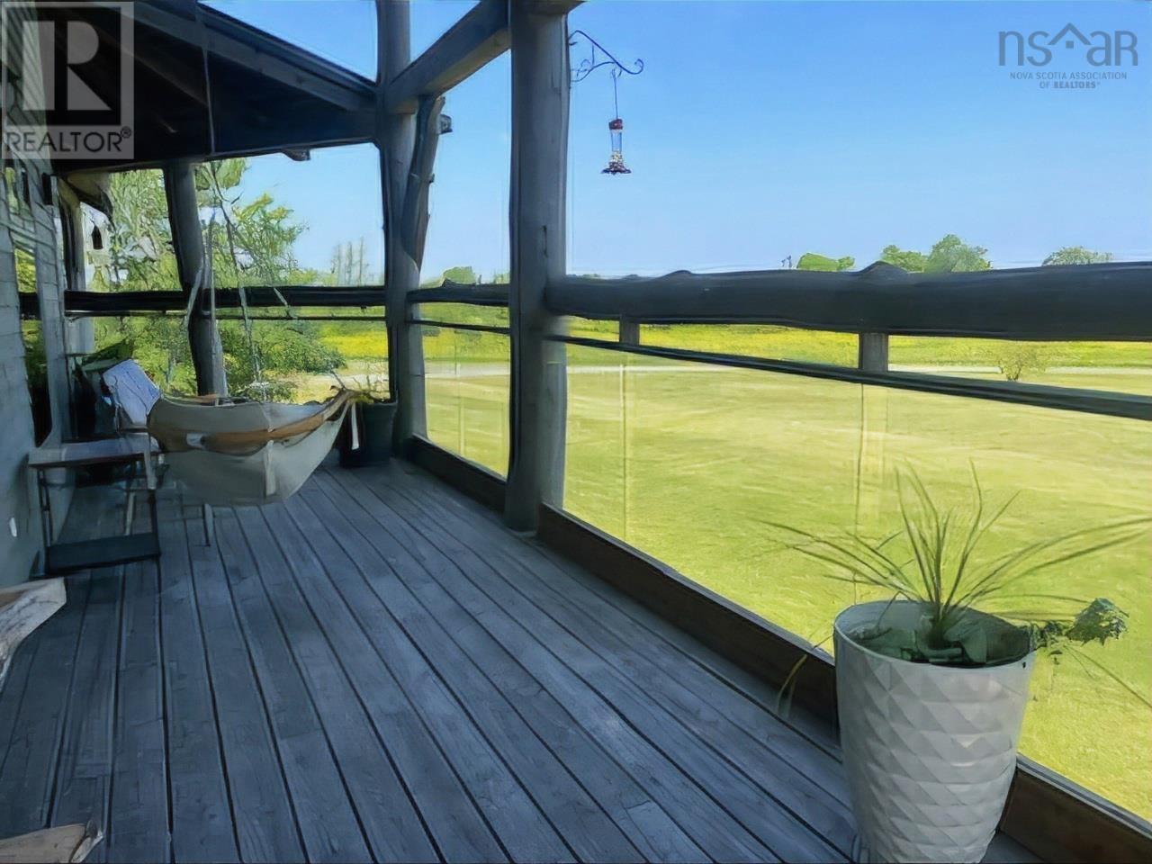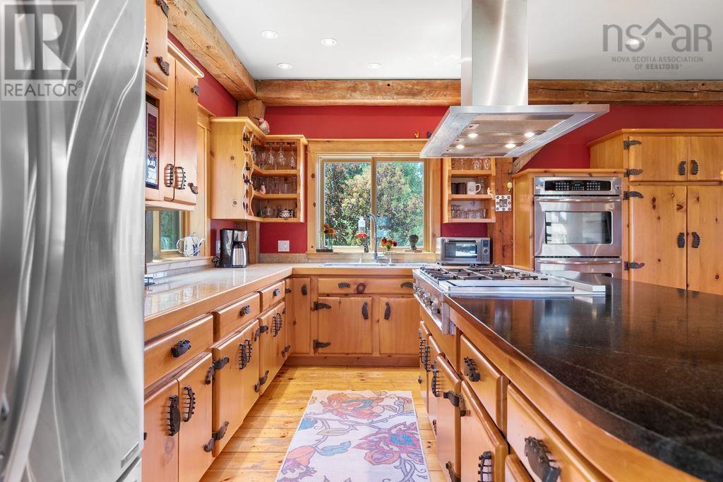 Uncover the unparalleled charm of this extraordinary 4-bedroom + loft, 5-bath timber frame home, meticulously crafted from salvaged barn wood and adorned with beams from historic barns. Central to its design is a majestic white pine tree over a century old, adding a touch of heritage to this architectural gem spanning almost 6,000 square feet. Currently serving as a family residence, this unique property also offers commercial potential. Located near Melmerby Beach and a short drive from Trenton airport, as well as within reach of the international airport and prestigious golf courses, this residence provides a serene escape with convenient access to amenities and attractions. The main level's open concept boasts cathedral ceilings, exposed beams, and exquisite wood floors. The kitchen features soapstone countertops, while a spacious dining room, office, and family room with a grand sandstone fireplace, offer stunning views of the Atlantic. The second floor includes a balcony overlooking the great room and the primary bedroom with a fireplace, walk-in closet, balcony, and lavish ensuite bathroom. The third floor offers another bedroom and sitting area. The lower level encompasses three bedrooms, two baths, a sauna, a games/exercise room, a theater, and multiple fireplaces. Each level's outdoor deck provides ample space for leisure and gatherings. The master bath showcases slate-tiled shower walls for added luxury. With its distinctive attributes, flexible layout, and prime location, this property offers a rare opportunity for those seeking a unique living or business environment. An outdoor fireplace on the main level enhances the property's appeal, creating a cozy setting for outdoor activities and relaxation. With 2.3 acres and access to a lovely beach to moor your boat and swim, enjoy East Coast living. More acreage is available and negotiable. Watch the fishers from your balcony and call them to have lobster delivered to your door. Explore the matterport here. (id:49203)