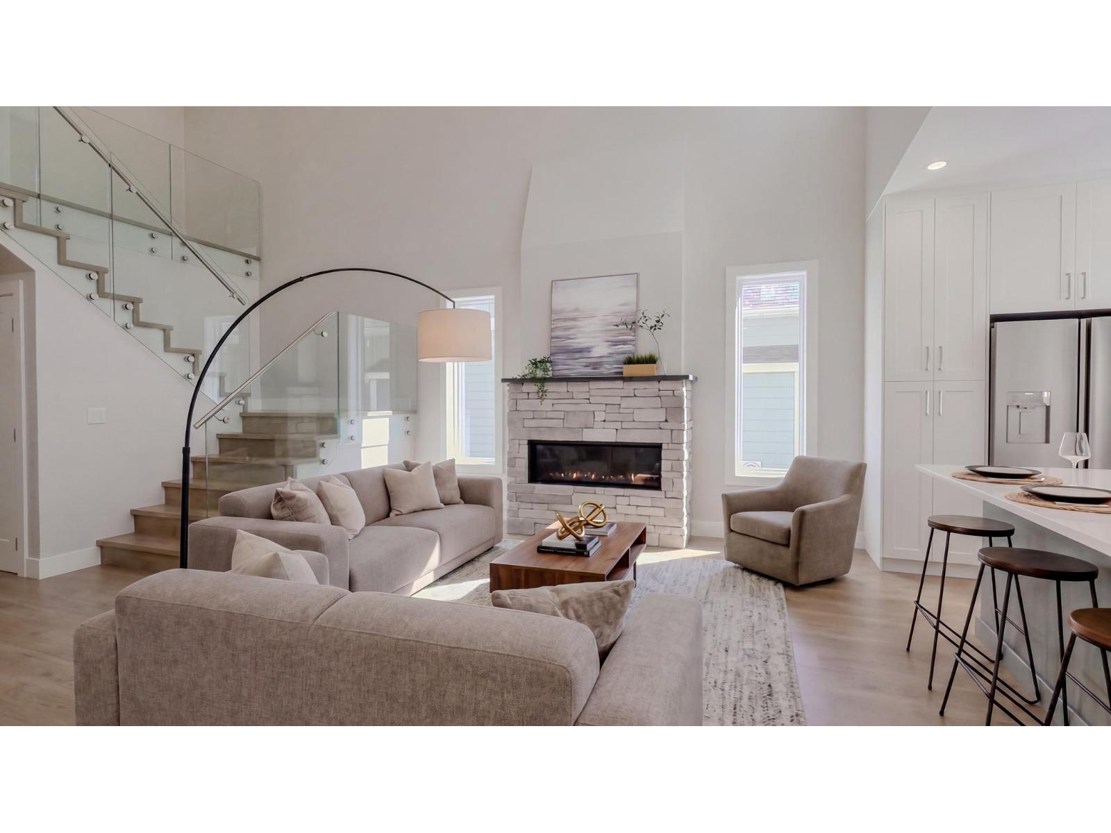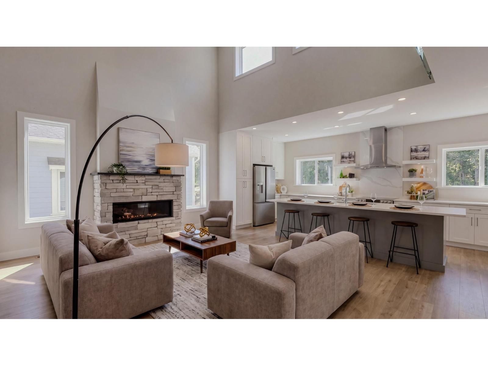 $95 MonthlyBRAND NEW 2 Storey DREAM HOME backing onto SANDPIPER GOLF COURSE! HIGH END Finishings INSIDE/OUT including 2 tone Hardi Exterior, stained T/G CEDAR Soffits, FRAMELESS Glass railings & AMAZING overheight Double Garage (12' ceiling) w/ POLISHED floor! Main level features 18' CEILINGS with CHEFS DREAM kitchen centred by 5'x10' Full Slab Island capable of fitting 8 people! Seamless Quartz Backsplash over N/G Range, HARDWOOD cabinets & quality W/proof Vinyl Plank floors! Double French doors lead to MAIN FLOOR MASTER with 5 piece ENSUITE including f/standing TUB & RAIN shower! Alternative MASTER BED above with luxurious ENSUITE + 2 supporting bedrooms large enough for KING Beds! Flex Room above with 12' sliding walkout to one of 2 decks (BBQ H/up!) gazing out to golf course. Quick Possession! (id:49203)