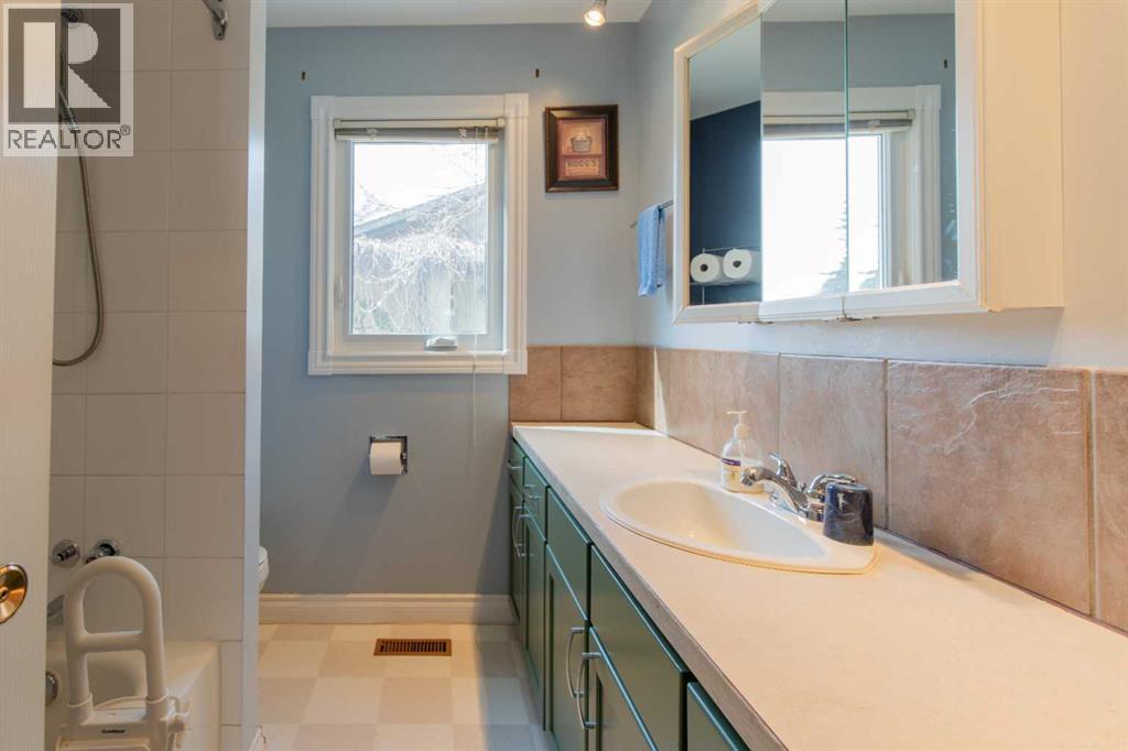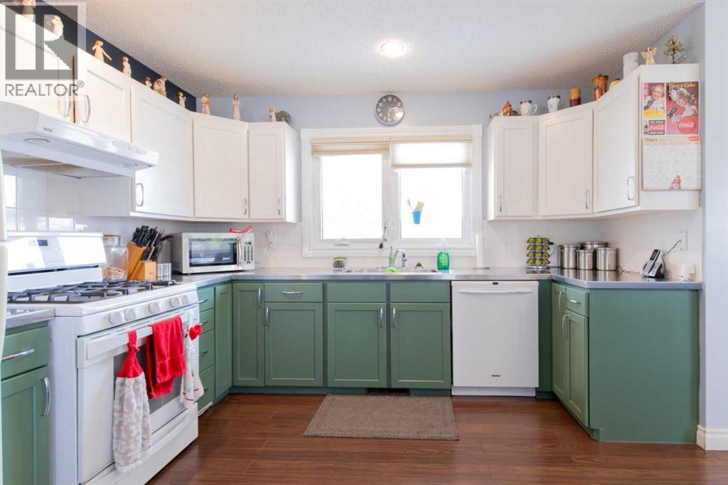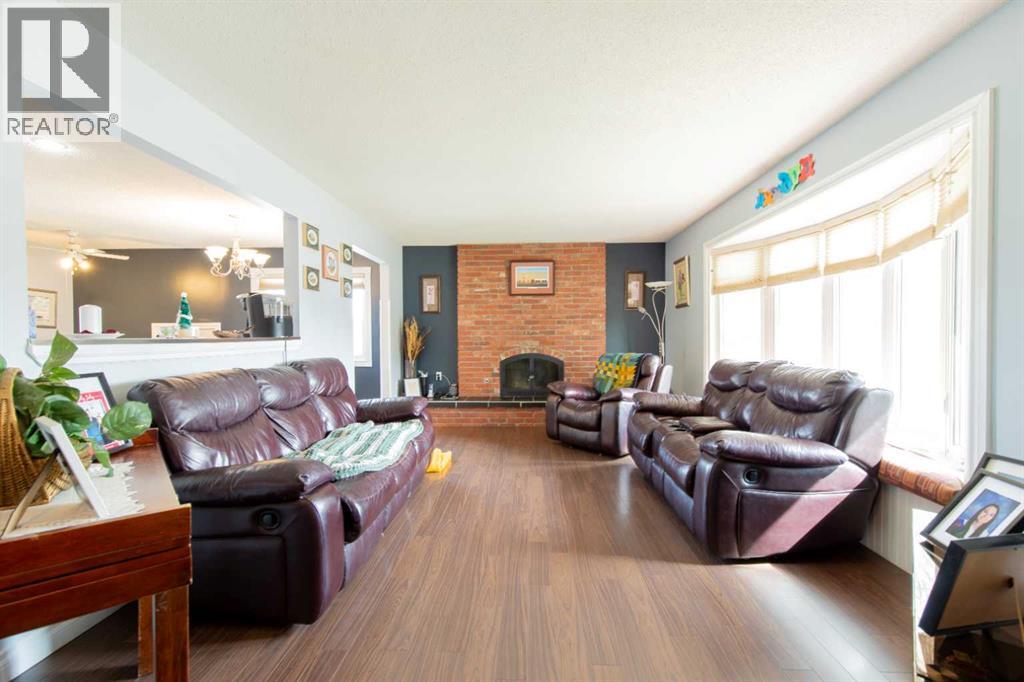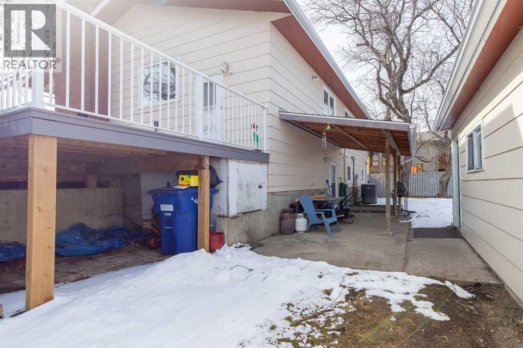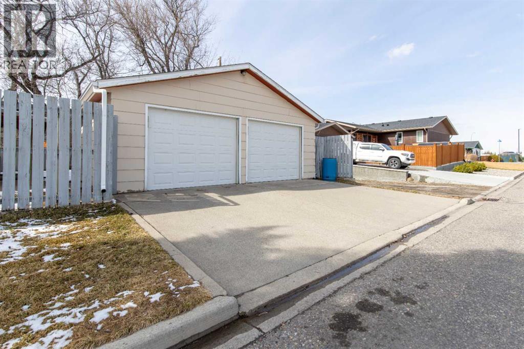 This Fort Macleod bungalow home has been beautifully renovated while maintaining it's original mid-century charm! With five bedrooms, three bathrooms, a walk-out basement, a heated double detached garage, a wonderfully maintained corner lot, and beautiful living spaces throughout, this home is a must-see. Stepping inside, you'll enter into a long front foyer with closet storage. To one side is a stylish living room with a large bay window and a wood burning fireplace with brickwork and a tiled hearth. The L-shaped kitchen features metal countertops and tons of cupboard storage. The nearby cozy dining nook will be perfect for family get-togethers and restful weekend breakfasts. Downstairs, the basement features a walk-out exit providing access from the rec room to the backyard, perfect for summer entertaining. Two bedrooms, a full four-piece bath, and a laundry room create the ideal setting to make a guest room, hobby room, or whatever you can imagine. Outside, the rear yard is treed and landscaped with a central firepit and stonework accents. A side deck can be accessed from the home's side door or from the sidewalk. For storage, a side shed and rear double detached garage with heating and 220v wiring make the perfect spot for hobbyists or car enthusiasts. If a stunning bungalow home on a beautiful lot with plenty of upgrades and premium features sounds like the place for you, give your REALTOR® a call and book a showing today! (id:49203)