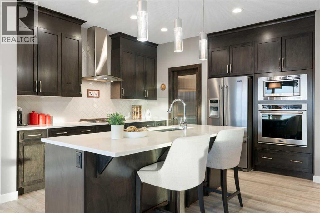 ** Open House: Saturday, April 11 | 12:00 to 3:00 pm & April 12 | 1:00 to 3:00 pm ** Backing onto peaceful greenspace and wetlands, this beautifully maintained two-storey home in Fireside offers a rare combination of privacy, functionality, and thoughtful upgrades throughout. With a fully finished walkout basement and partial mountain views, this home is designed to enjoy every season.The main level features luxury vinyl plank flooring, a bright & open layout anchored by a well-appointed kitchen with Maytag appliances, including a gas range, built-in oven, and fridge with ice and water. Six pot drawers, generous cabinetry, and a seamless flow to the upper deck make this space ideal for everyday living and entertaining. Step outside to the expansive 27' upper deck finished with durable Duradek flooring, privacy walls, a deck cover with sun roller blind, and a natural gas BBQ hookup, all overlooking tranquil greenspace.Upstairs, the thoughtful layout truly shines with four generously sized bedrooms, a large bonus room, and convenient upper-level laundry, making this home ideal for a growing or multi-generational family. The primary retreat offers a thoughtfully designed ensuite with double sinks, walk-in closet, and a deep soaker tub, creating a calm space to unwind at the end of the day. Additional bedrooms are well proportioned and versatile for kids, guests, or home offices, while the bonus room provides the perfect hub for movie nights, play space, or a second living area.The fully finished walkout basement extends the living space and truly sets this home apart with an extra bedroom and full bathroom. A Dry-Core subfloor keeps the basement warm and comfortable year-round, while the walkout leads to a beautiful sunroom designed for relaxation. With three sliding patio doors, this enclosed space creates a peaceful, wind- and bug-free environment, perfect for enjoying the hot tub or unwinding while taking in wetland views.The backyard has been professionally levelled with a retaining wall, is fully fenced with solar lighting, and backs directly onto green space, offering privacy and a strong connection to nature. Additional highlights include central air conditioning, built-in cabinetry in the garage & vessel sink in the powder room.Located in the family-friendly community of Fireside, close to schools, parks, pathways, and amenities, this home delivers a rare blend of lifestyle, comfort, and setting. (id:49203)