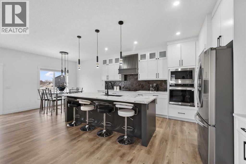 HUGE PIE-SHAPED LOT (10,150 SQFT)!! RV PARKING!! 5 BED 3 BATH!! MAIN FLOOR BED + FULL BATH!! SPICE KITCHEN!! SEPARATE BASEMENT ENTRANCE!! TRIPLE ATTACHED GARAGE!! Welcome to this stunning home in Lake Estates, just steps from the lake and surrounded by space you don’t often find! Sitting on an incredible 10,150 SQFT PIE-SHAPED LOT, this property offers room to breathe, play, park the RV, and truly enjoy outdoor living. The main floor features a bright open layout with a modern kitchen complete with island, built-in features, generous cabinetry, and a separate spice kitchen. The living area is warm and inviting with an electric fireplace and large sunshine windows, flowing seamlessly into the dining area. A main floor bedroom and full 3-piece bath make this home perfect for guests or multigenerational living. Upstairs offers 4 spacious bedrooms and 2 full baths, including a relaxing primary retreat with 5-piece ensuite and walk-in closet. Three additional bedrooms, a 4-piece bath, and laundry on the same level complete the upper floor. The open-to-below foyer adds a grand and airy feel. The basement comes with a separate entrance. The triple attached garage includes a rough-in for heat, all window coverings are brand new, and front landscaping is already completed. Step into the backyard and fall in love — huge, private, and full of possibilities, this oversized pie lot is a rare find. BIG LOT, SMART LAYOUT, PRIME LAKE ESTATES LOCATION — THIS ONE CHECKS ALL THE BOXES!! (id:49203)