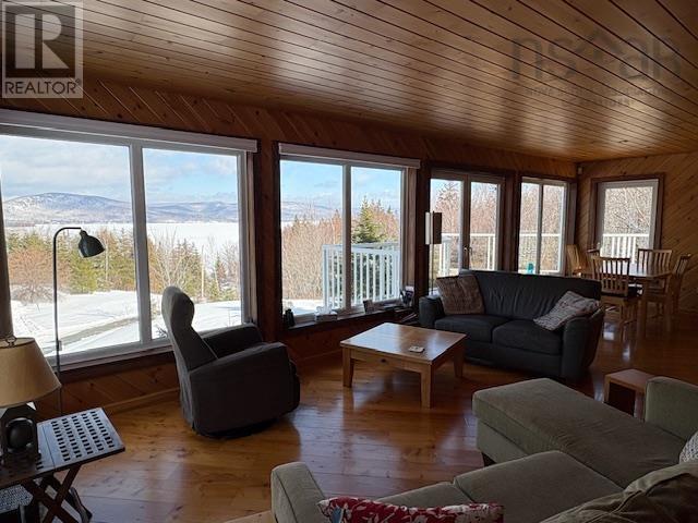 This beautiful property features a lovely year-round home, detached garage, detached sunroom, and separate bunkhouse, set in a private country setting on 45 wooded acres. The property has a breathtaking, and spectacular panoramic view overlooking the Bras d'Or Lakes, and the hillsides and mountains across the Bay! The main floor of the home features an open-concept kitchen, dining and living area, foyer, primary bedroom, and full bath. The lower level features a family room, two bedrooms, and utility/laundry/half bath. The property is immaculate! There is also a cell tower lease, and right-of-way, on four acres towards the rear of the property which provides yearly income to the property owner. This will be transferred to the purchaser. The setting is very quiet in a lovely neighbourhood, only a short local drive to Village amenities. (id:49203)