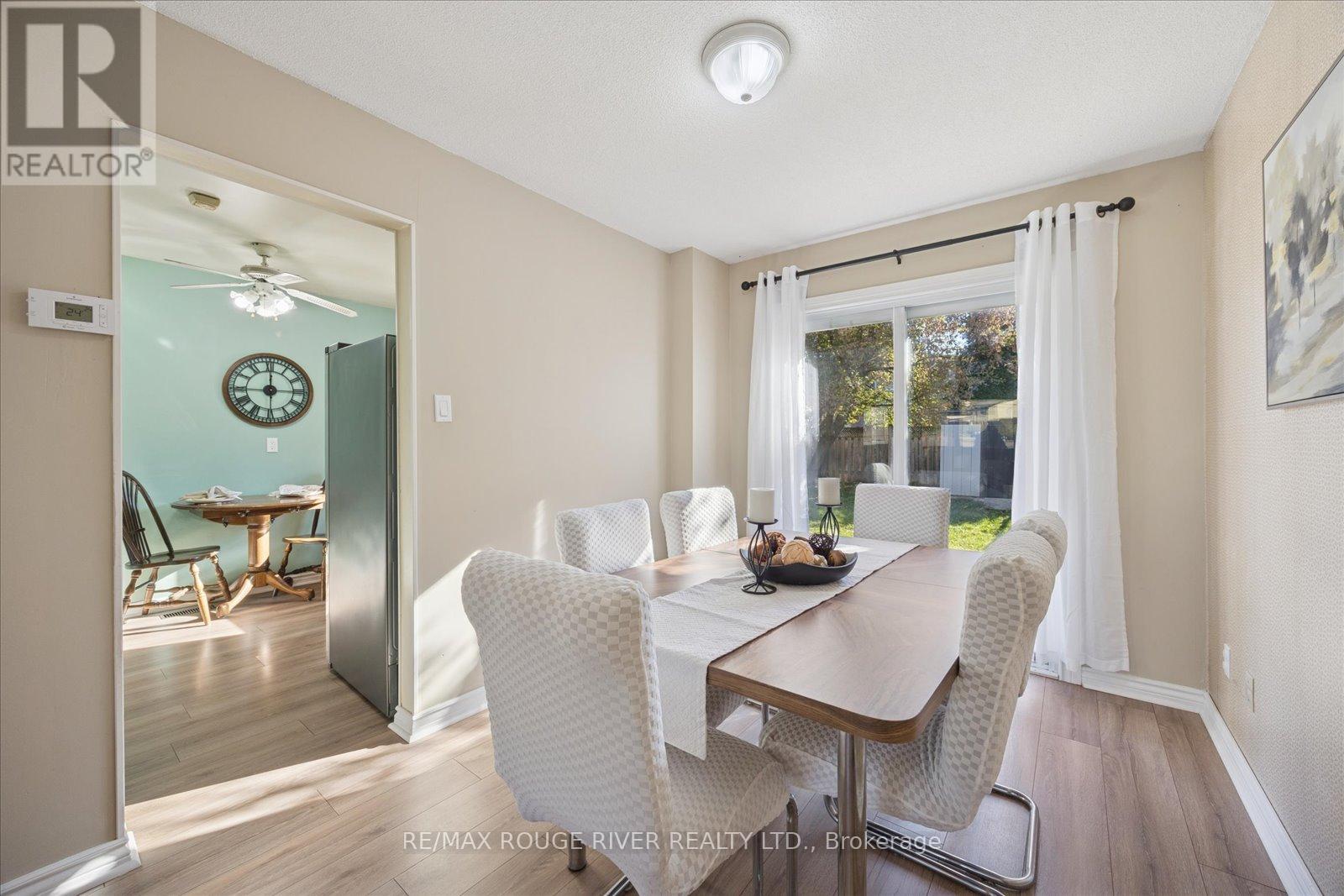 Offers Anytime. Welcome to this 3-bedroom semi-detached home in a quiet, family-friendly neighbourhood close to schools, parks, walking and biking paths, shopping, transit, and quick access to Hwy 401/407. The bright and spacious living room features large front windows that fill the space with natural light and connects to a separate dining area with a sliding glass door leading to the backyard patio-perfect for entertaining. There is updated laminate flooring throughout most of the main level. The kitchen includes stainless steel appliances and is ready for someone to customize to their taste. Upstairs you'll find a 4-piece bathroom and three good sized bedrooms, each with ample storage. The basement features a separate side entrance, additional bedroom, kitchen space, and a 3-piece bathroom, offering great in-law suite potential. Enjoy a spacious backyard with room for family, pets, and a large storage shed. Don't wait to make this beautiful home yours-with endless opportunities to make it your own! (id:49203)