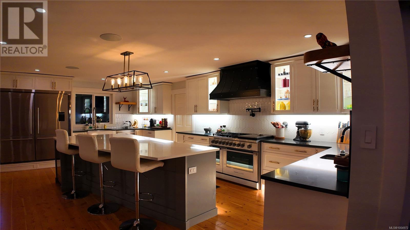 Welcome to 699 Galerno Road—an extensively renovated coastal masterpiece offering over 5,500 sq ft of luxurious West Coast living with panoramic ocean views. The main level features a stunning chef’s kitchen with dual sinks, a massive island, and under-cabinet lighting that opens to a glass-railed patio. Upstairs has three bright bedrooms and two spa-inspired baths, including a steam shower ensuite. Below are two fully legal, self-contained suites, each with private entrances, kitchens, and baths—ideal for multigenerational living or generating over $8,000/month in rental income. Notable upgrades include sleek metal siding, LED lighting, smart layout with laundry and powder room off the kitchen. Nestled on a quiet street with dual access from Galerno Rd and Ash St, the property includes a private backyard retreat with a firepit and ocean views. Experience the best of coastal living. Videography available under the Virtual Tour tab. For an easy showing call Robert Nixon (250)287-6200 (id:49203)