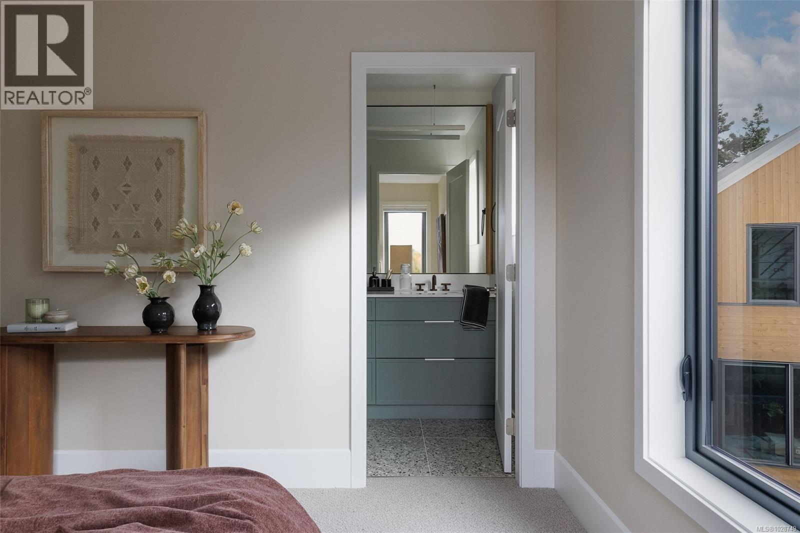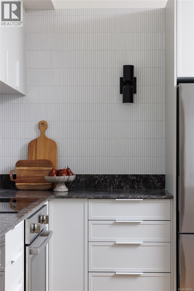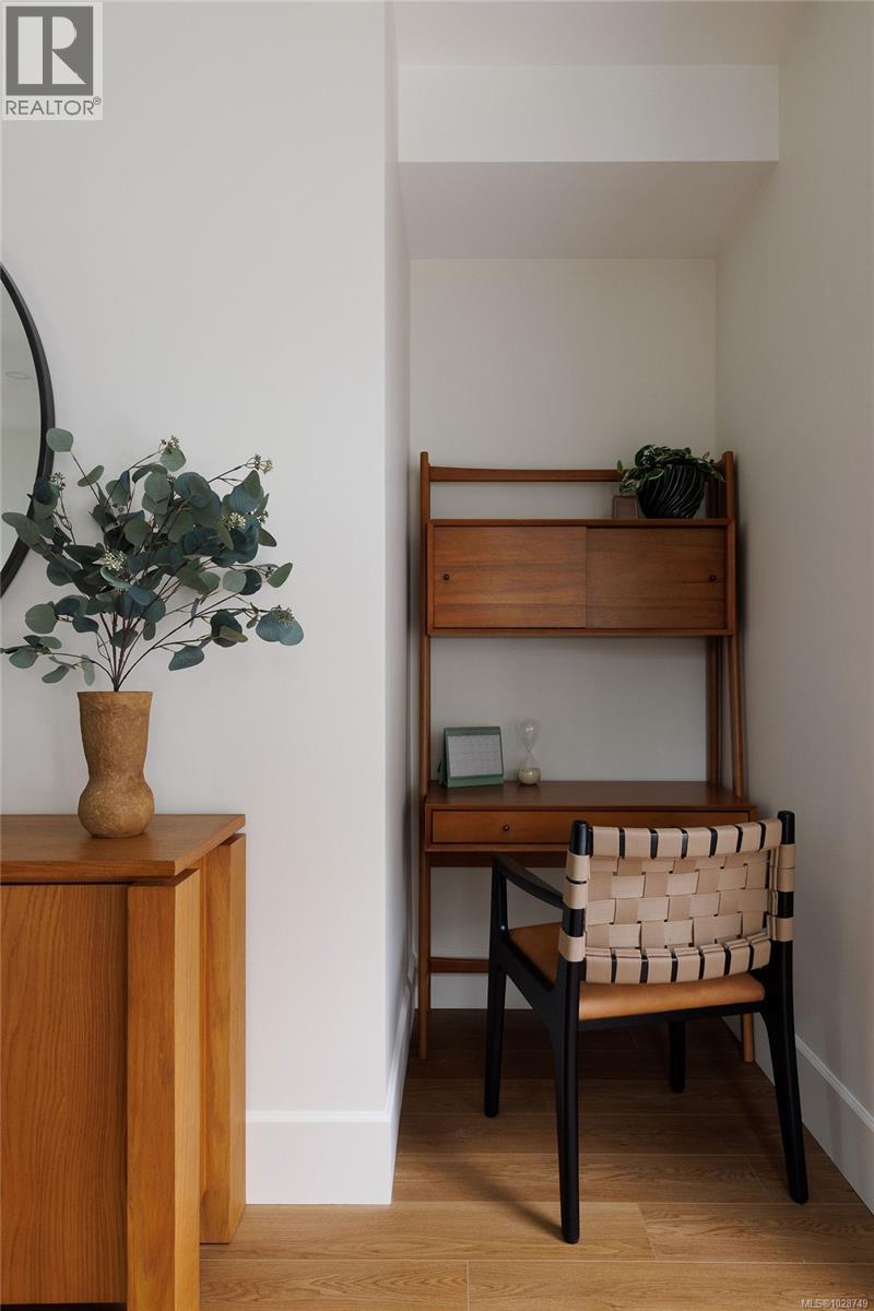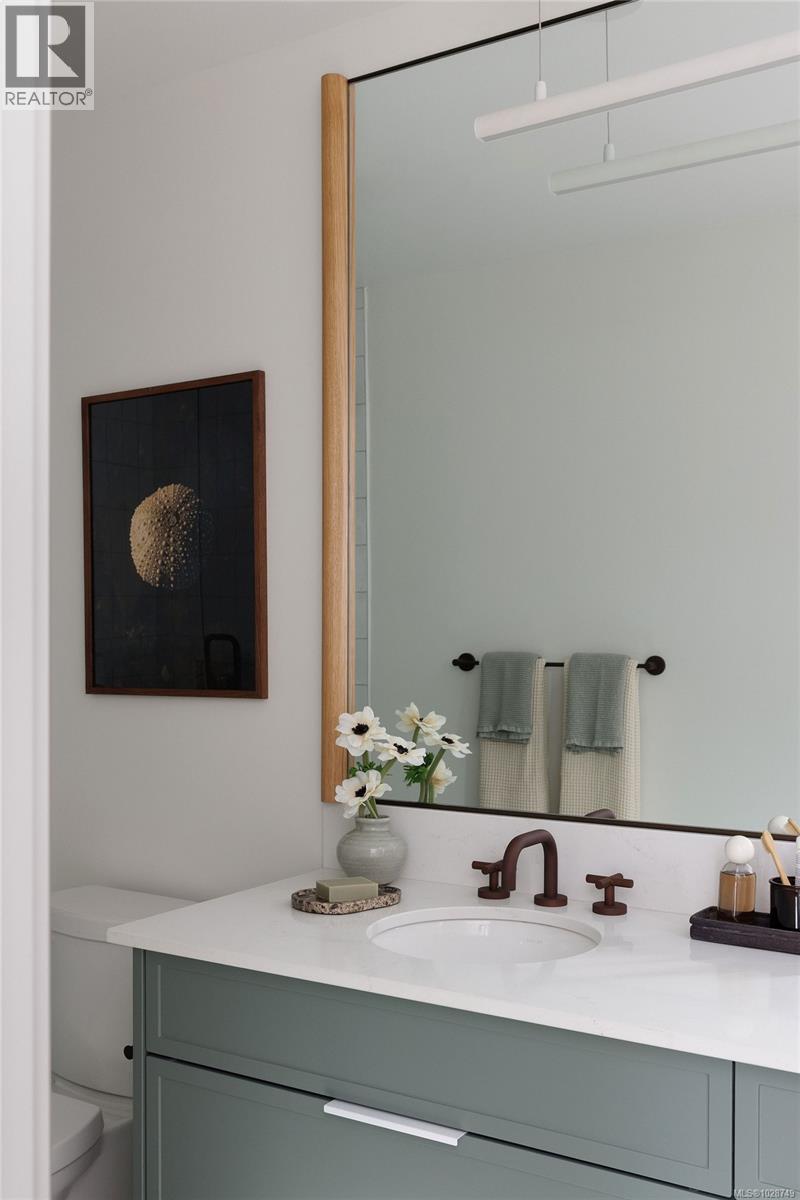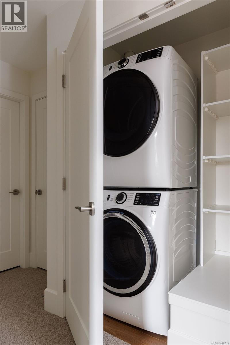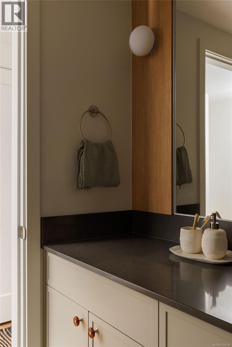$404 MonthlyHarper is a striking collection of coastal modern 3 & 4-bedroom townhomes nestled in the lush, tree-lined Cedar Hill neighbourhood. Positioned at the end of a quiet cul-de-sac, this home prioritizes comfort and sophistication with an expansive side-by-side two-car garage, providing generous space and everyday convenience. Enjoy seamless indoor/outdoor living, highlighted by a private gated patio and a separate balcony. The meticulously refined interior, designed by Bidgood, is anchored by an elevated kitchen featuring slim-shaker cabinetry, Caesarstone counters, and Bosch induction cooking. A thoughtful upper floor hosts three spacious bedrooms, main bathroom, and a primary suite boasting a walk-in closet and a lavish ensuite with heated terrazzo tile. Downstairs, a flex room and additional storage offer added function and versatility. ERV system & A/C for year-round comfort. Photos shown are of the display home. Completing this spring. Price + GST. Open House Sunday 12-2pm. (id:49203)