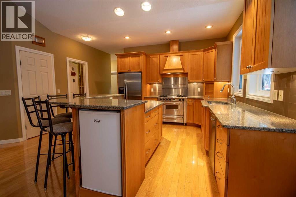 This beautifully finished 1,813 sq ft bungalow sits on 1.63 treed acres just minutes from Sundre and one hour from NW Calgary or Red Deer. Mature landscaping and a manageable lot size mean you get the peace and quiet of acreage living with minimal upkeep.Inside, hardwood floors, vaulted ceilings, and high-end finishes set the tone. The thoughtful floor plan features two primary bedrooms, each with its own ensuite — ideal for guests, multi-generational living, or simply having a retreat for everyone. The spacious built-in office can easily be converted into a third bedroom, making this a flexible 3-bedroom home to suit your needs.The kitchen is built for those who love to cook — a gas range, breakfast bar, and walk-in pantry make meal prep a pleasure. A dedicated laundry room keeps everyday life organized. Two fireplaces and a walk-in temperature-controlled wine room add a touch of luxury that's hard to find at this price point.Outside, an oversized deck overlooks your treed yard — the perfect spot for morning coffee or evening entertaining. The attached double heated garage and detached single garage offer plenty of room for vehicles, a workshop, or recreational toys.Sundre offers golf, fishing, schools, a pool, and a welcoming small-town atmosphere. This is the one you've been waiting for. (id:49203)