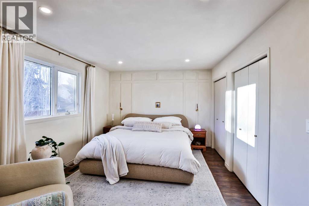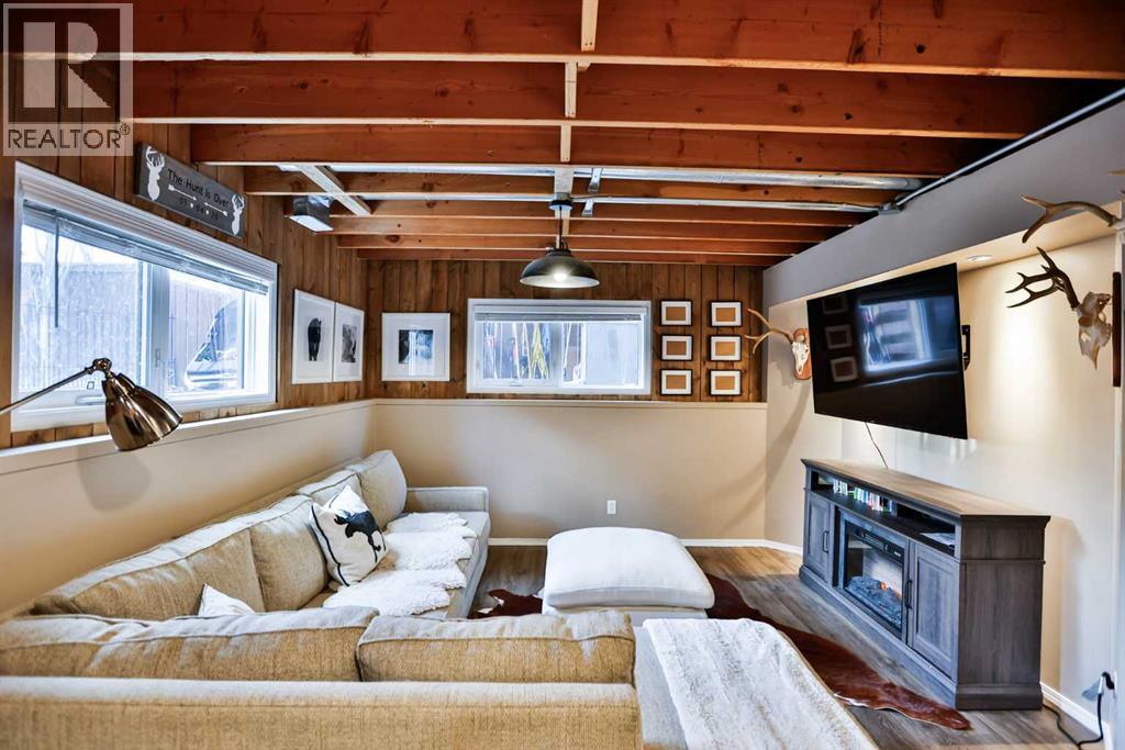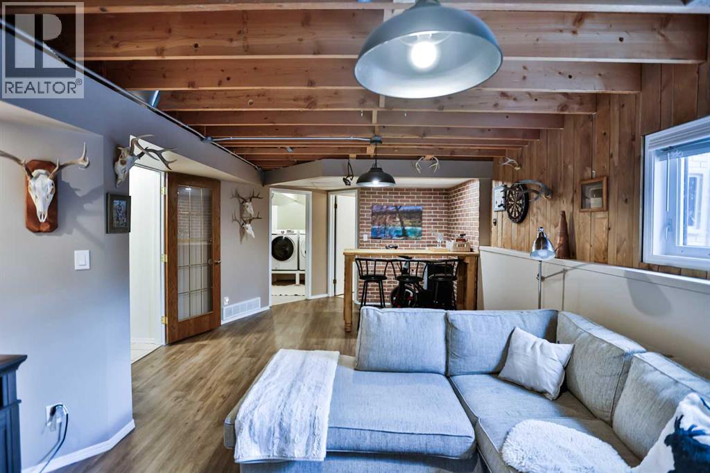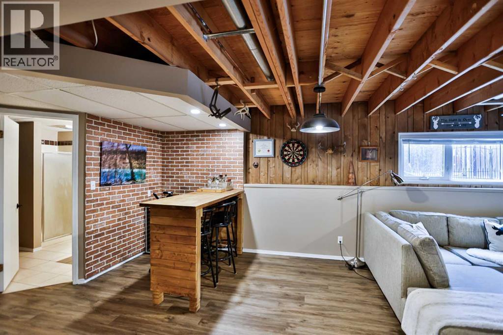 The cutest, most charming house on the block is officially for sale. You'll love this home from the moment you drive up. The brick detail on the front and the beautiful landscaping with sitting area sets the tone for the pile of thoughtful updates throughout this home. Through the front door you are greeted with the coziest living room with vaulted wood detail ceiling. The wood burning stove in the corner with stone surround elevates the cozy factor in this space even more. Up a few stairs you'll find the open concept dining room and kitchen, with fresh white paint throughout. There's plenty of cupboards, and nice upgrades to the cabinets like the glass inserts to display your favourite things. The primary bedroom is a fantastic size and easily fits a king size bed. You'll love the elevated wood detail wall treatment, and two great size closets as well! There is a pocket door that leads to the well maintained four piece bathroom. Another bedroom and a broom closet round off this floor. The basement features large windows throughout the large family room with nice wood bar. There is another darling bedroom, laundry space, a 3 piece bathroom, and more storage space than you could ever need! This family even uses it as the kids playroom which is just perfect. The single attached garage is heated, and you will absolutely LOVE the yard. Mature trees line all 3 sides of the lot, giving you great privacy. There is a fantastic, large, updated deck that even has a slide attached! Garden beds, a hot tub, and lovely detailed landscaping make this a space you'll love to spend time in. Located in the highly desirable established neighbourhood of Ridgewood, you'll absolutely love living here with plenty of parks, walking paths, and playgrounds close by. You're just a couple minutes drive to groceries, restaurants, pharmacies, schools, and so much more. Give your REALTOR® a call and come see this charmer before it's gone! (id:49203)