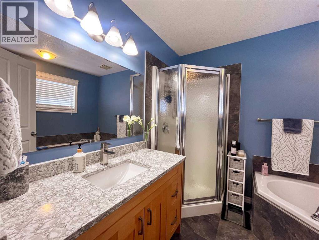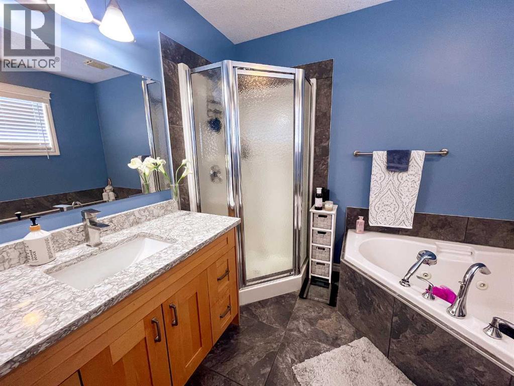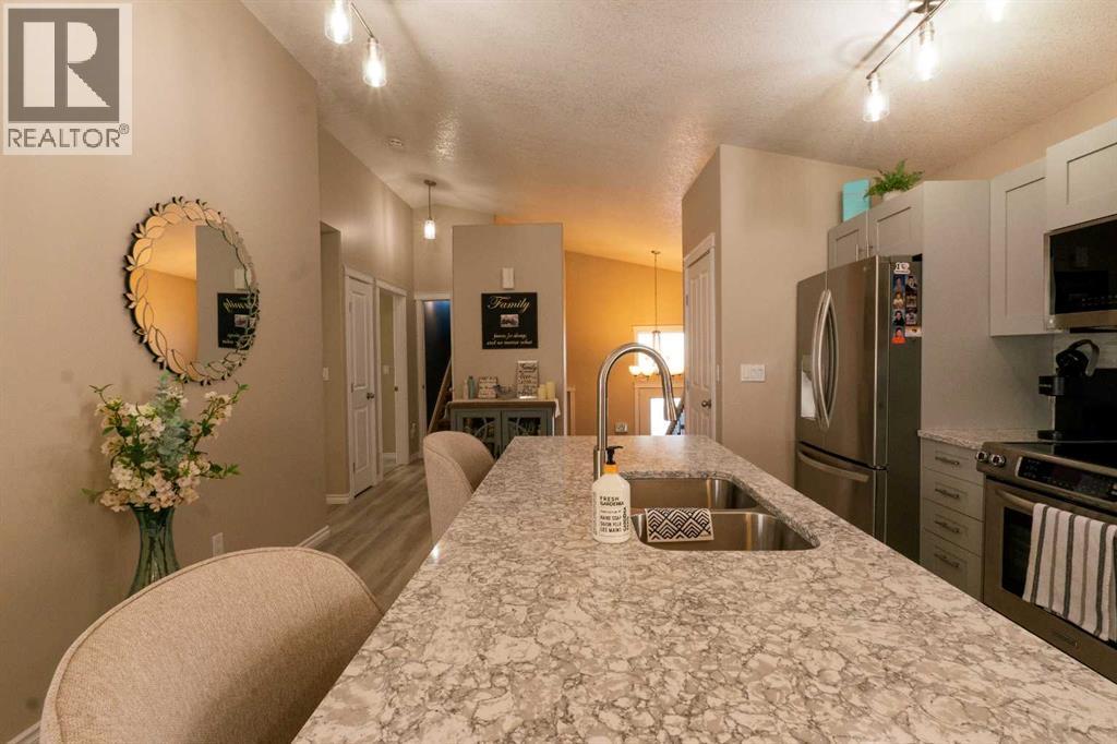 Welcome to this fully upgraded modified bi-level located in the highly desirable community of Signature Falls, offering 4 bedrooms and 3 full bathrooms with a functional and spacious layout perfect for families.This home has seen many recent upgrades, including fresh paint, new quartz countertops, soft-close cabinetry, new laminate flooring, and newer stainless steel appliances including microwave, refrigerator, and dishwasher. The hot water tank was replaced in 2023, adding extra peace of mind. The home also features central air conditioning, vaulted ceilings, and a convenient walk-in pantry.The bright living room overlooks the backyard and opens onto a large deck covered with a gazebo, creating the perfect space for outdoor relaxation or entertaining. The private primary bedroom level offers a spacious retreat complete with a walk-in closet and a 4-piece ensuite featuring a jacuzzi tub and separate shower.The fully developed basement provides additional living space with a large family room, Bedroom and a Full Bathroom while the 24x24 heated garage, fenced yard, and landscaped backyard add to the overall comfort and functionality of this home.Located in Signature Falls, one of Grande Prairie’s most sought-after neighbourhoods, this home is close to parks, schools, walking trails, and all amenities.A fantastic opportunity to own a beautifully upgraded home in a great location — book your showing today! (id:49203)