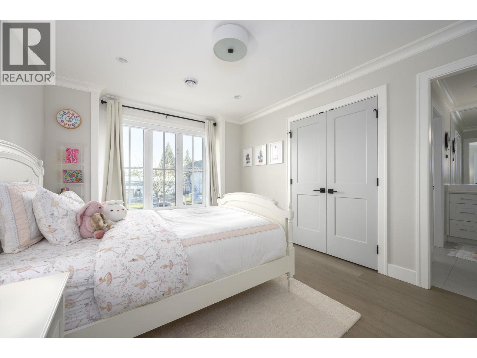 Welcome home to this exceptional 6 bed/6 bath modern farmhouse on a flat 40' lot in West Coquitlam. Thoughtfully designed w/bespoke craftsmanship & premium finishes throughout, this home features a bright, open main floor with over-height ceilings, gas fireplace, chef's kitchen with Bosch + Miele + Fisher & Paykel appliances and covered outdoor living with AZEK deck. Upstairs offers 4 bedrooms, incl. a stunning primary suite with walk-in closet and spa-inspired luxurious ensuite, plus 3 more bedrooms each with ensuite access. Benefit from a 2 bed legal suite w/option for additional nanny or studio suite. Upgrades: A/C, full hardwood flooring, and premium polyaspartic-coated garage with built-ins. Across from school and parks & walk to Burquitlam SkyTrain, shops, and YMCA pool. (id:49203)