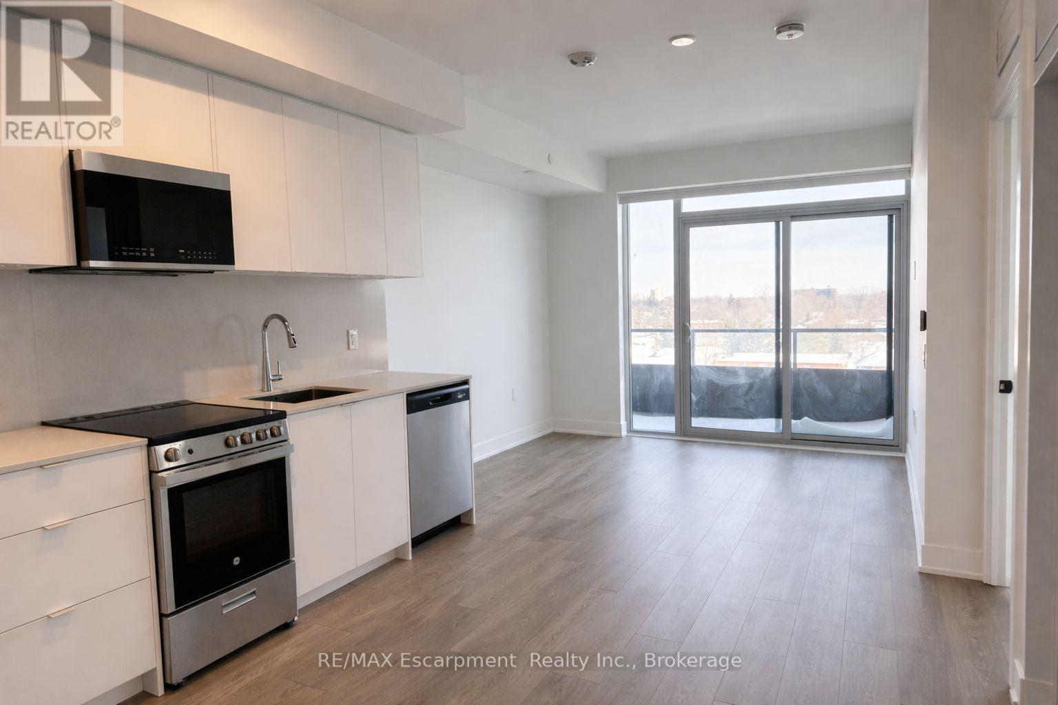 Welcome to Martha James - boutique condo living in the heart of Burlington. This beautifully upgraded 1 bedroom + den suite with 2 full bathrooms offers approximately 700 sq ft of thoughtfully designed living space with a private balcony and stunning natural light.Featuring an open-concept layout, the contemporary kitchen is complete with quartz countertops, slab backsplash, stainless steel appliances, and an upgraded microwave hood fan. Luxury vinyl plank flooring flows throughout, complemented by upgraded interior doors and hardware, mirrored closet doors, and upgraded roller shade window coverings.The spacious primary bedroom features floor-to-ceiling windows and a private ensuite, while the versatile den - enhanced with a full-height partition wall - provides the perfect work-from-home space or guest area with access to a second full bathroom. The bathrooms showcase elevated finishes including a frameless glass shower enclosure and upgraded soaker tub for a spa-like feel.Includes 1 underground parking space and 1 storage locker for added convenience.Enjoy premium building amenities including concierge service, fitness centre, rooftop terrace with BBQs, co-working lounge, social lounge, pet spa, and smart building entry.Prime downtown Burlington location - steps to shops, restaurants, transit, parks, and the waterfront.A rare opportunity to lease a stylish, upgraded suite in one of Burlington's most desirable new residences. (id:49203)