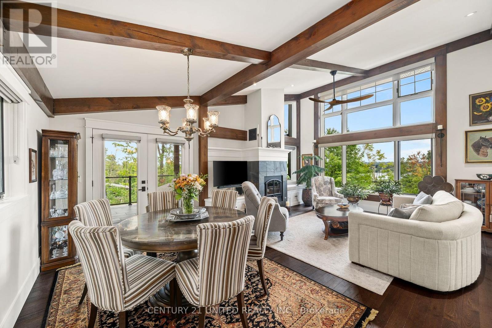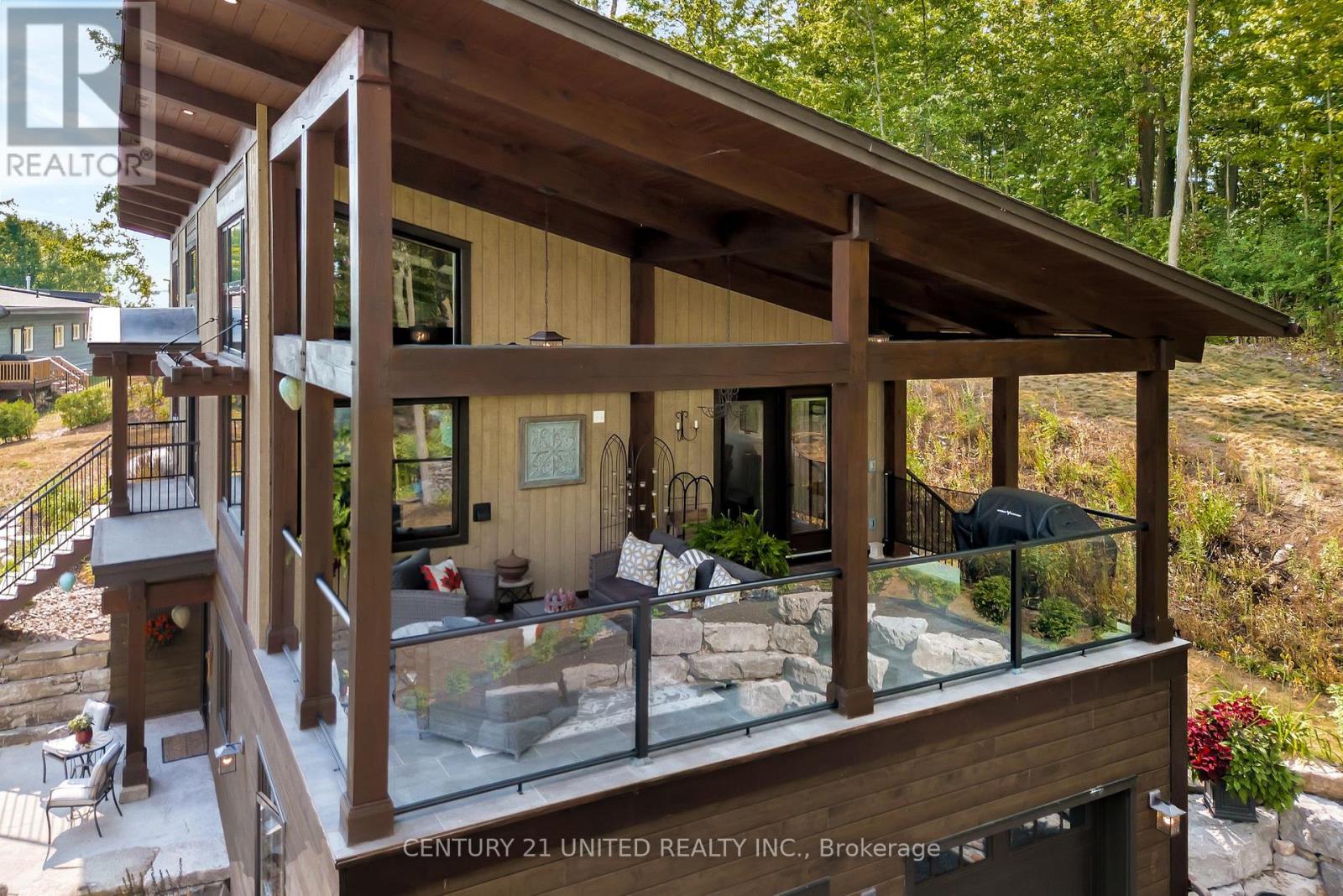 Architecturally intentional and expertly engineered, this 2020 Discovery Dream Home was designed for those who value privacy, elevation, and refined everyday living. Set high on a double lot with expansive lake views, the home includes deeded waterfront access with a private dock-offering a lakeside lifestyle without the maintenance of direct waterfront ownership. Inside, soaring 13-foot vaulted ceilings, exposed timber beams, and precision craftsmanship define the open, light-filled interior. The layout is intentionally designed for couples, professionals, or those downsizing without compromise-featuring two spacious bedrooms and a dedicated sauna and gym retreat with shower, easily converted to additional living space if desired. The primary suite offers a luxurious ensuite with soaker tub, while two additional powder rooms support both daily living and entertaining. An oversized screened-in deck with vaulted ceiling and integrated heating extends the main living space year-round, positioned to take in the surrounding lake and natural setting. Armour stone landscaping, established gardens, and a double heated garage complement the home's elevated setting-shared by neighbouring executive residences along the hillside. Additional features include a lifetime-warranty roof, Energy Star-rated windows and doors, and meticulous attention to long-term performance and comfort throughout. Located just 10 minutes to Peterborough and approximately one hour to the GTA, this is a rare opportunity for buyers seeking architectural beauty, privacy, and a home designed around lifestyle. (id:49203)