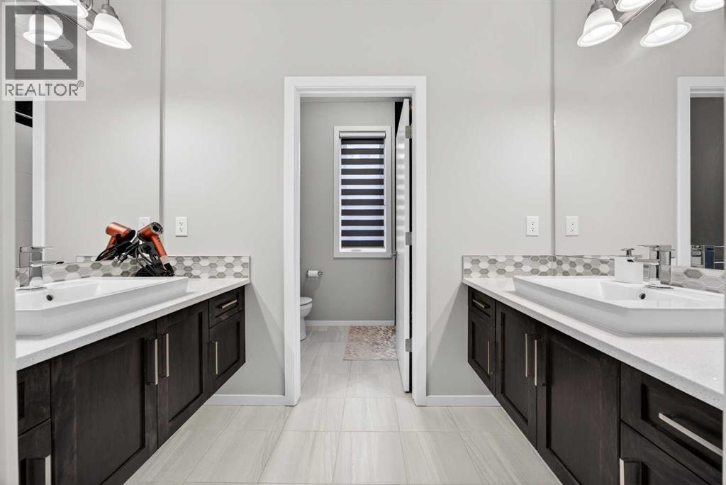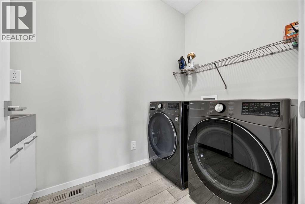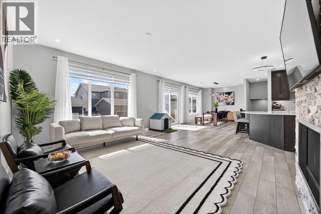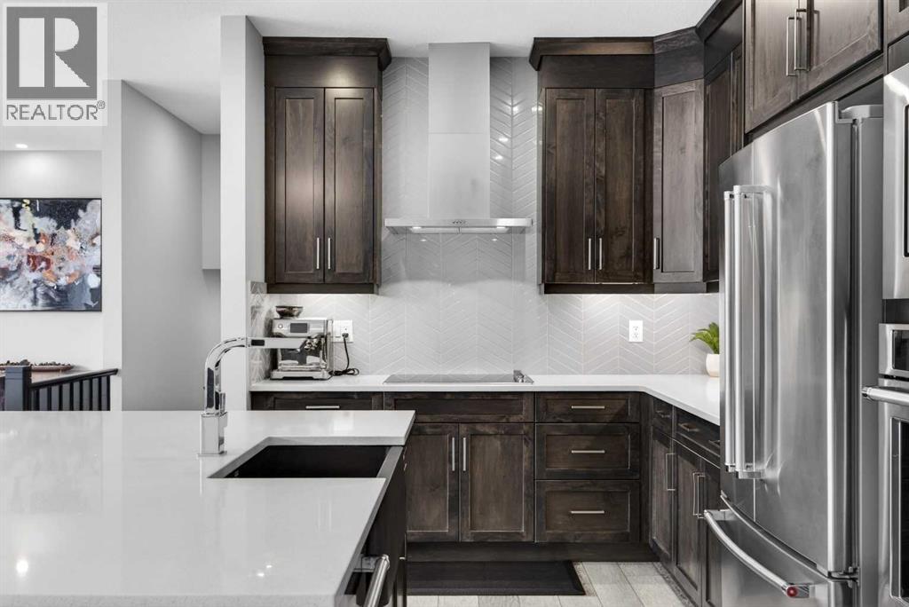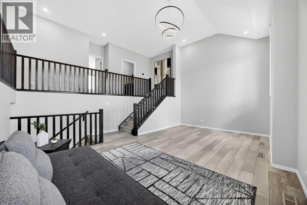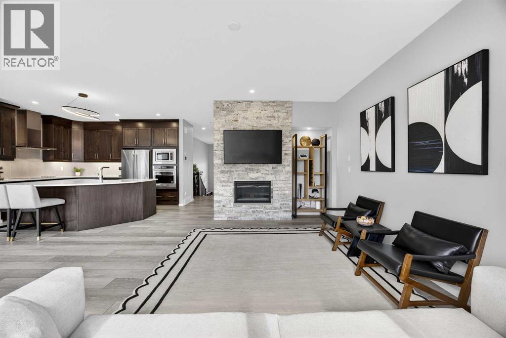 WOW! I don't even know where to start with this amazing home! So much space and room to grow in this IMMACULATE home that still shows like brand new! As you enter the home you are greeted with a spacious entrance and as you come up a few stairs to the main living areas you have a convenient private office space, a WIDE OPEN floor plan in the kitchen, living room and dining areas! The kitchen is a chefs dream with a HUGE island, quartz countertops, loads of cabinet space, cooktop, built in wall oven, central sink in the island, chevron style backsplash, a walk in pantry and upgraded lighting! The living room features a floor to ceiling stone wall where the gas fireplace ties in seamlessly, beautiful vinyl flooring throughout the main floor, a generous sized dining area that can accommodate a massive table if needed and there is access to the back yard from the living/dining areas! As we make our way upstairs you have a totally separate and HUGE bonus room with soaring vaulted ceilings and tons of natural light! As we keep going upstairs to the bedrooms there is an upper level laundry room with a sink , the primary bedroom is awesome and it has a sunny south exposure, a walk in closet that is massive and the ensuite bathroom has dual sinks, quartz counters, soaker tub and a separate shower! The remainder of the upper level features THREE more bedrooms (all a great size!) and another full bathroom with dual sinks as well! As if that wasn't enough we ALSO have a fully finished basement with a side entrance, kitchen area (no stove) but there is a second fridge, additional washer and dryer, tons of storage and a 5th bedroom as well as a large living area that could be suited in the future if needed. This home has it ALL - in addition to all of this there is also a professionally built dog wash area in the mudroom, south facing back yard that will have brand new sod installed soon, a double front attached garage, super close and convenient to all of the areas amenities, sc hools, parks, playgrounds, golf courses, Stoney and McLeod trails! This home is one of the special ones you don't see very often and is ready for the new owners to love it as much as the current ones do! Don't miss this one! (id:49203)
