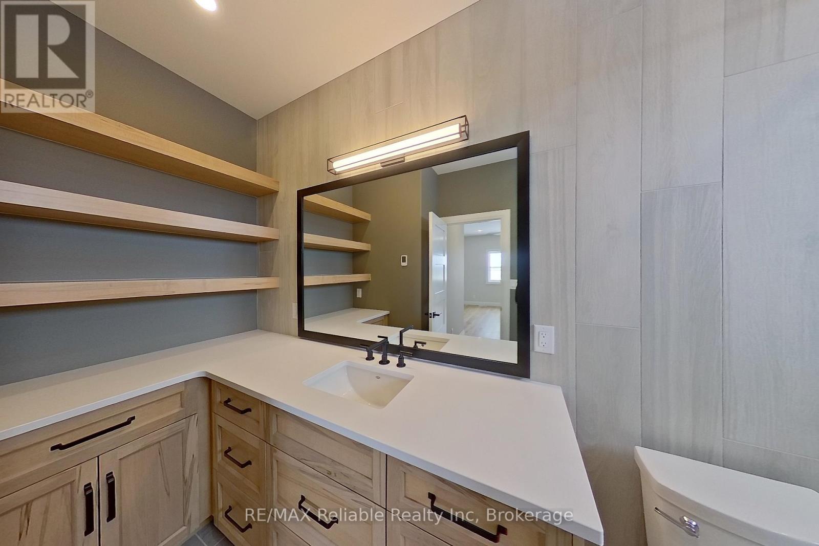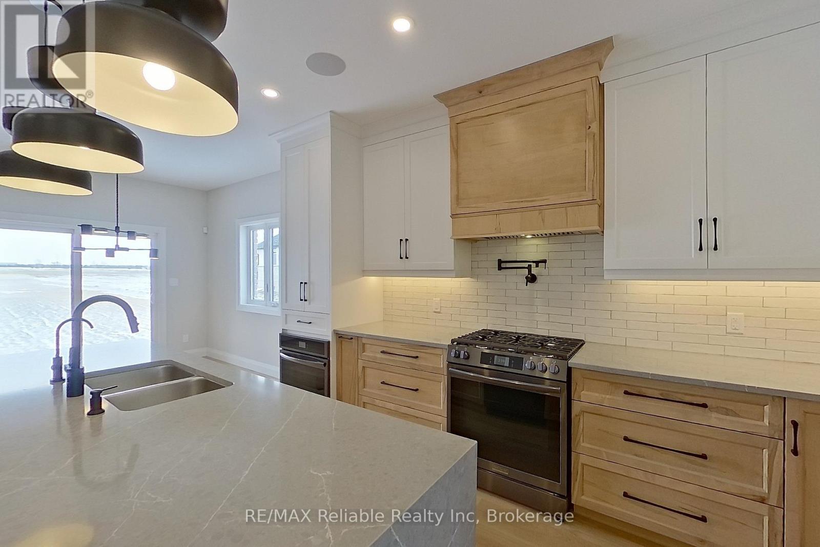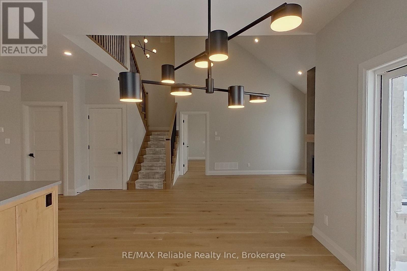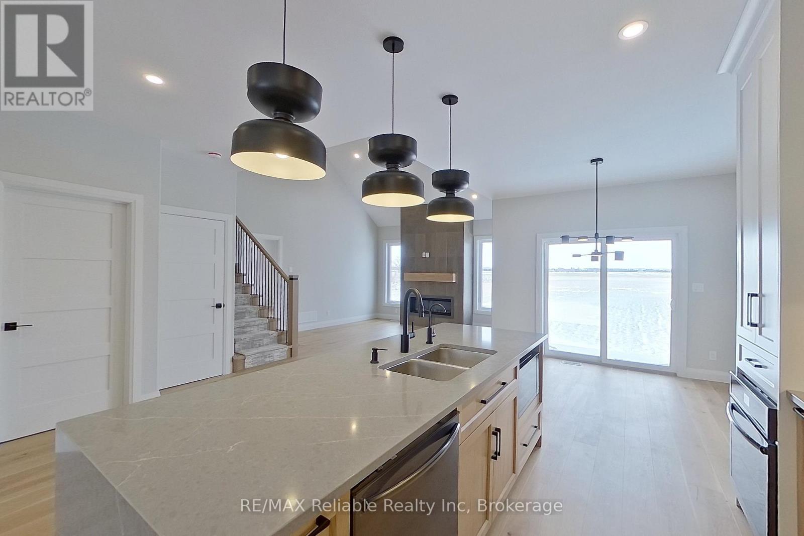 Welcome to your new home! Check out this stunning custom built, executive-style home with a view of the lake! Ideally located on almost an acre lot, this home offers the perfect blend of luxury and tranquility. Just a short walk to a private beach access, you'll enjoy the impressive shores and sunsets of Lake Huron. Loaded with upgrades, this home features 3+ bedrooms and 3 full bathrooms. A built-in surround sound system, powered by a Sonos driver, enhances the kitchen, porch and media room. The main floor welcomes you with a spacious foyer, a formal dining room and a stylish 2 pc bathroom. The open concept design features a large kitchen, breakfast nook and living room, complete with a cozy natural gas fireplace. The spacious primary bedroom has a walk-in closet and spa-like ensuite with an oversized, beautiful tiled shower. Upstairs the versatile loft area leads to 2 generously sized bedrooms, with a media room that can serve as an additional bedroom, as well as an attractive 4 pc bathroom. The full basement is equipped with in-floor radiant heat and is ready for your finishing touches. A 3 pc bathroom is roughed in and a huge cold cellar provides ample storage space. Outside, a concrete driveway leads up to a triple car garage with an additional large door which provides access to the backyard. A durable metal roof adds long-term value and protection. This is an ideal home for anyone searching for the ultimate blend of comfort, style and convenience. Located approximately 10 minutes south of Bayfield and 15 minutes north of Grand Bend. Don't miss your chance to own this exceptional property, call today for a private viewing. (id:49203)