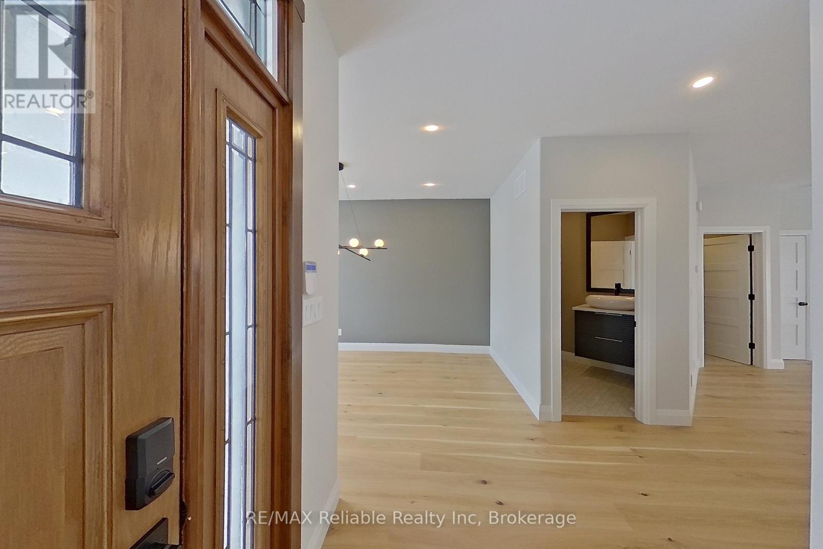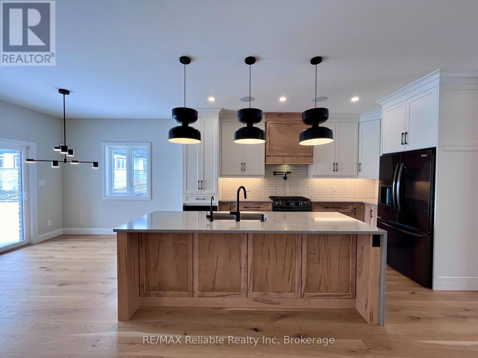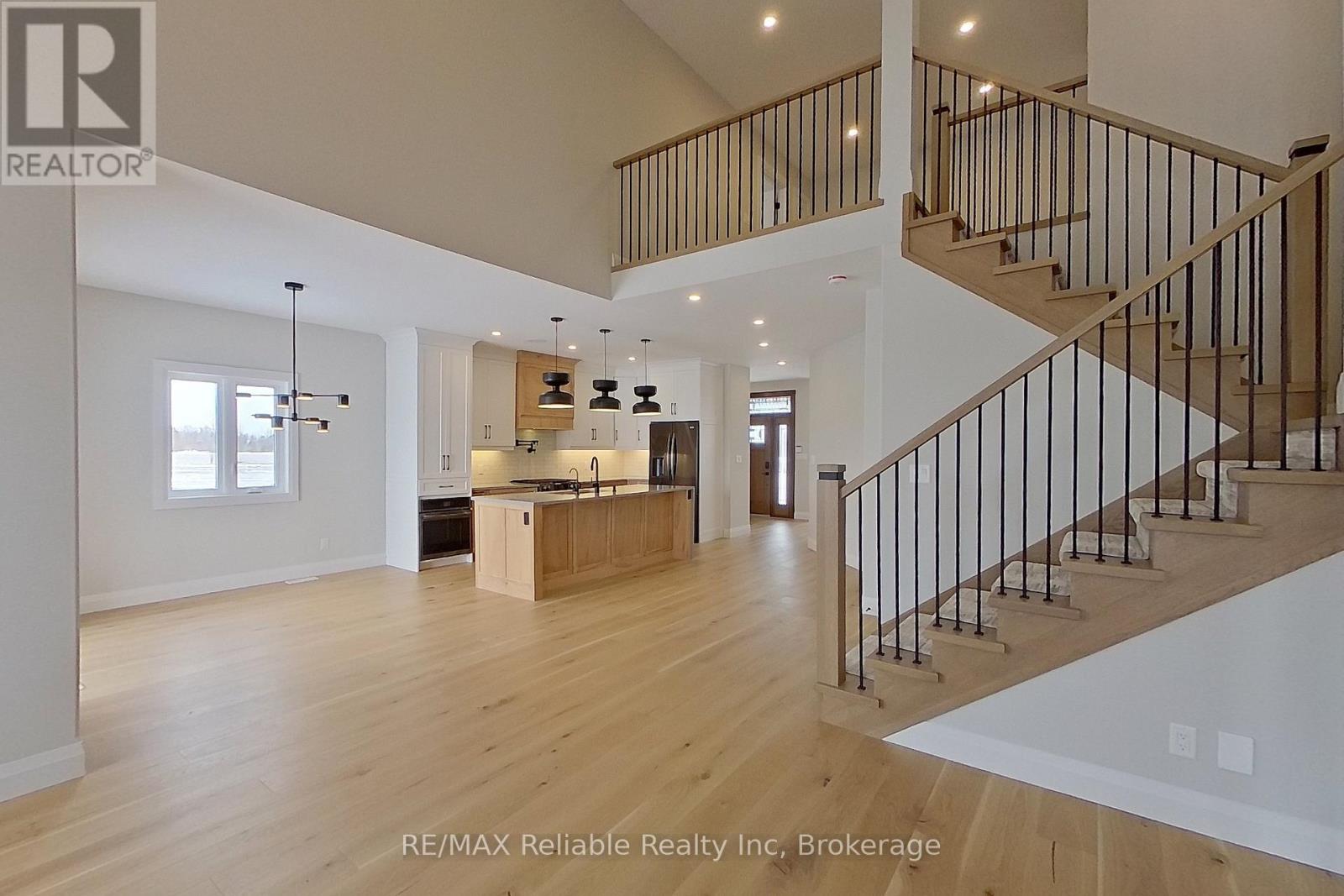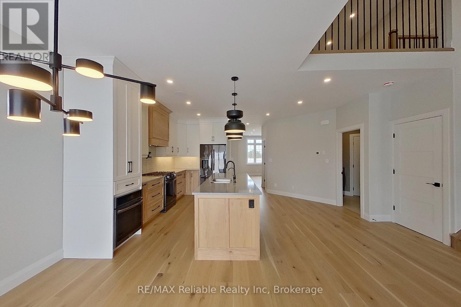 Welcome to your new home! Check out this stunning custom built, executive-style home with a view of the lake! Ideally located on almost an acre lot, this home offers the perfect blend of luxury and tranquility. Just a short walk to a private beach access, you'll enjoy the impressive shores and sunsets of Lake Huron. Loaded with upgrades, this home features 3+ bedrooms and 3 full bathrooms. A built-in surround sound system, powered by a Sonos driver, enhances the kitchen, porch and media room. The main floor welcomes you with a spacious foyer, a formal dining room and a stylish 2 pc bathroom. The open concept design features a large kitchen, breakfast nook and living room, complete with a cozy natural gas fireplace. The spacious primary bedroom has a walk-in closet and spa-like ensuite with an oversized, beautiful tiled shower. Upstairs the versatile loft area leads to 2 generously sized bedrooms, with a media room that can serve as an additional bedroom, as well as an attractive 4 pc bathroom. The full basement is equipped with in-floor radiant heat and is ready for your finishing touches. A 3 pc bathroom is roughed in and a huge cold cellar provides ample storage space. Outside, a concrete driveway leads up to a triple car garage with an additional large door which provides access to the backyard. A durable metal roof adds long-term value and protection. This is an ideal home for anyone searching for the ultimate blend of comfort, style and convenience. Located approximately 10 minutes south of Bayfield and 15 minutes north of Grand Bend. Don't miss your chance to own this exceptional property, call today for a private viewing. (id:49203)