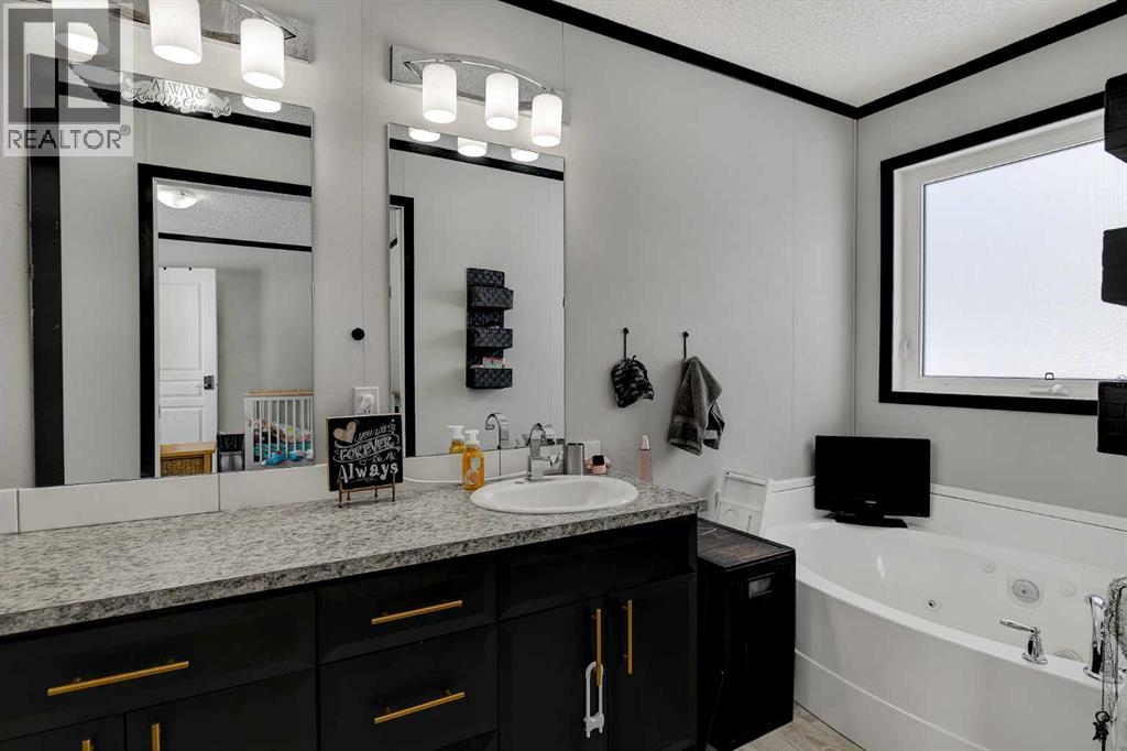 Stunning 3-acre private acreage with incredible lifestyle upgrades! This beautifully designed home welcomes you with a bright, open-concept layout flooded with natural light and finished in modern, inviting tones throughout. From the moment you walk in, you’ll be impressed by the expansive kitchen featuring high-end stainless steel appliances, an oversized island, abundant counter space, and a MASSIVE walk-in pantry—perfect for families or those who love to entertain. The seamless flow into the dining and living areas creates the ideal space for hosting guests or keeping an eye on the kids while preparing meals. The spacious primary suite is a true retreat, offering a large closet and a private ensuite complete with a relaxing jetted tub. Thoughtful upgrades like built-in wireless speakers and USB outlets throughout the home add both convenience and modern functionality. Step outside and enjoy everything acreage living should be with a large deck perfect for summer BBQs, a custom firepit area for evening gatherings, and a fully set-up dog run for pet lovers. The property also features a C-Can for secure storage and the added comfort of air conditioning, making it ideal for year-round living. Surrounded by nature and offering exceptional privacy, this property delivers the perfect blend of comfort, space, and outdoor lifestyle—book your showing today! (id:49203)