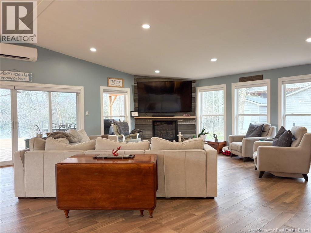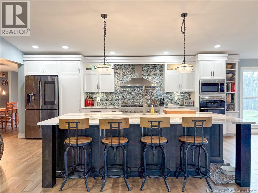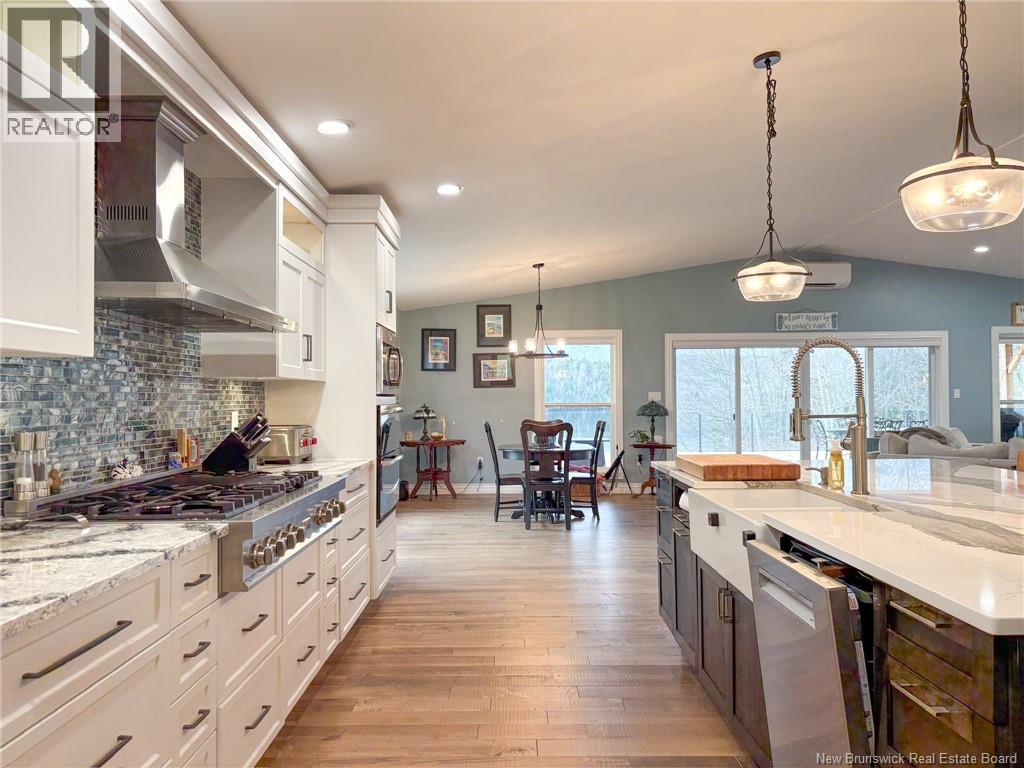 You know the feeling when you wake up at a resort on vacation? Imagine having that feeling every single day?!?! This stunning property boasts a recently renovated massive home, immaculate grounds, garages galore all along the Saint John River (NB Power Lease Required). As you pull in the drive, the charming stone wall sets the stage, the paved driveway leads you to endless garage space both attached & detached and the view is just breathtaking. Entering the home you will be greeted by a large foyer, and a massive Kitchen/Living/Dining space larger than most homes overlooking the river and a huge deck, the absolute perfect spot for entertaining! It doesn't end there; a separate gym/office space, cozy den with a second fireplace, second dining room & half bath complete this level. The upper level houses the Primary suite with ensuite, his & hers WIC and its own laundry, a full main bath & second bedroom. The basement level has a second laundry room, 1/2 bath, 2 additional bedrooms, office and endless storage. Kept warm & cool by it's efficient geothermal heat pump as well as 3 mini split heat pumps and solar panels for extremely low NB Power bills. Electric Car Charger in the garage, power to dock area (docks negotiable), RV hookups, Generac Generator. The adjacent 2.7 acre lot is also for sale MLS# NB130647 $119,900 (id:49203)