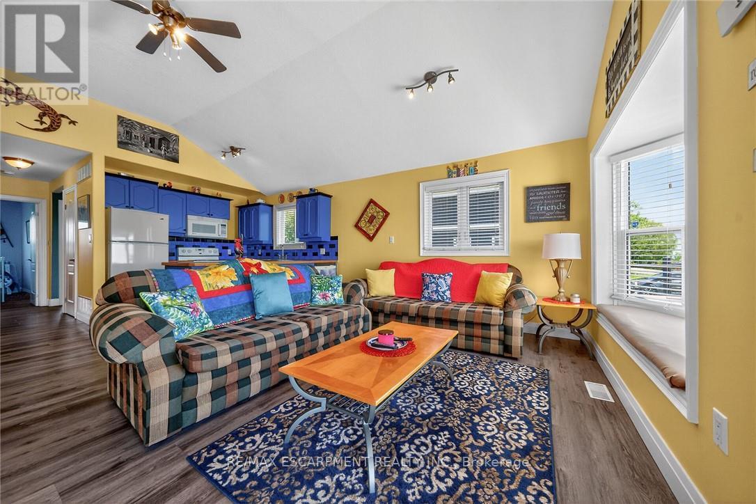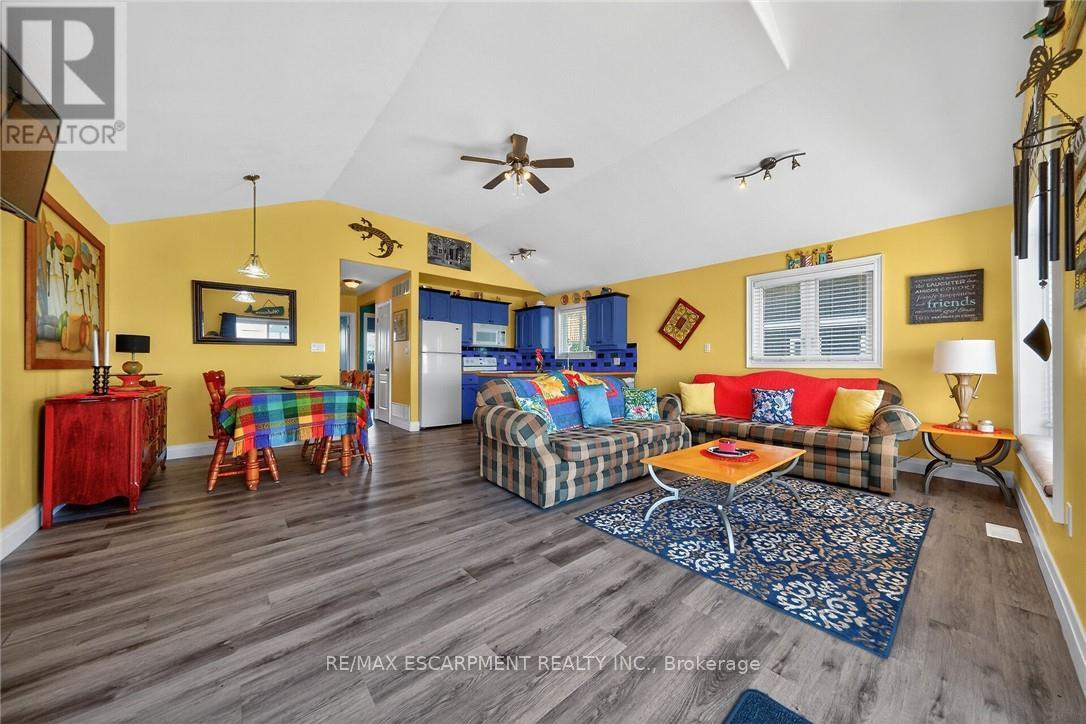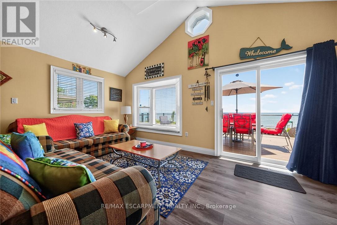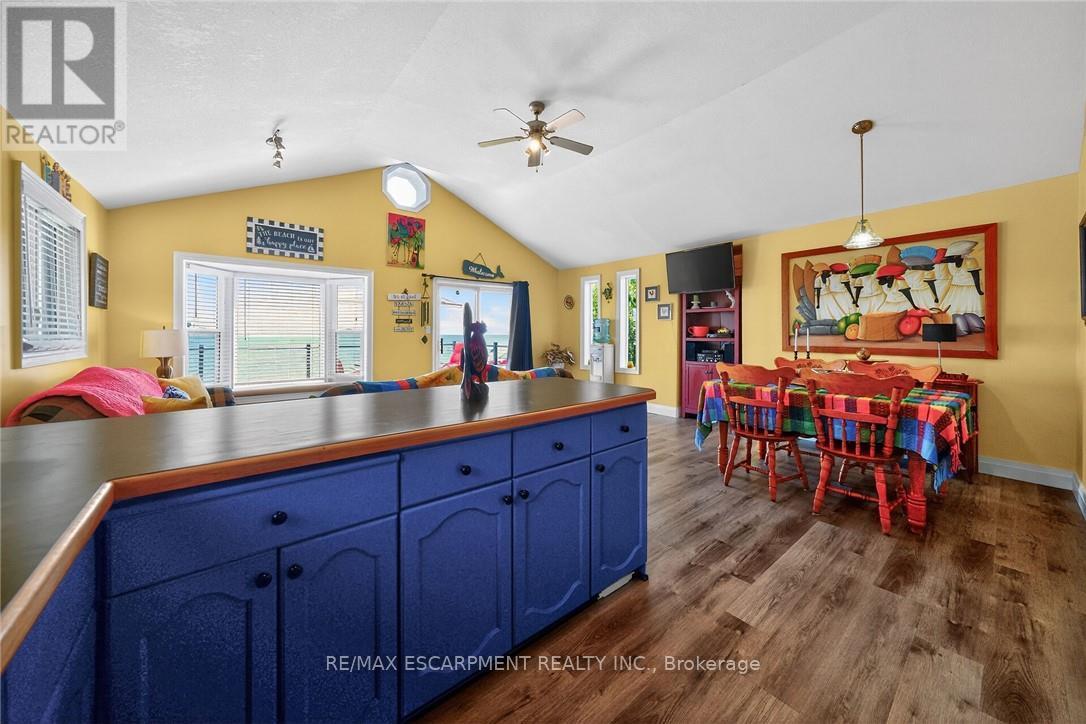 Exquisitely updated, Caribbean Inspired 5 bedroom, 2 bathroom Turn key Lake Erie home offering gorgeous unobstructed Lakeviews and desired sand beach across the road. Ideal family cottage, home, or Investment with all furnishings included - truly a "move right in" package. Great curb appeal with oversized, elevated Lakefacing deck with composite decking, & ample parking situated on 50' x 100' lot. Extensively renovated in 2017 & 2019 with new poured concrete foundation, insulation, wiring, drywall, flooring, furnace, A/C, & more. Better than New! The stunning interior layout features approximately 1600 sq ft of distinguished living space highlighted by vaulted ceilings, premium luxury vinyl flooring, custom kitchen cabinetry, dining area, & spacious living room with emphasis on the water views, 2 MF bedrooms, & 4 pc bathroom. The finished basement includes 3 additional bedrooms, large rec room area, 3 pc bathroom with walk in shower, laundry room. Experience the Lake Erie Lifestyle! (id:49203)
