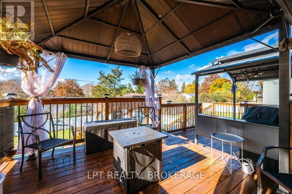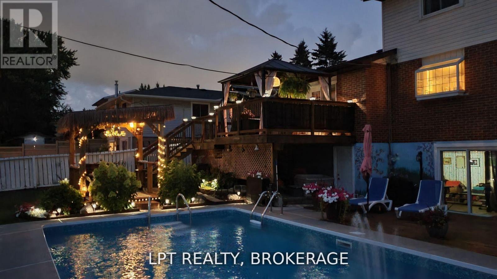 Discover your dream home in Kingston's coveted west end-a stylish and desirable 4-bedroom, 2.5-bathroom, two-storey home that exudes both class and comfort. Step inside to find an inviting main floor where natural light streams through oversized windows, highlighting elegant finishes and an open layout ideal for everyday living and entertaining.The heart of the home is the chef's kitchen, complete with gleaming quartz countertops, a custom greenhouse window overlooking the backyard, and ample cabinet space. Gather around the center island or spill out onto the extensive decking for dining and evening sunsets.Downstairs, the fully finished walk-out basement offers a spacious family room, and a beautifully appointed bathroom with in-floor heating for year-round comfort. Every corner reflects thoughtful updates from siding, roof, appliances, kitchen, bathrooms, furnace and a/c just to mention a few.Outside, your private oasis awaits: an inground pool framed by lush landscaping, plenty of patio space, and a tiki bar ready for summer gatherings. This turnkey home invites you to move in with your family and start making memories from day one. Don't miss this west end gem-stylish, updated, and completely move-in ready. (id:49203)