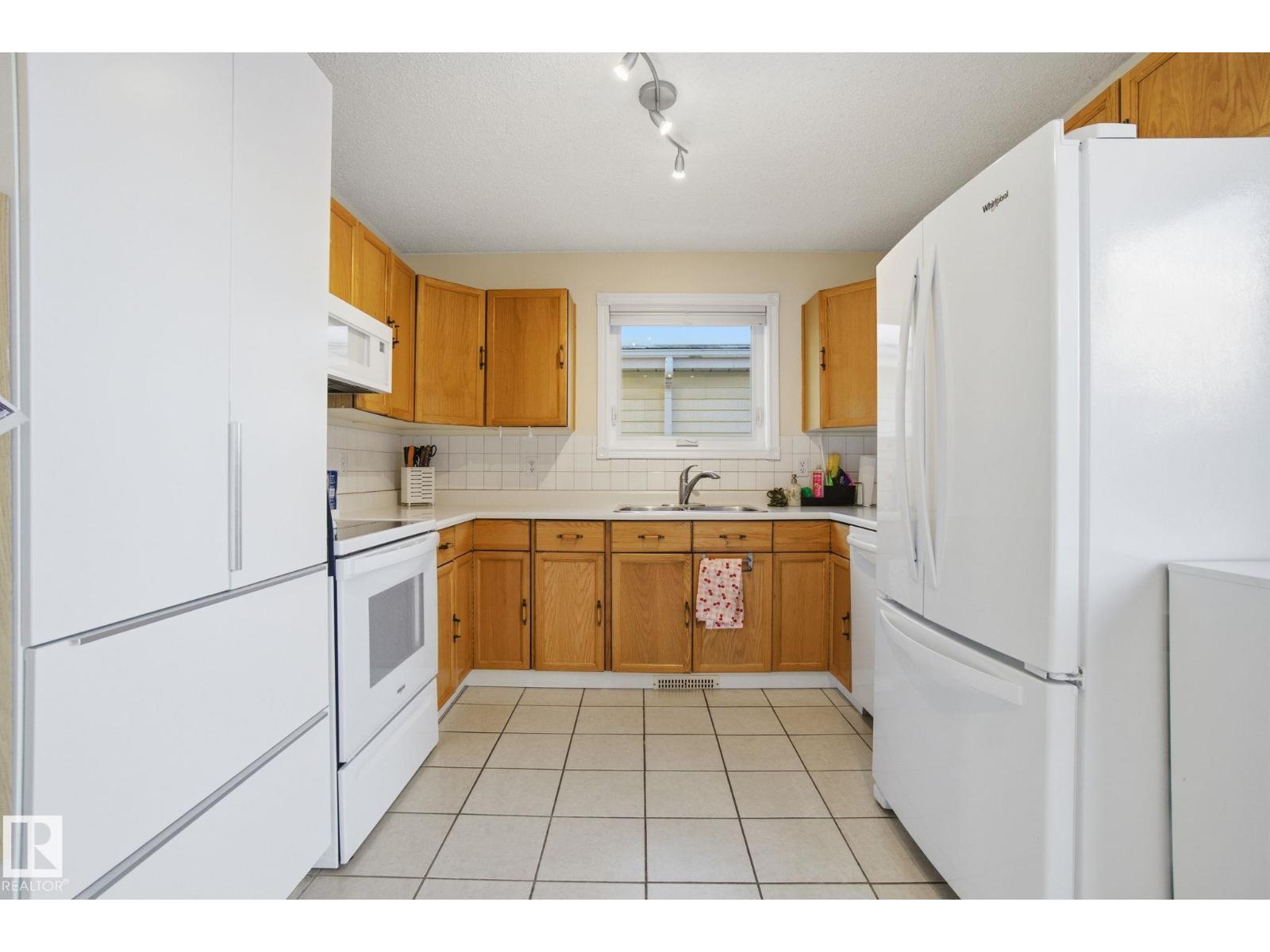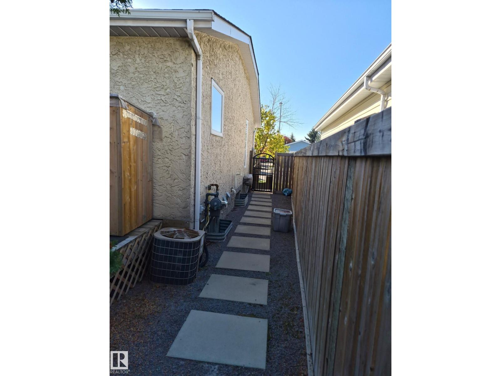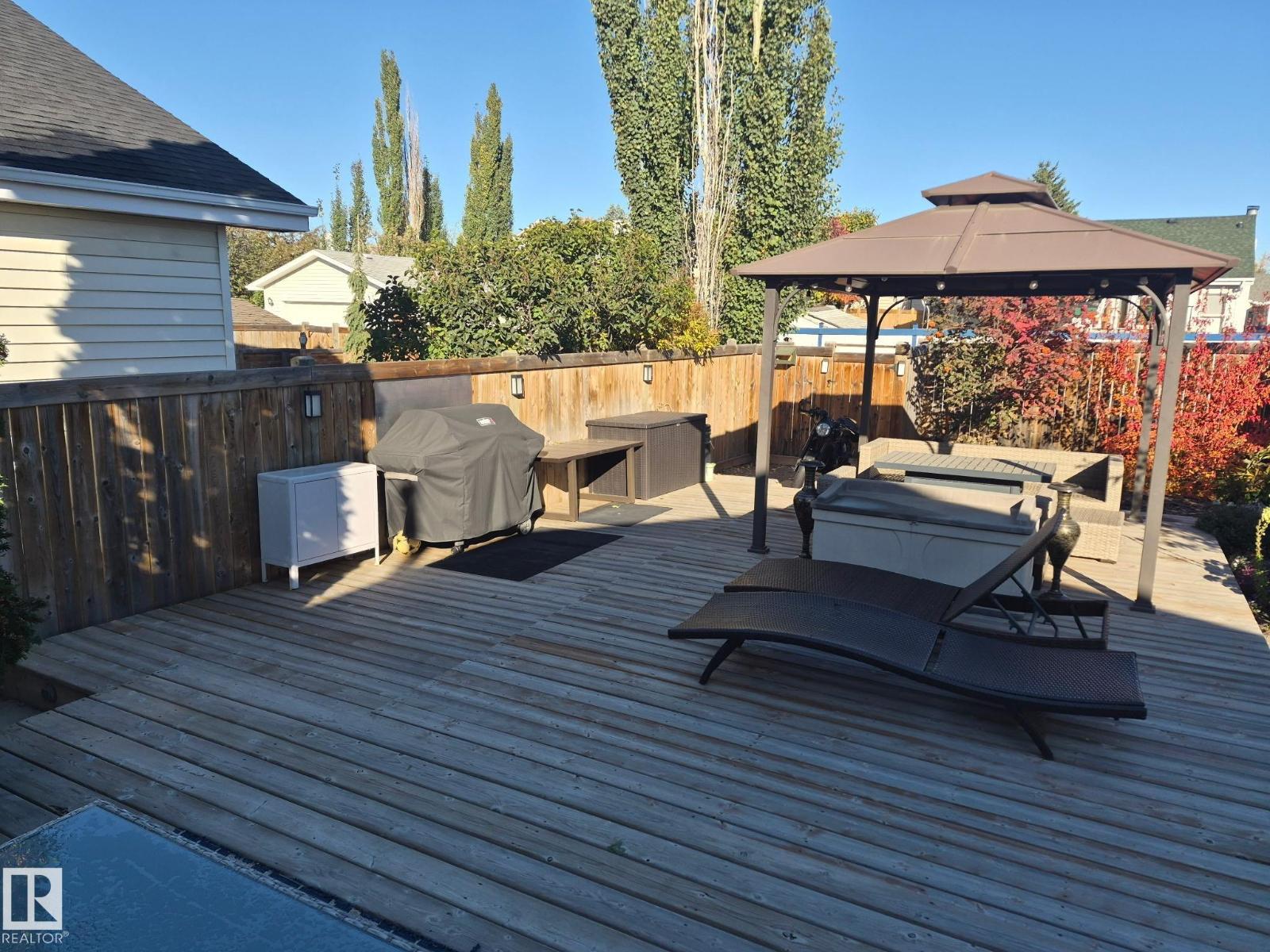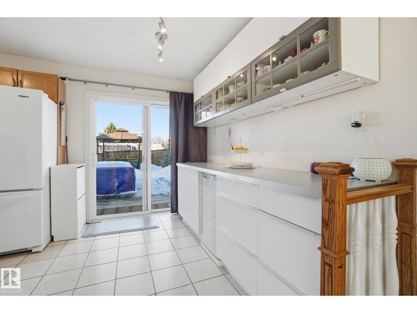 Welcome to this bright and inviting 4-bed, 3-bath home, lovingly maintained with recent updates including a high-efficiency furnace, shingles, fresh appliances, vinyl windows, stylish front door and rear sliding patio doors. Enjoy central A/C, top-down window coverings, and blackout shades in the bedrooms. The kitchen shines with a well-organized pantry (roll-out shelves), built-in prep counter with mini fridge, and glass upper display cabinets. Step outside to your backyard retreat featuring a tiered deck, gazebo with bistro lighting, gas line ready for your BBQ and fire table, multiple sheds, water barrel, raised garden beds, fire pit, and mature trees. Bonus: A 20x20 garage permit was previously approved by the City of Edmonton—ideal for future expansion! Nestled in a peaceful community with unbeatable location—minutes from Lymburn Elementary, quick access to Anthony Henday and Whitemud, 5 min to YMCA, and under 10 min to West Edmonton Mall. Everything you need is right at your fingertips! 10/10! (id:49203)