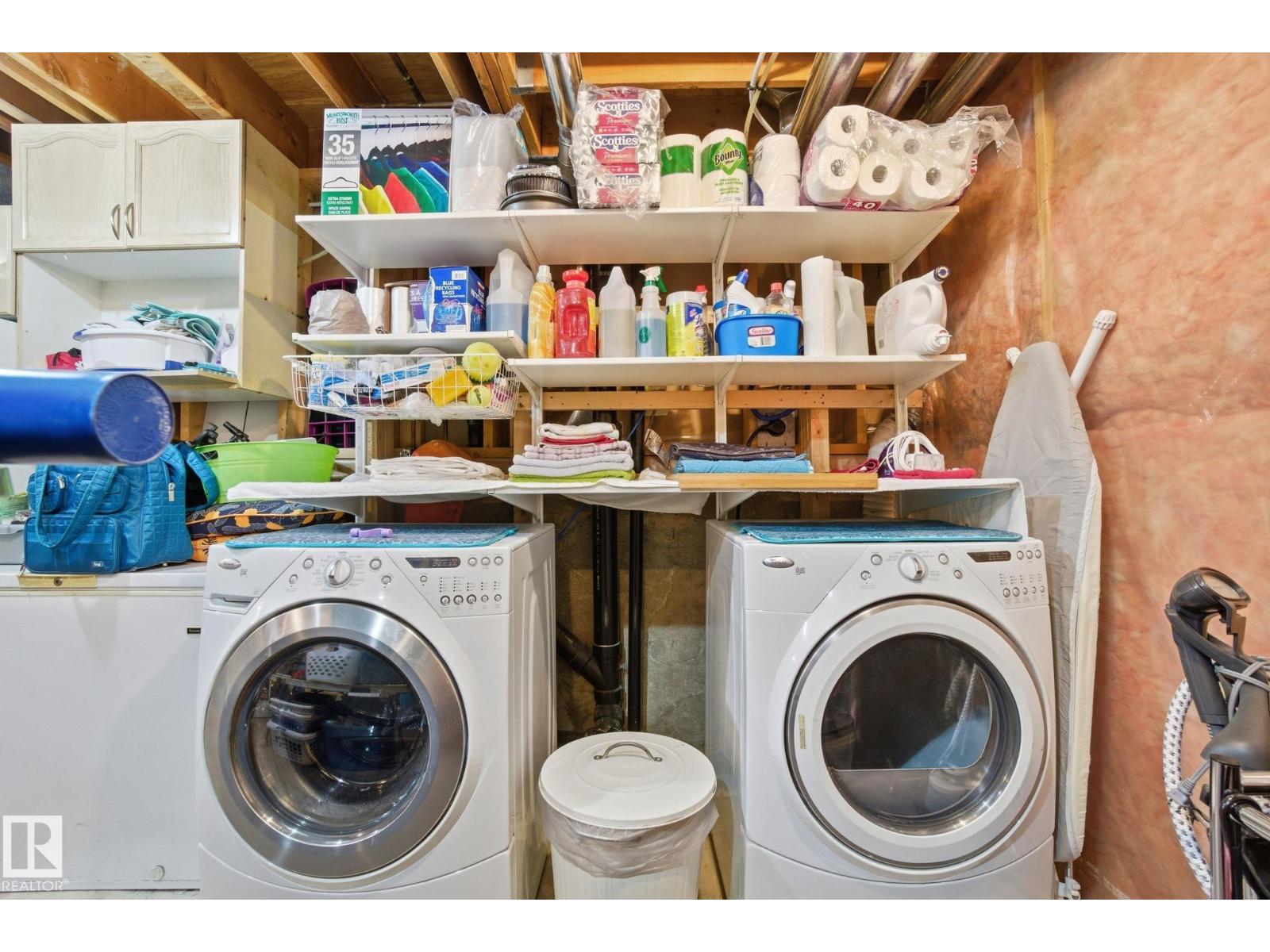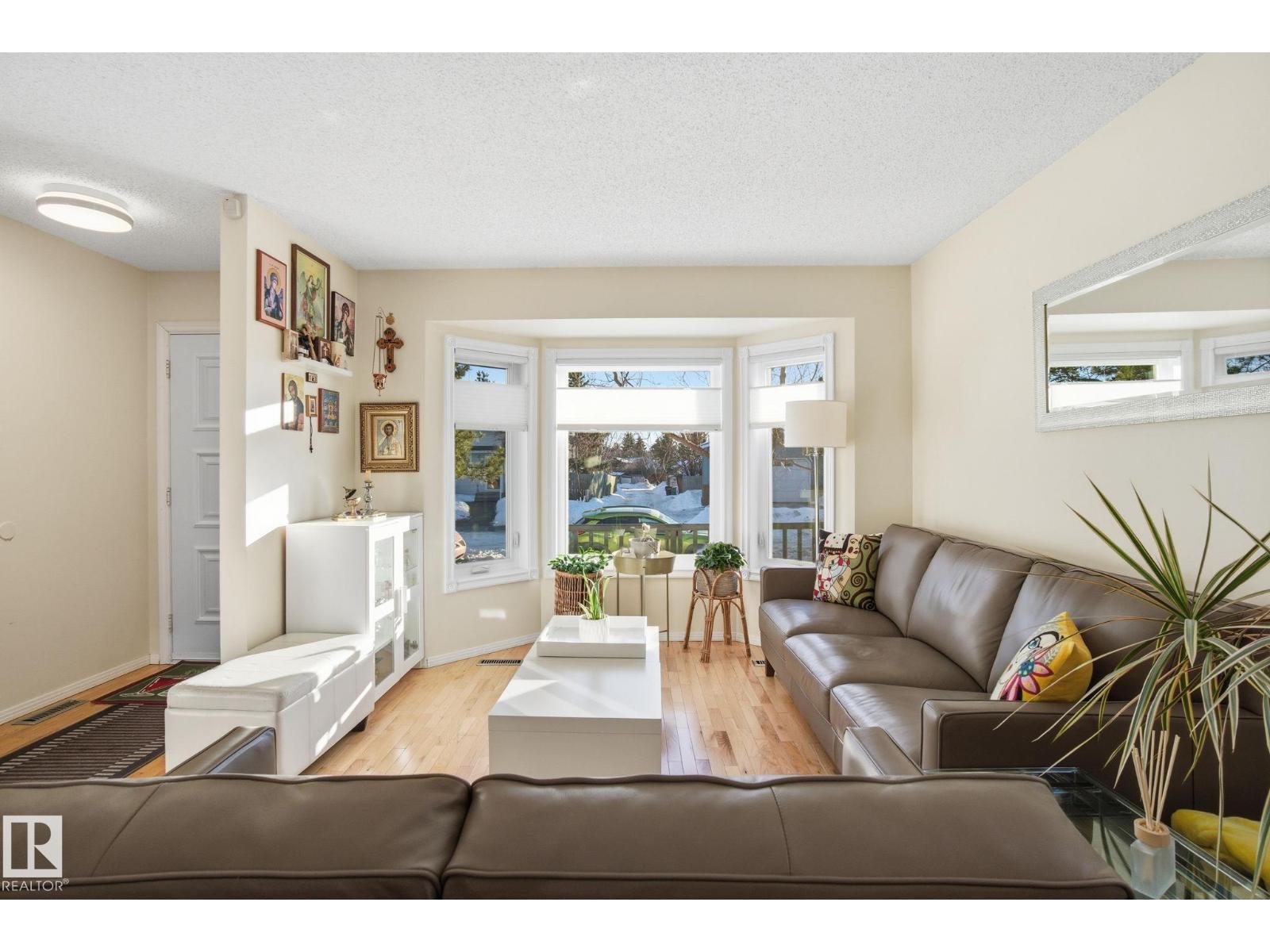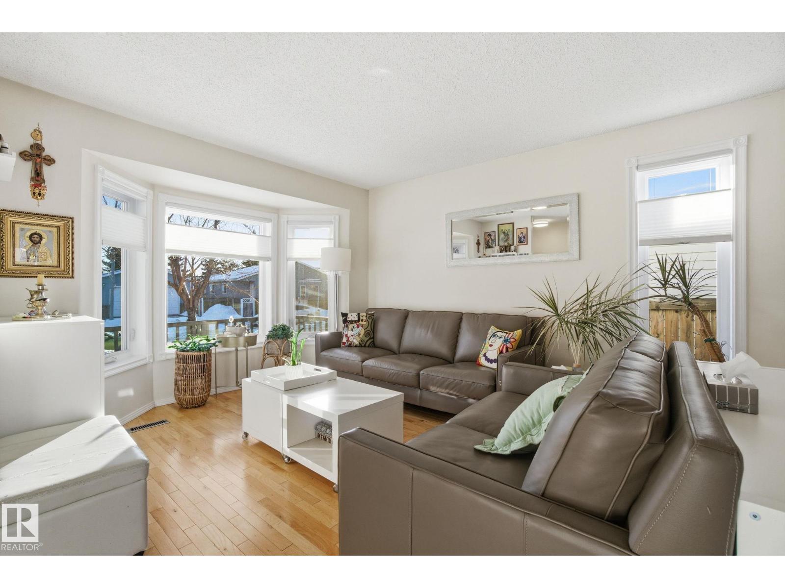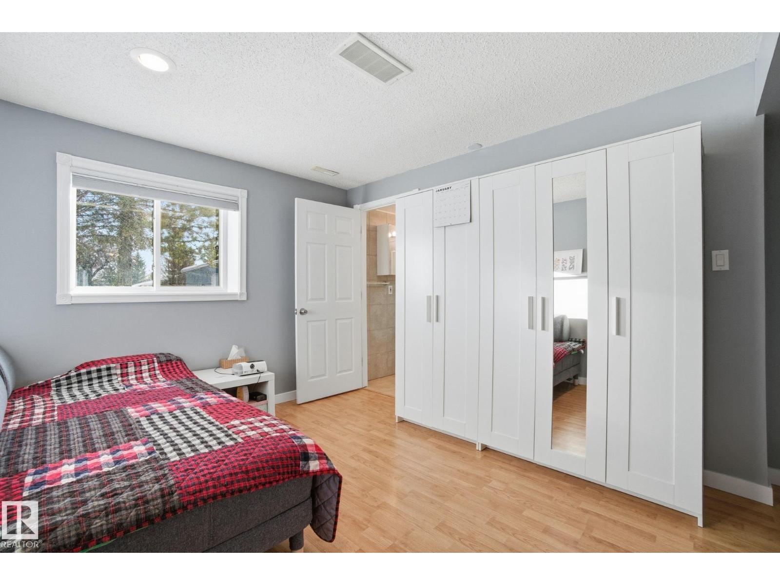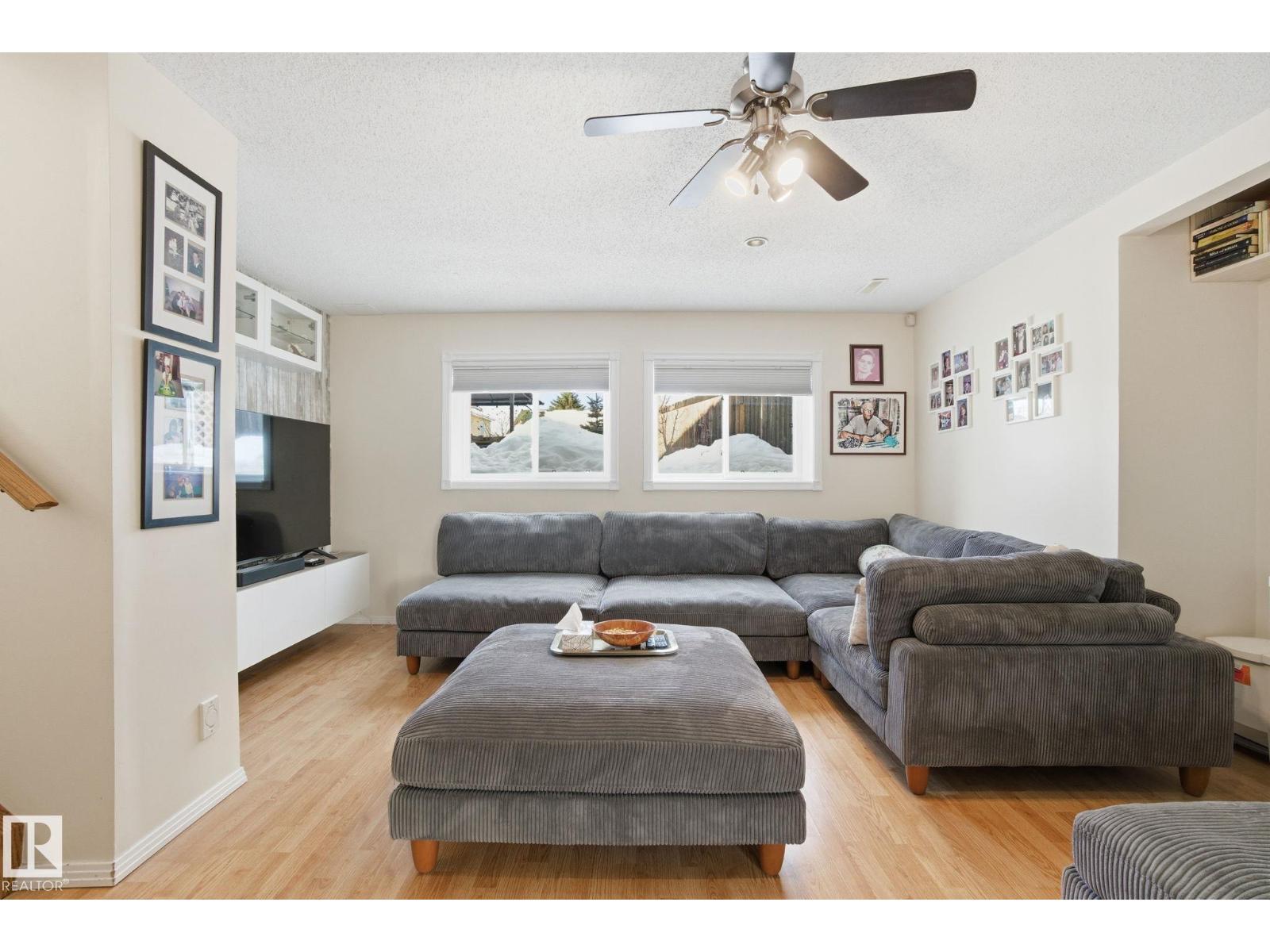 Welcome to this bright and inviting 4-bed, 3-bath home, lovingly maintained with recent updates including a high-efficiency furnace, shingles, fresh appliances, vinyl windows, stylish front door and rear sliding patio doors. Enjoy central A/C, top-down window coverings, and blackout shades in the bedrooms. The kitchen shines with a well-organized pantry (roll-out shelves), built-in prep counter with mini fridge, and glass upper display cabinets. Step outside to your backyard retreat featuring a tiered deck, gazebo with bistro lighting, gas line ready for your BBQ and fire table, multiple sheds, water barrel, raised garden beds, fire pit, and mature trees. Bonus: A 20x20 garage permit was previously approved by the City of Edmonton—ideal for future expansion! Nestled in a peaceful community with unbeatable location—minutes from Lymburn Elementary, quick access to Anthony Henday and Whitemud, 5 min to YMCA, and under 10 min to West Edmonton Mall. Everything you need is right at your fingertips! 10/10! (id:49203)