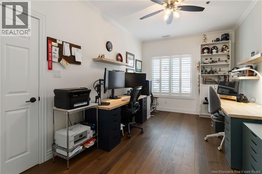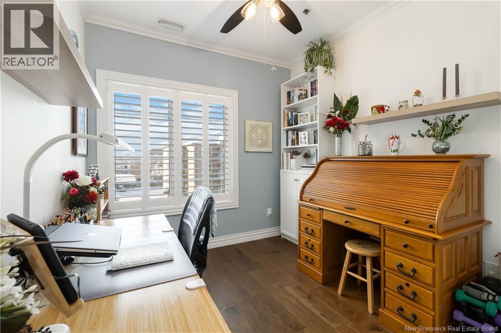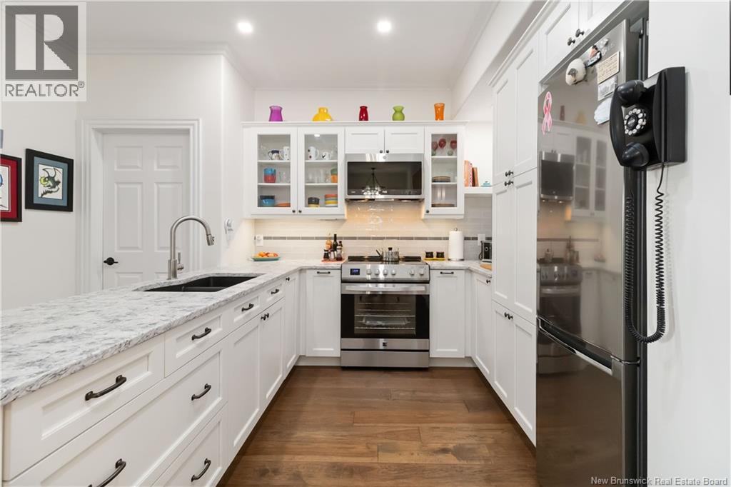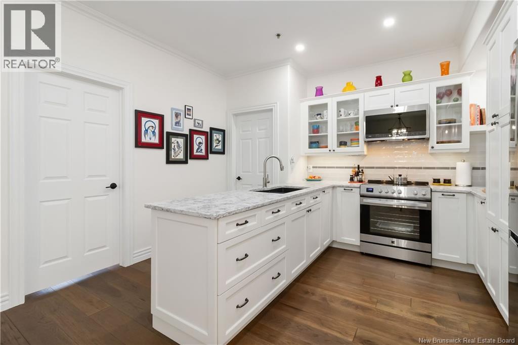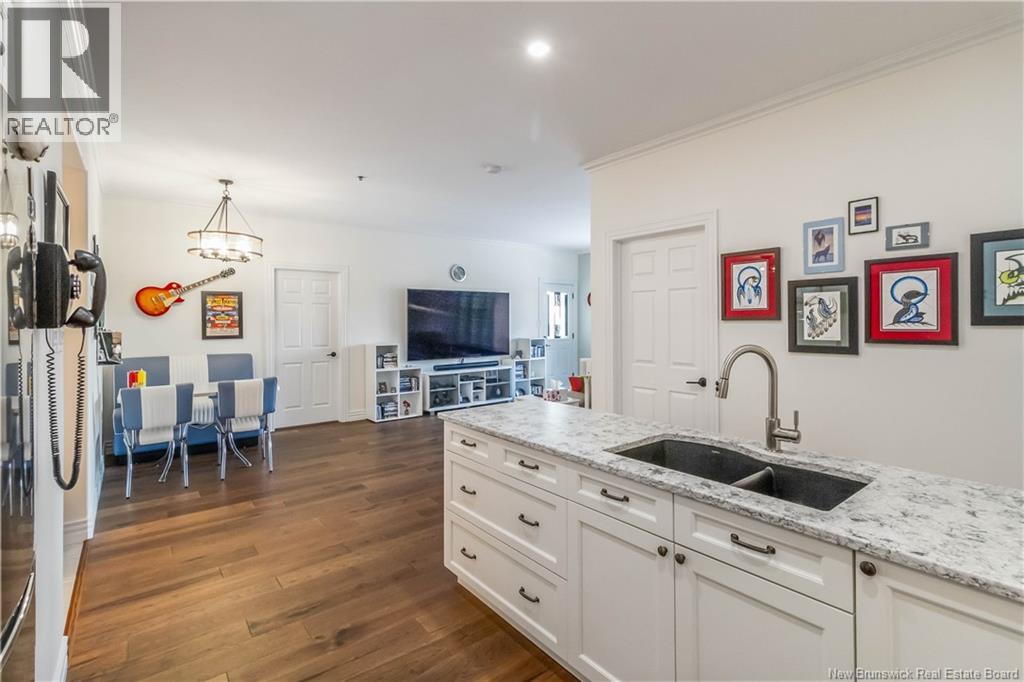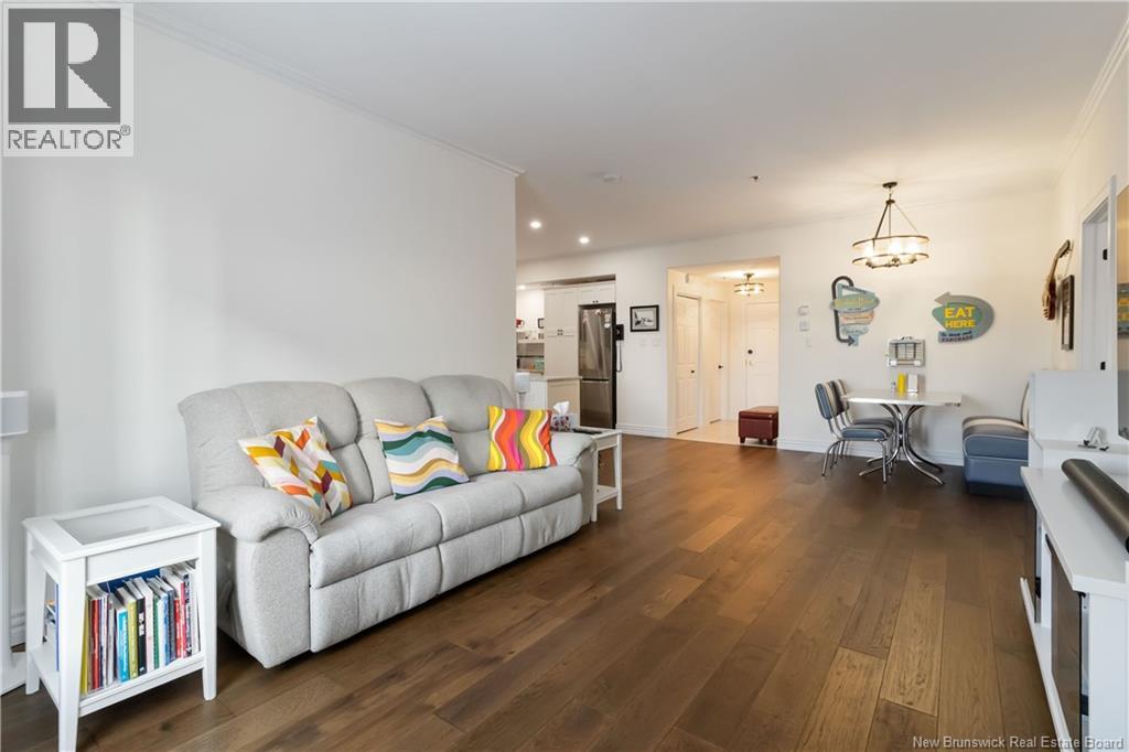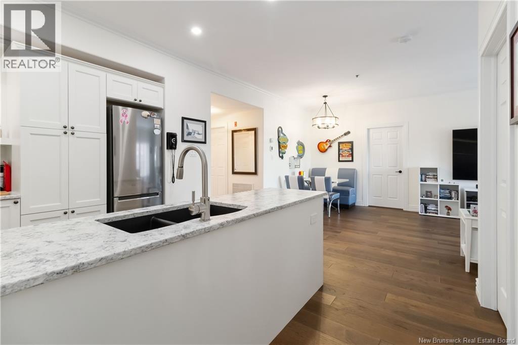 Luxurious Downtown Living in the Heart of Moncton! Located just steps from Monctons vibrant city center, this beautifully renovated condo is within minutes of top-rated restaurants, cafés, shopping, parks, walking paths, transit, and the Avenir Centre. Enjoy the perfect blend of modern comfort and urban convenience. Impressive & expansive open-concept layout, offering exceptional space for living, dining, and entertaining. The custom-designed ergonomic kitchen features thoughtful organization throughout, including pull-out shelves, pantry systems, clever storage solutions, and modern appliances...ideal for those who love both style and function. The kitchen opens seamlessly into the elegant dining area and spacious living room, highlighted by tasteful custom décor and abundant natural light. The luxurious primary bedroom suite, includes a stunning ensuite and direct access to the private outdoor balconyyoull also find a generously sized second bedroom, a versatile den/bedroom, and a second full bathroomoffering privacy and convenience for guests or family. This meticulously upgraded unit boasts: Beautiful engineered hardwood and ceramic flooring, Custom lighting throughout, Modern paint palette, Plantation shutters and custom Levollor blinds, 9-foot ceilings, Climate-controlled heating and cooling system. The secure well maintained building boasts exceptional amenities including:, 2nd-floor fitness center, 3rd-floor residents lounge, and Heated underground parking (id:49203)