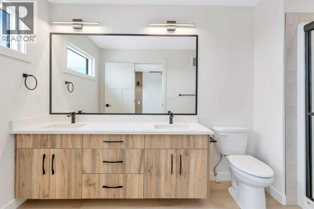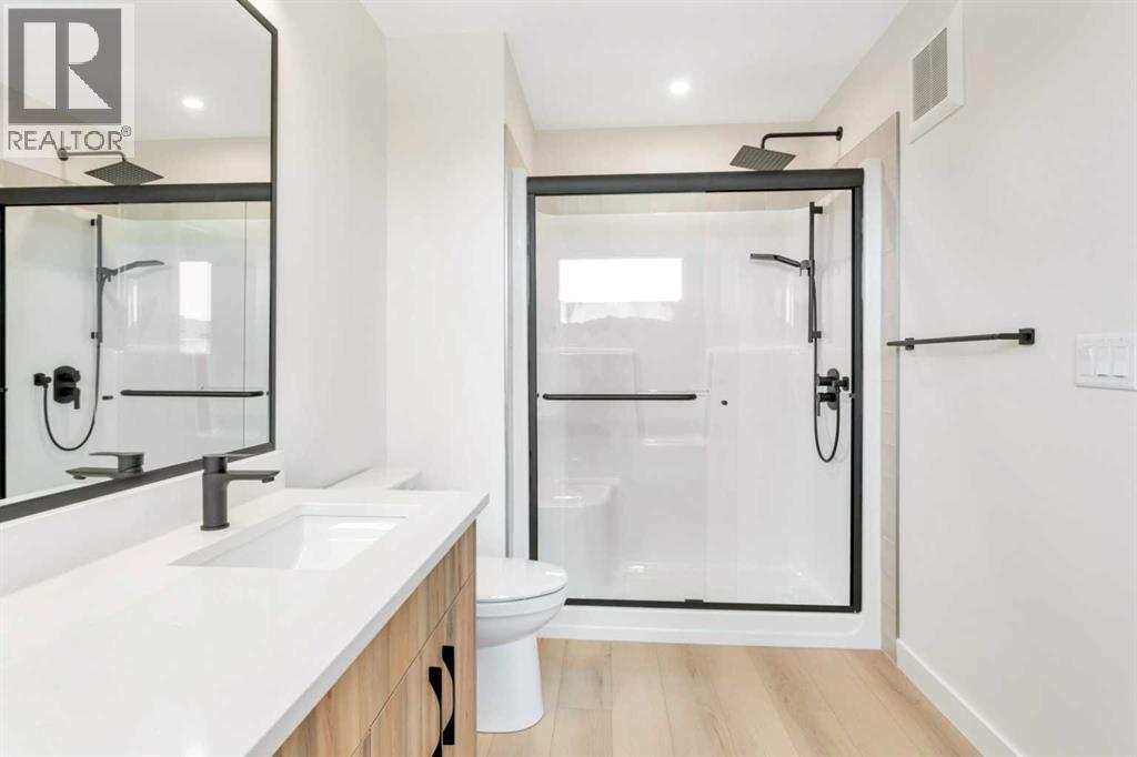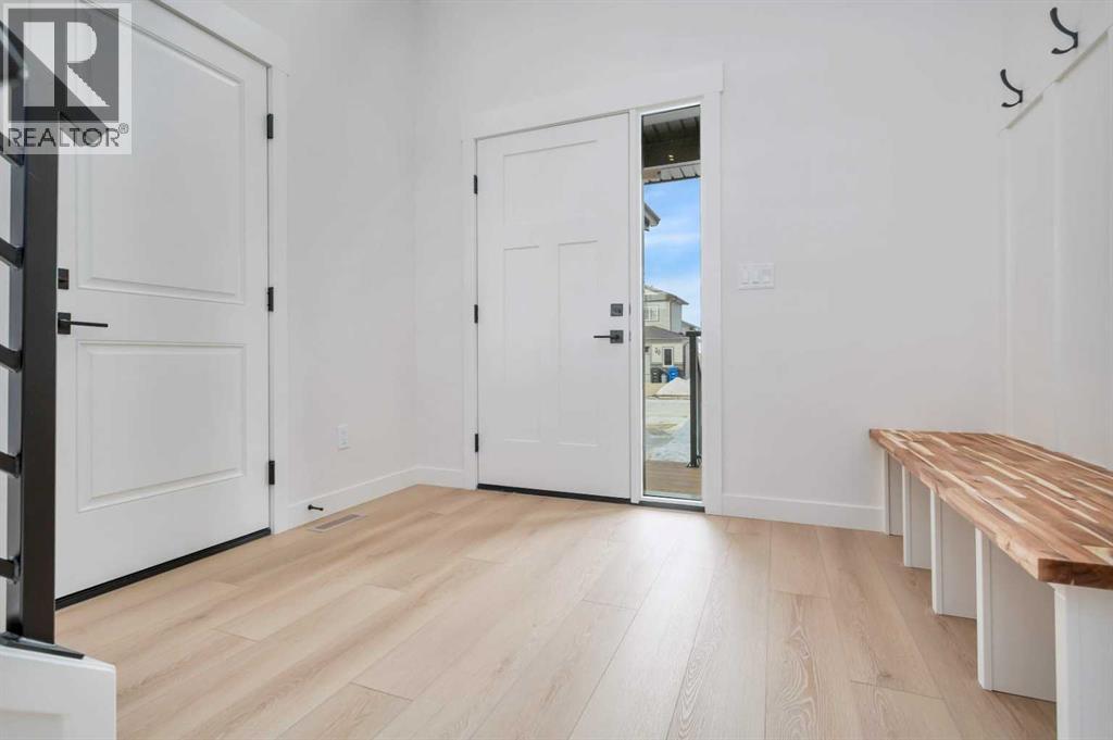 Welcome to 77 Maclean Close in McKay Ranch, Blackfalds. This 1,480 sq. ft. modified bi-level by Manhani Builders features a modern farmhouse design with quality finishes throughout. The open main floor offers a vaulted ceiling, large windows, and a spacious functional layout. The kitchen includes solid birch plywood cabinets, quartz countertops, and upgraded stainless steel appliances, along with a convenient main-floor laundry. The primary bedroom includes a walk-in closet and full ensuite. The 24 x 24 attached garage with an 18-foot door provides plenty of space. Enjoy the composite front porch and 12 x 10 back deck. The walk-out basement is roughed in for in-floor heat and future development. This home is equipped with a 75-gallon upgraded hot water tank, an energy-efficient furnace, and a heat recovery ventilation (HRV) system, providing enhanced comfort, improved indoor air quality, and long-term energy efficiency. Backed by a 10-year Progressive Home Warranty. This home is ready for possession, with front landscaping to be completed in the spring. (id:49203)