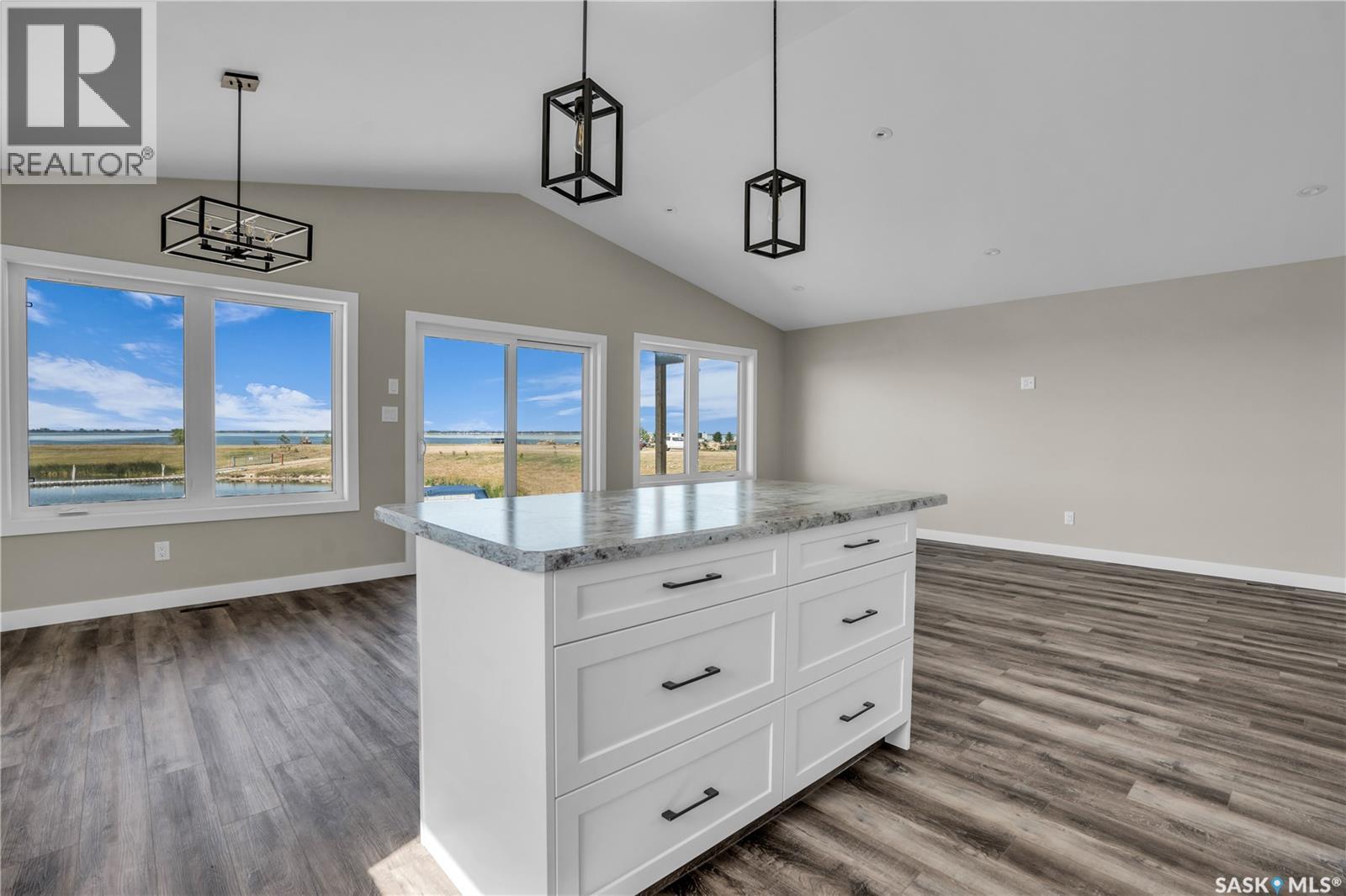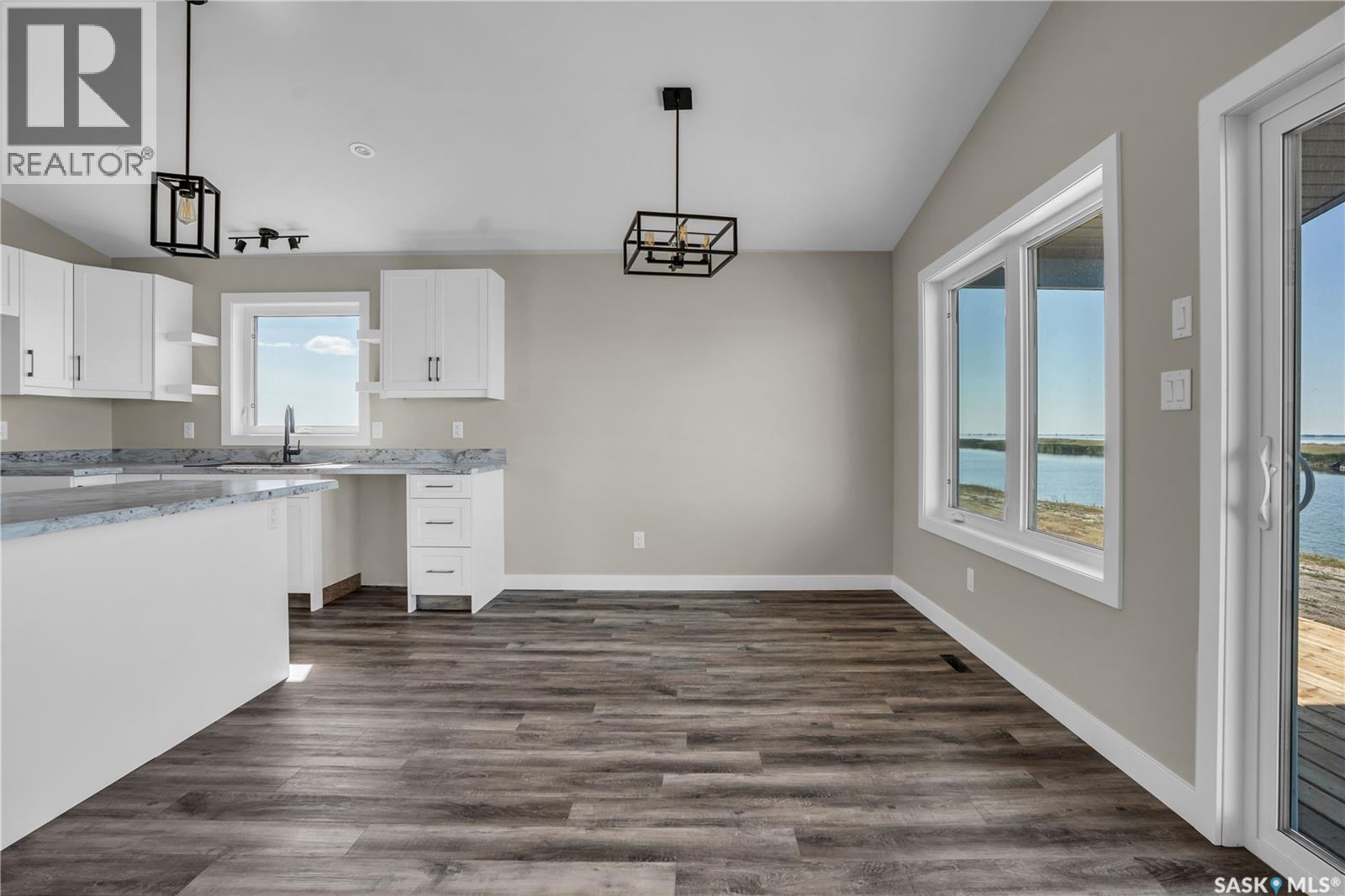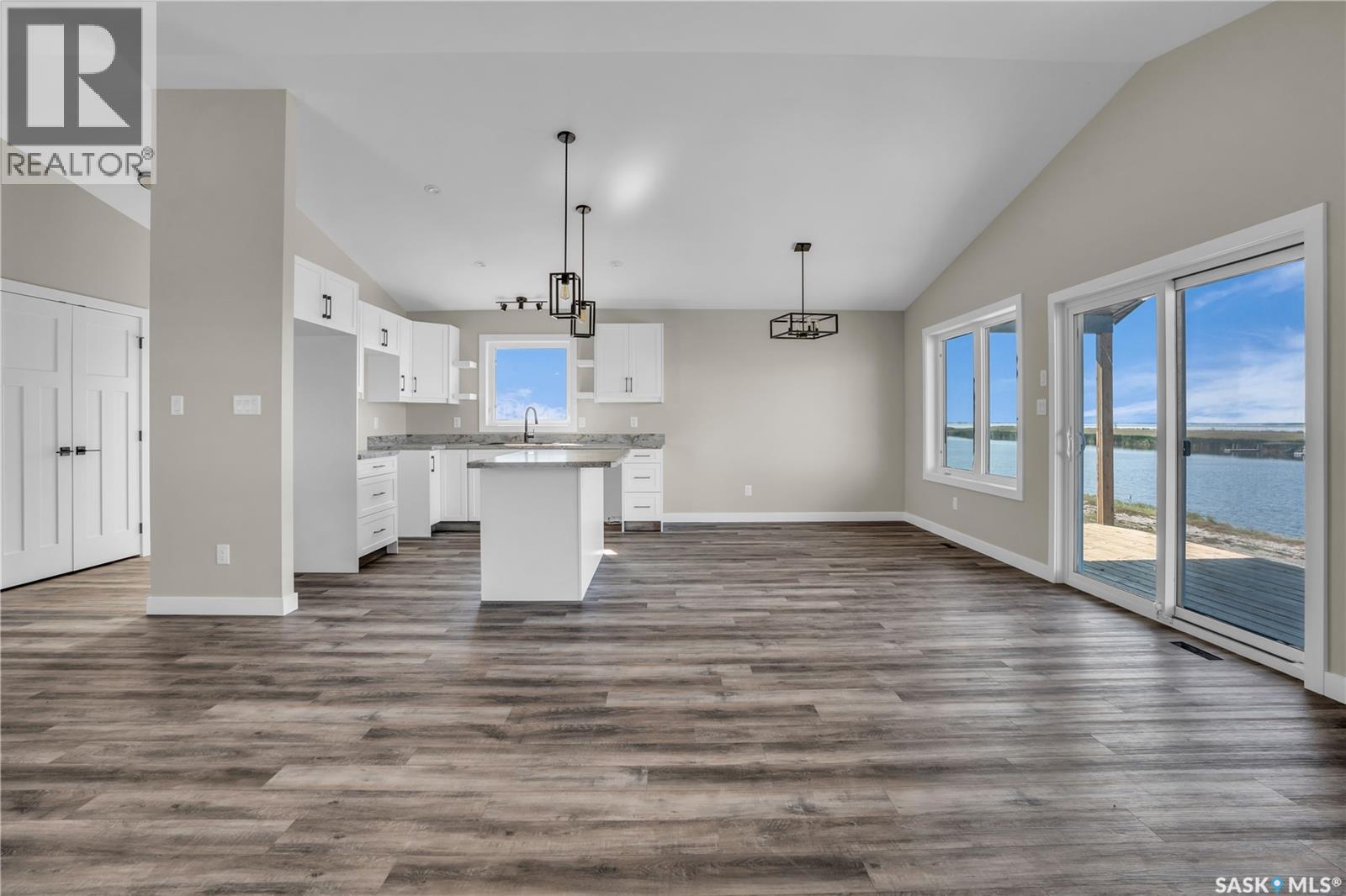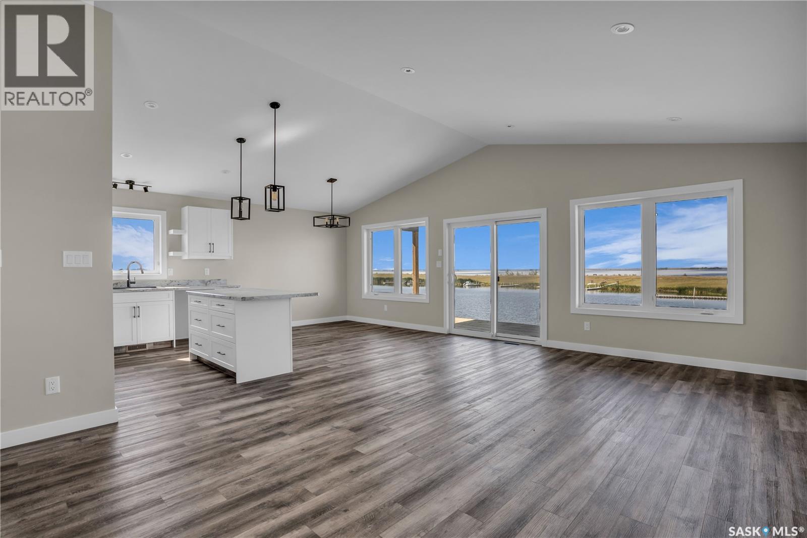 Offered at $528,800 this four-season Marina Lot bungalow is now ready for possession. You still have time to enjoy some summer at the lake this year! The price is plus GST and PST. It is possible the house will qualify for both a GST and PST reduction. Located at Sunset Acres Resort on the east shore of Last Mountain Lake, this development features a marina, 120’ concrete boat launch, a tree planting program, and a large beach area. The 1092 sq. ft. main floor features 2 bedrooms, 1 bathroom, and a huge open living space. The kitchen provides plenty of storage space. The waterfront side of the home features an impressive covered deck for a deck off of the main living space. Large windows provide sweeping views of the marina and lake beyond. This home will sit on a full concrete walk-out basement, with rough-in plumbing and ready for your personal development touch. There is plenty of space for additional bedrooms, a games room, office space, movie room, or whatever your lifestyle requires. A hi-efficient forced air natural gas furnace and water heater complete this level. With a large lot, 75’ x 269’ in size, there is plenty of room for a future garage. https://sunsetacres.com/ Contact your REALTOR® today for more information. (id:49203)