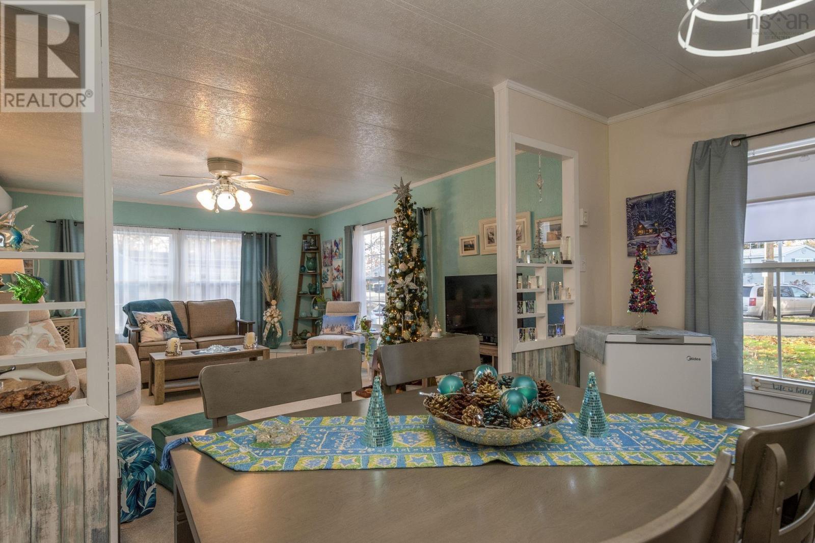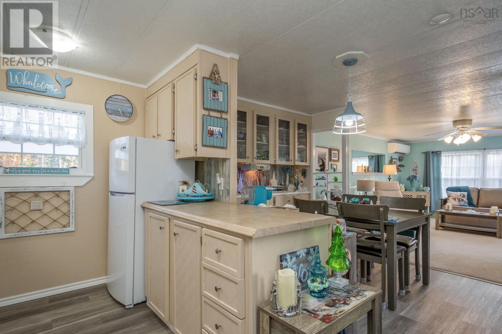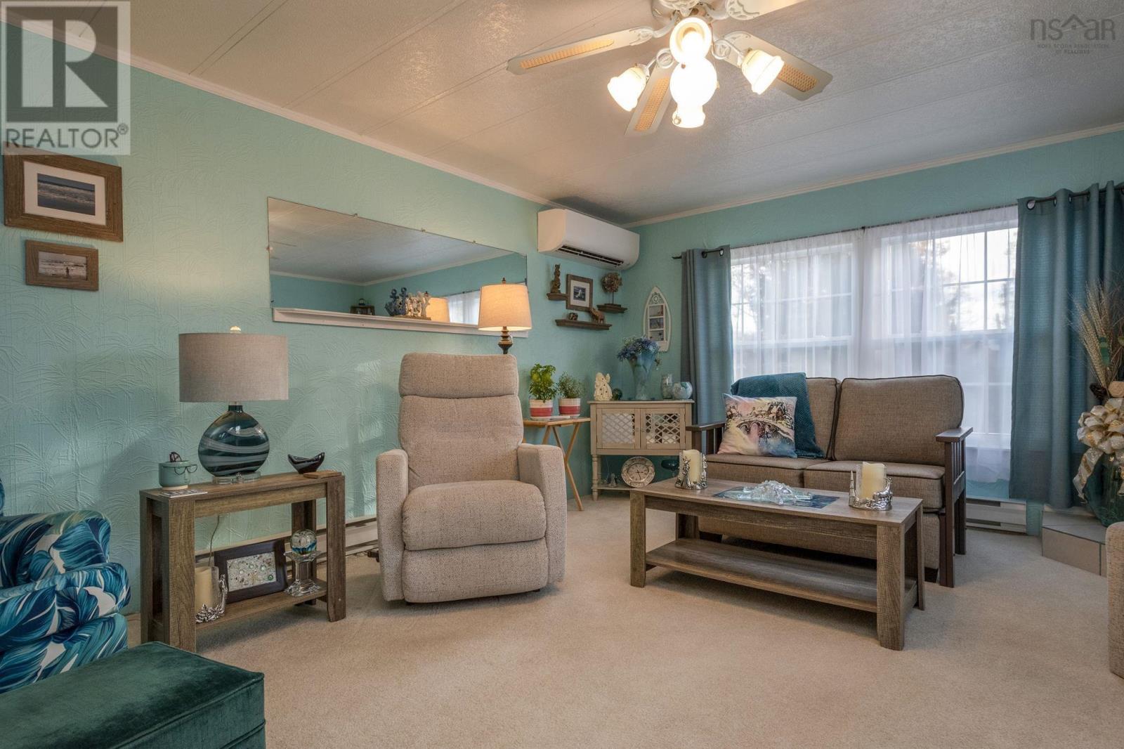 Move-In Ready for the Holidays in Desirable Parkwood Court Subdivision! Lovely maintained and absolutely move-in ready, this cozy 2-bedroom, 1-bathroom mini home is waiting for its new owner! Located in the highly sought-after Parkwood Court community, you'll benefit from a peaceful setting with quick, easy access to all the amenities in New Minas and Kentville, and Highway 101. This home has seen key upgrades, providing excellent peace of mind for years to come. A high-efficiency Heat Pump, new Hot Water Tank were installed just two years ago, ensuring year-round comfort and energy savings. The interior boasts new flooring, vinyl windows, and built in cabinets. Enjoy outdoor living on the deck, which features a gazebo attached, perfect for relaxing. Paved driveway, a shed that has a durable metal siding & newer skirting around the Mini Home. Roof was replaced 2013, all appliances included in purchase price. If you are looking for a dishwasher it is already plumbed for one. Book a viewing and be settled before Christmas! (id:49203)