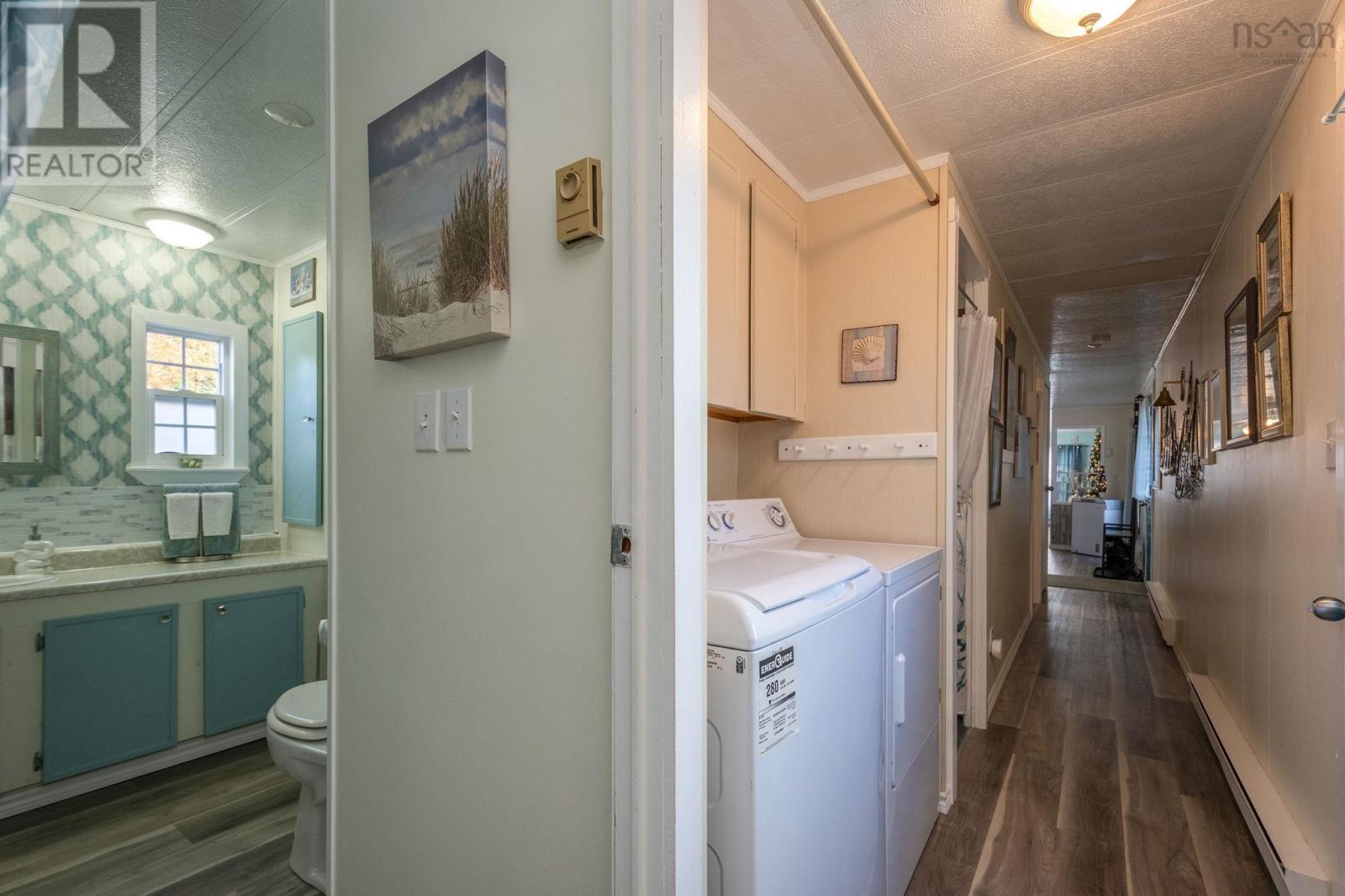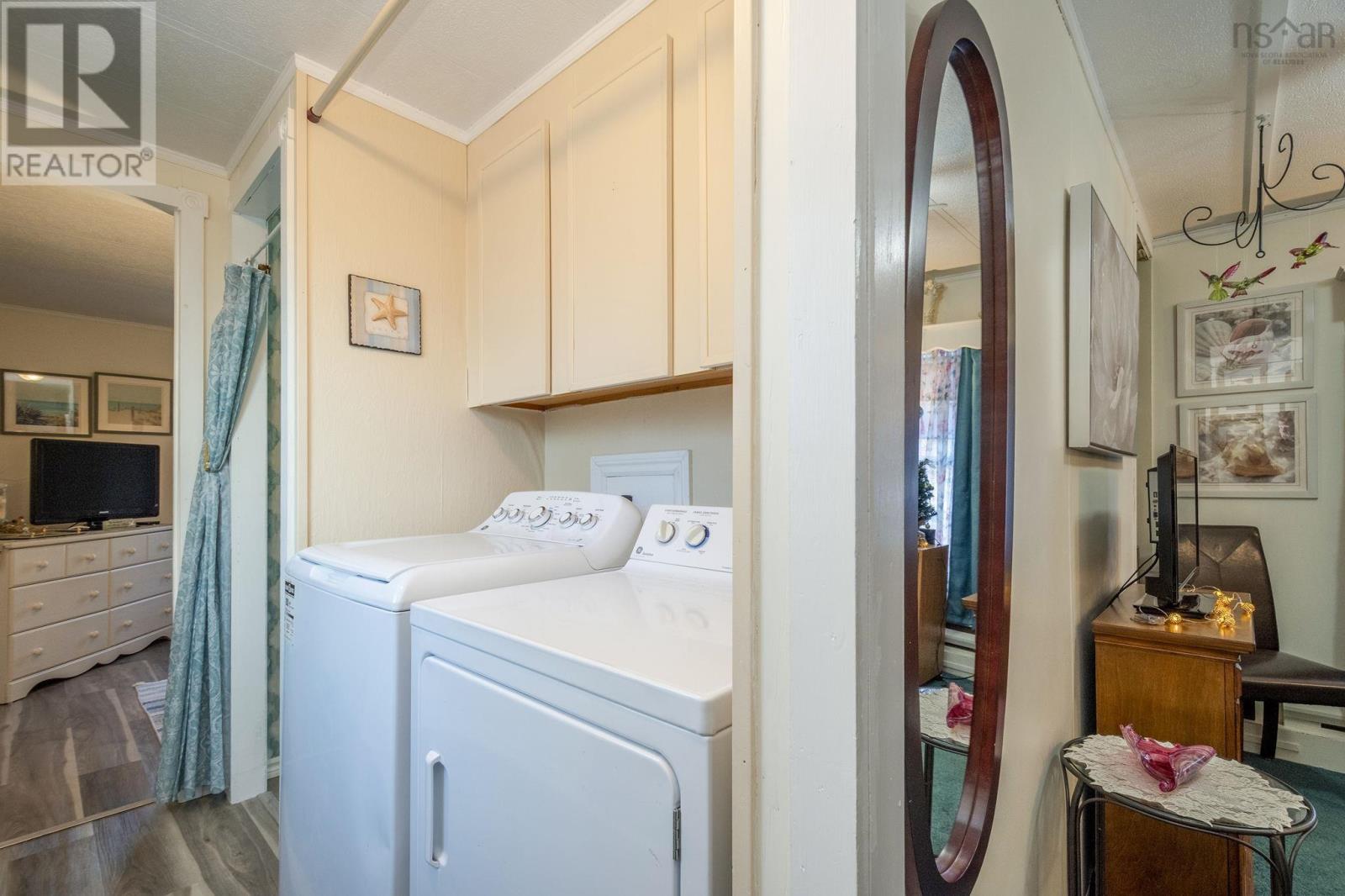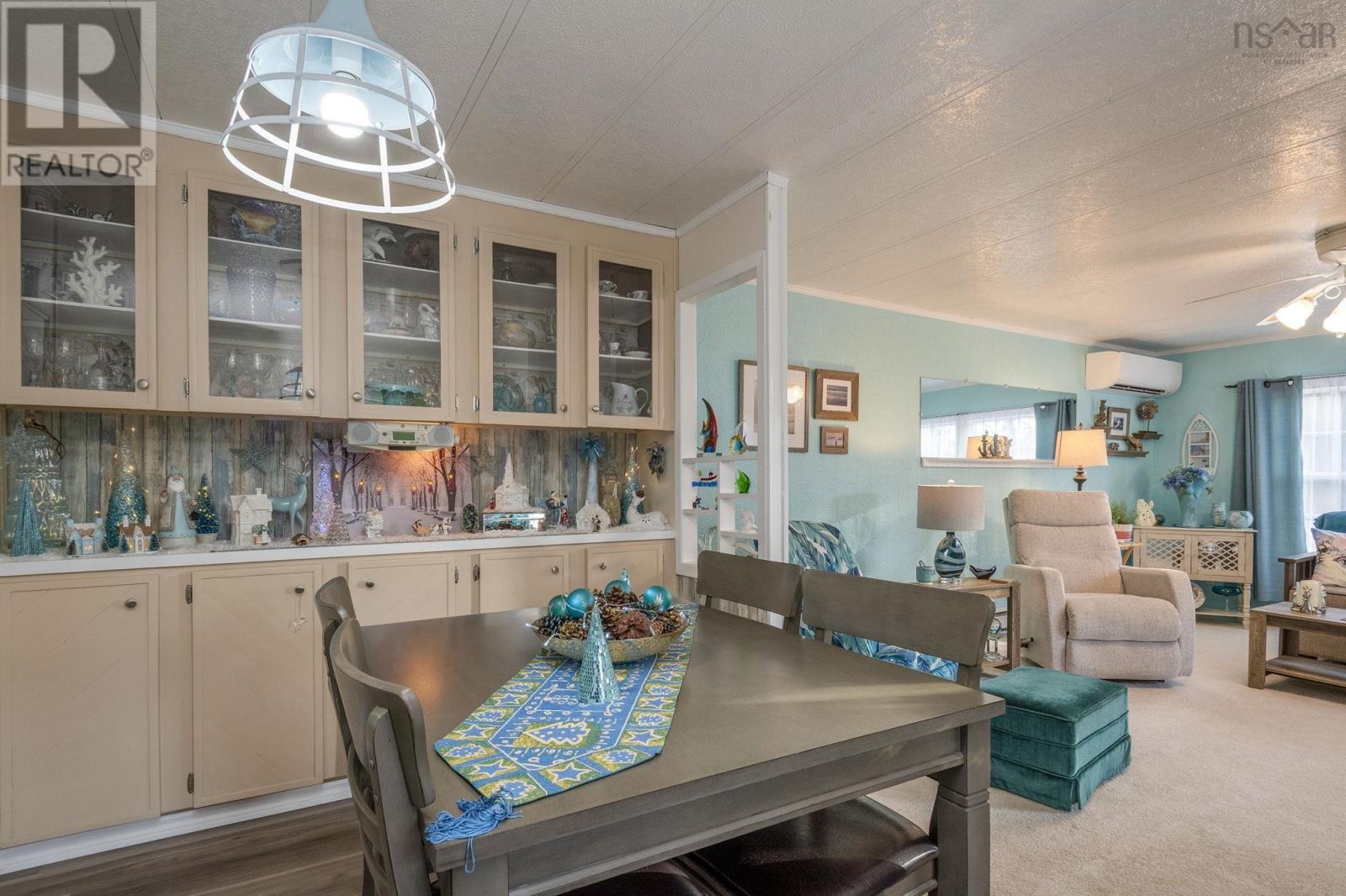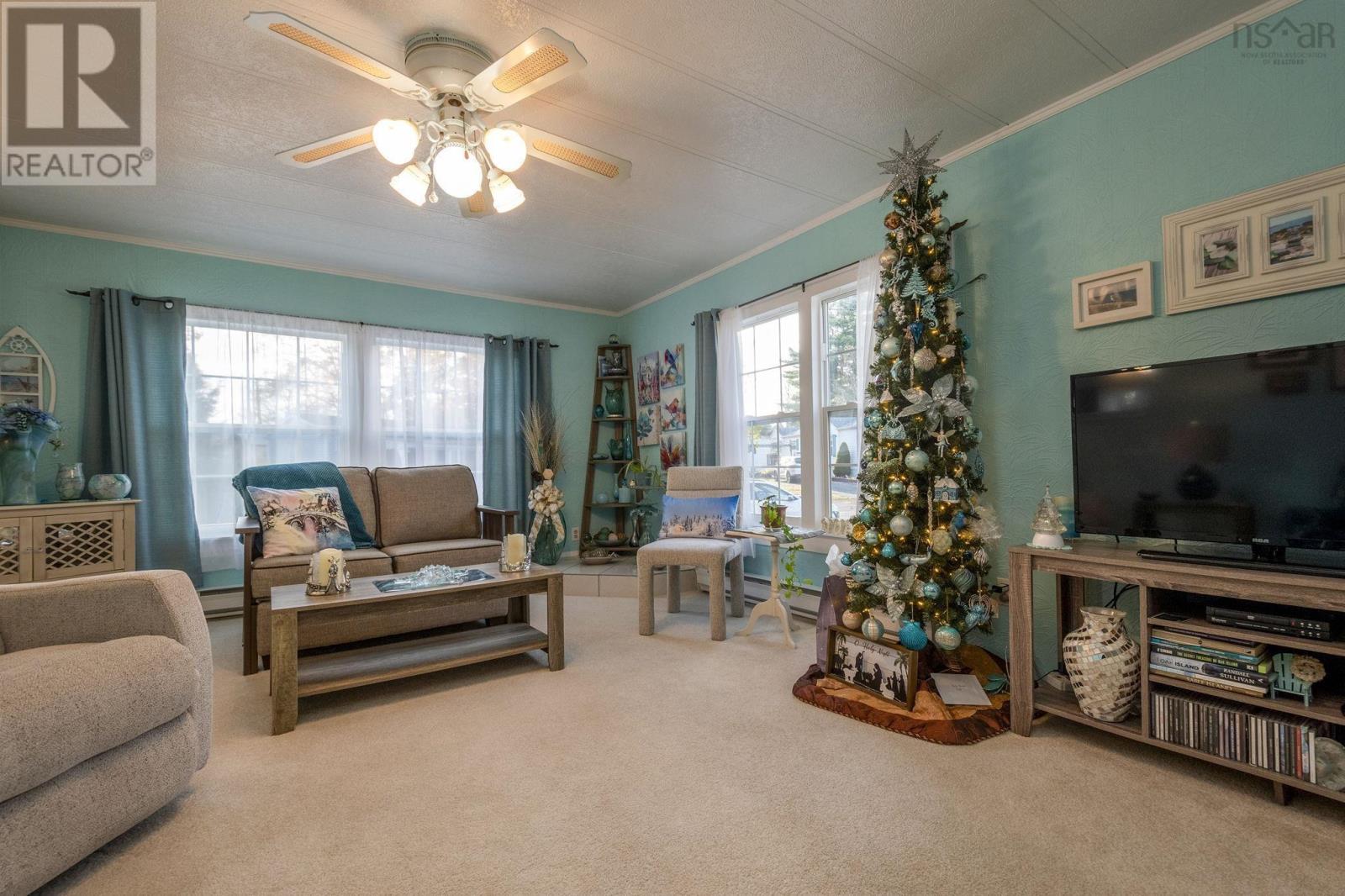 Move-In Ready for the Holidays in Desirable Parkwood Court Subdivision! Lovely maintained and absolutely move-in ready, this cozy 2-bedroom, 1-bathroom mini home is waiting for its new owner! Located in the highly sought-after Parkwood Court community, you'll benefit from a peaceful setting with quick, easy access to all the amenities in New Minas and Kentville, and Highway 101. This home has seen key upgrades, providing excellent peace of mind for years to come. A high-efficiency Heat Pump, new Hot Water Tank were installed just two years ago, ensuring year-round comfort and energy savings. The interior boasts new flooring, vinyl windows, and built in cabinets. Enjoy outdoor living on the deck, which features a gazebo attached, perfect for relaxing. Paved driveway, a shed that has a durable metal siding & newer skirting around the Mini Home. Roof was replaced 2013, all appliances included in purchase price. If you are looking for a dishwasher it is already plumbed for one. Book a viewing and be settled before Christmas! (id:49203)