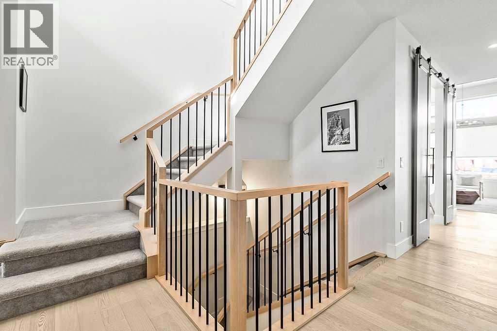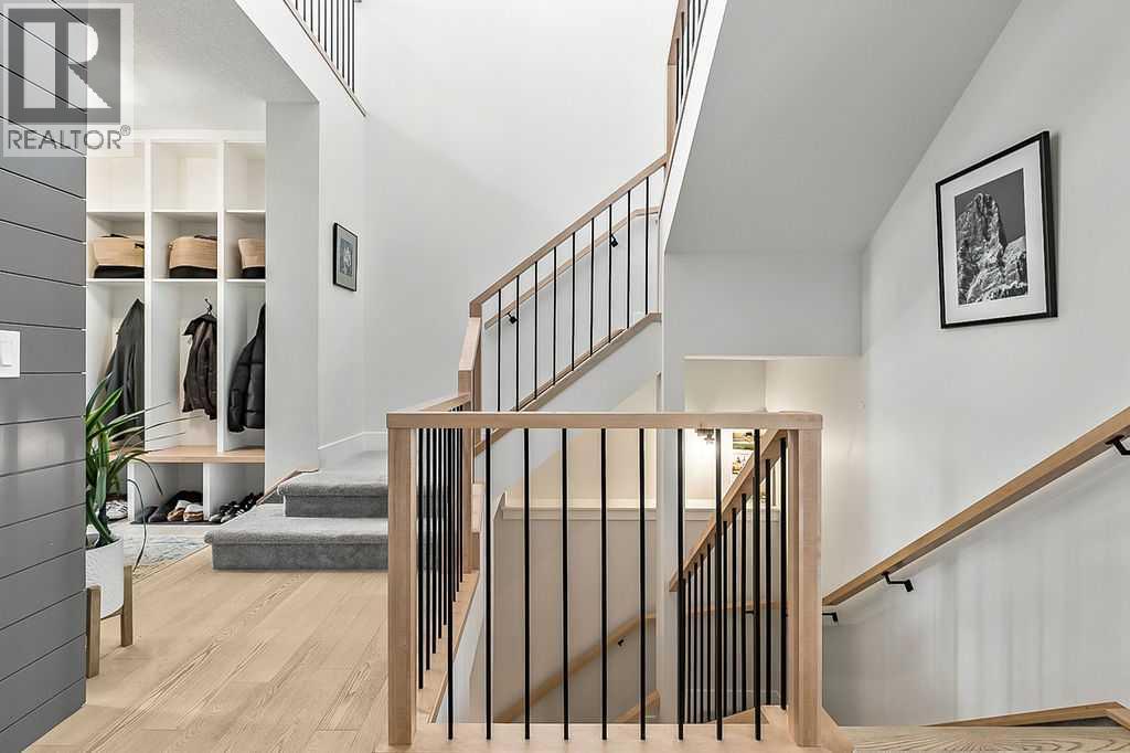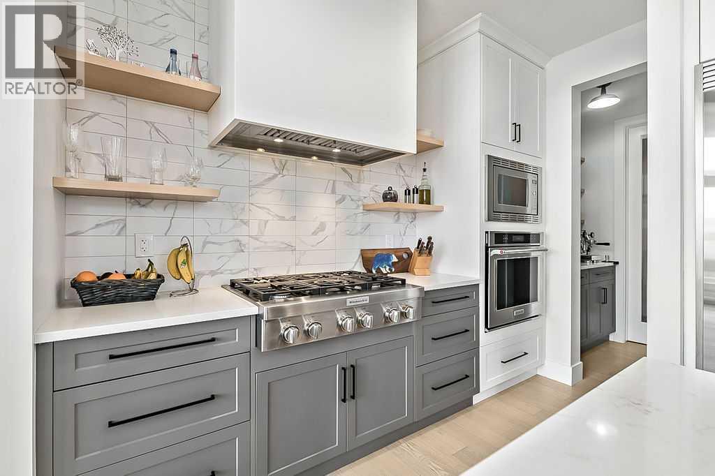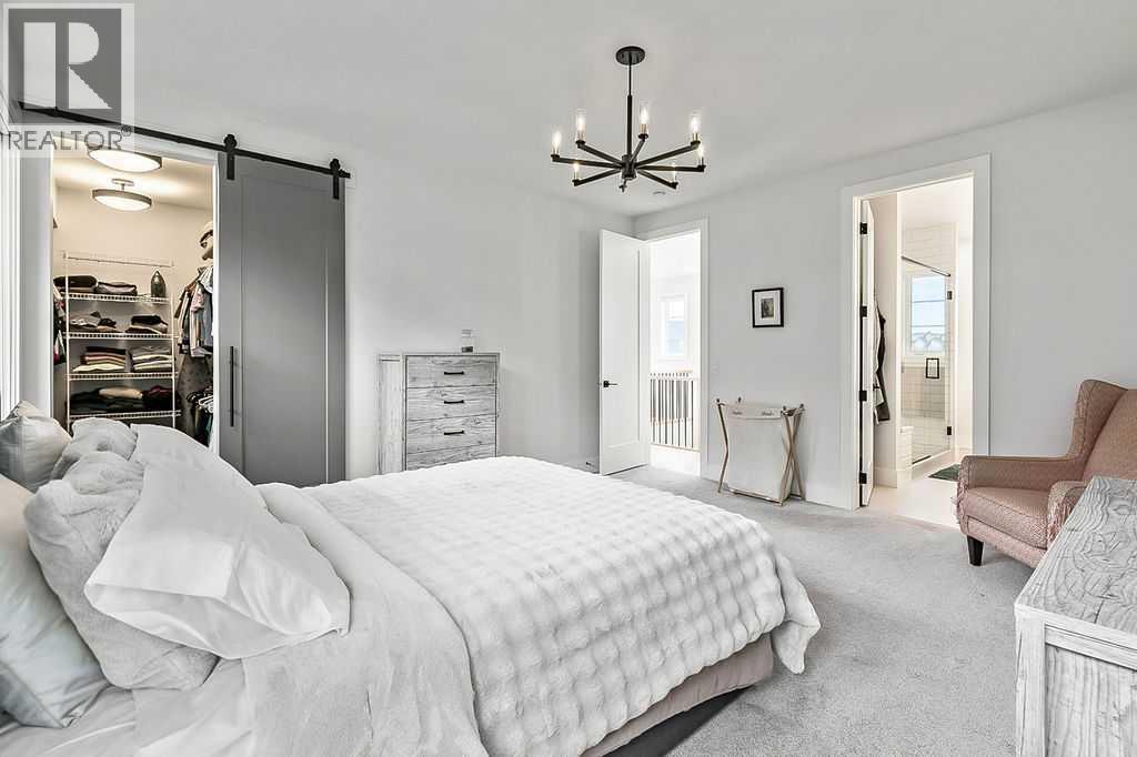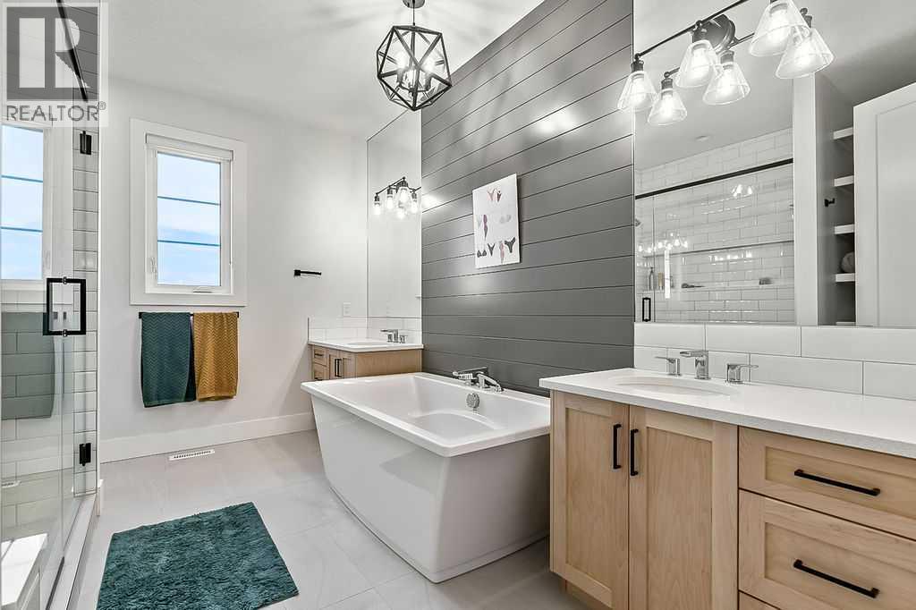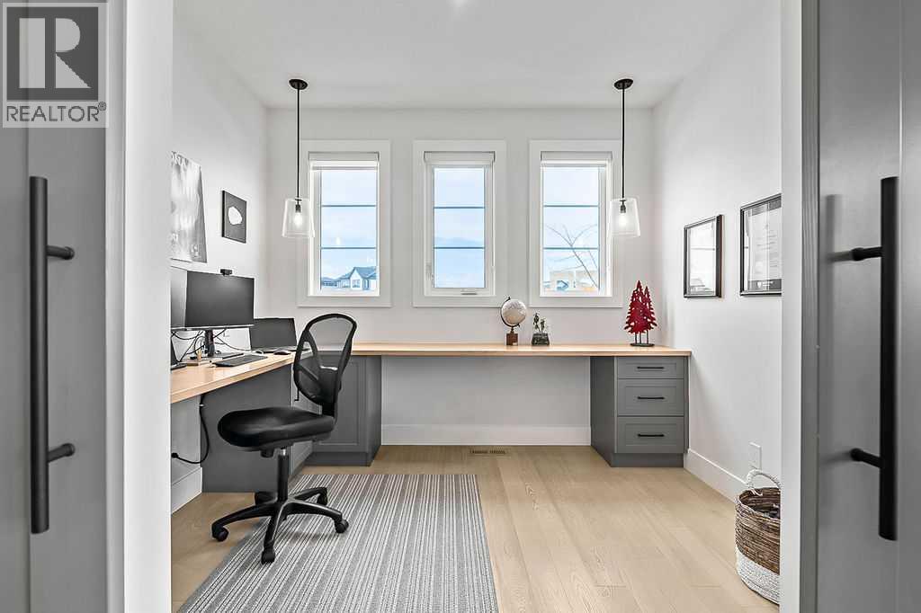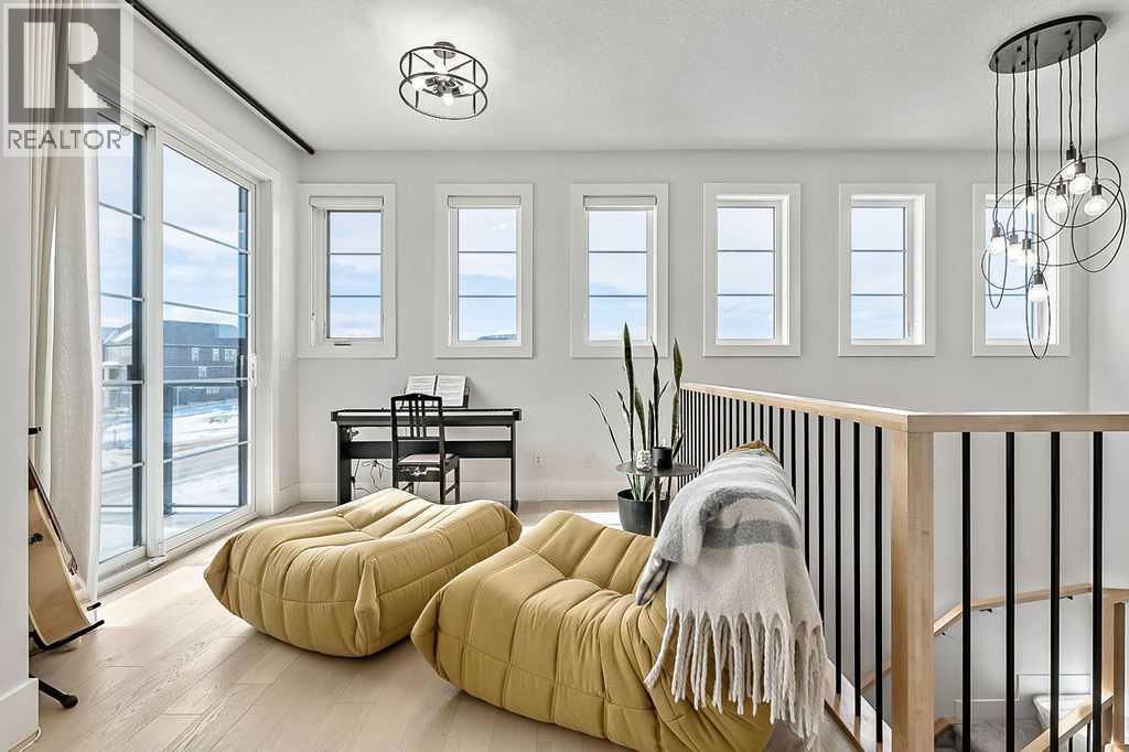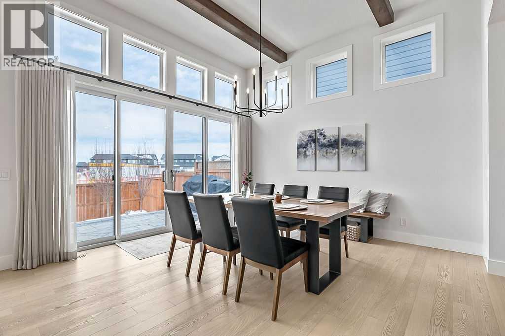 Exceptional residence on an OVERSIZED CORNER LOT WITH GORGEOUS LAKE VIEWS. Thoughtful professional design aspects and upgrades throughout the home result in 3,500 sq. ft. of beautiful developed space, including a fully finished basement. This is the ultimate family home designed for both everyday comfort and elevated entertaining. The open concept design seamlessly connects the living, dining and kitchen spaces and features walls of floor to ceiling windows that flood the home with natural light. The chef inspired kitchen is a true showpiece, featuring high end appliances including a double fridge/freezer, 6 burner gas cooktop, built-in oven, custom hood fan, walk-in pantry and an ultra convenient butler’s pantry. The spacious dining area opens through patio doors to a custom tiered stone patio, fully landscaped and fenced yard. The living room, complete with floor to ceiling 16’ stone fireplace, beamed ceiling, STUNNING WINDOWSCAPING and built-in window seating is sure to create memories with family and friends. A main floor office provides ample space for a work from home set up, while the front entrance features built-in hanging and storage compartments to keep busy family life organized. Upstairs, an open loft with a full wall of windows and patio doors leads to a private BALCONY OVERLOOKING THE LAKE - an ideal retreat for morning coffee or evening relaxation. The primary suite offers an elegant ensuite with dual vanities, a stand alone soaker tub and a generously sized walk in shower with dual shower heads, creating a serene, zen like escape. The secondary bedrooms are equally charming, each featuring cozy built-in window seats. The main bath has an extra long double vanity with abundant storage. The fully developed basement continues the home’s thoughtful design, featuring a spacious family room with a fireplace feature wall, built-in over sized wet bar with sink and beverage fridge, a fourth bedroom, full bathroom and a laundry room - perfect for guests, teens, or multi-generational living. This perfect family home also has a heated double garage as an added bonus. Harmony is an exceptional award winning community with two private lakes, a Phil Mickelson world class golf course, miles of biking and walking trails, greenspace, easy access to downtown Calgary and the Rocky Mountains. (id:49203)