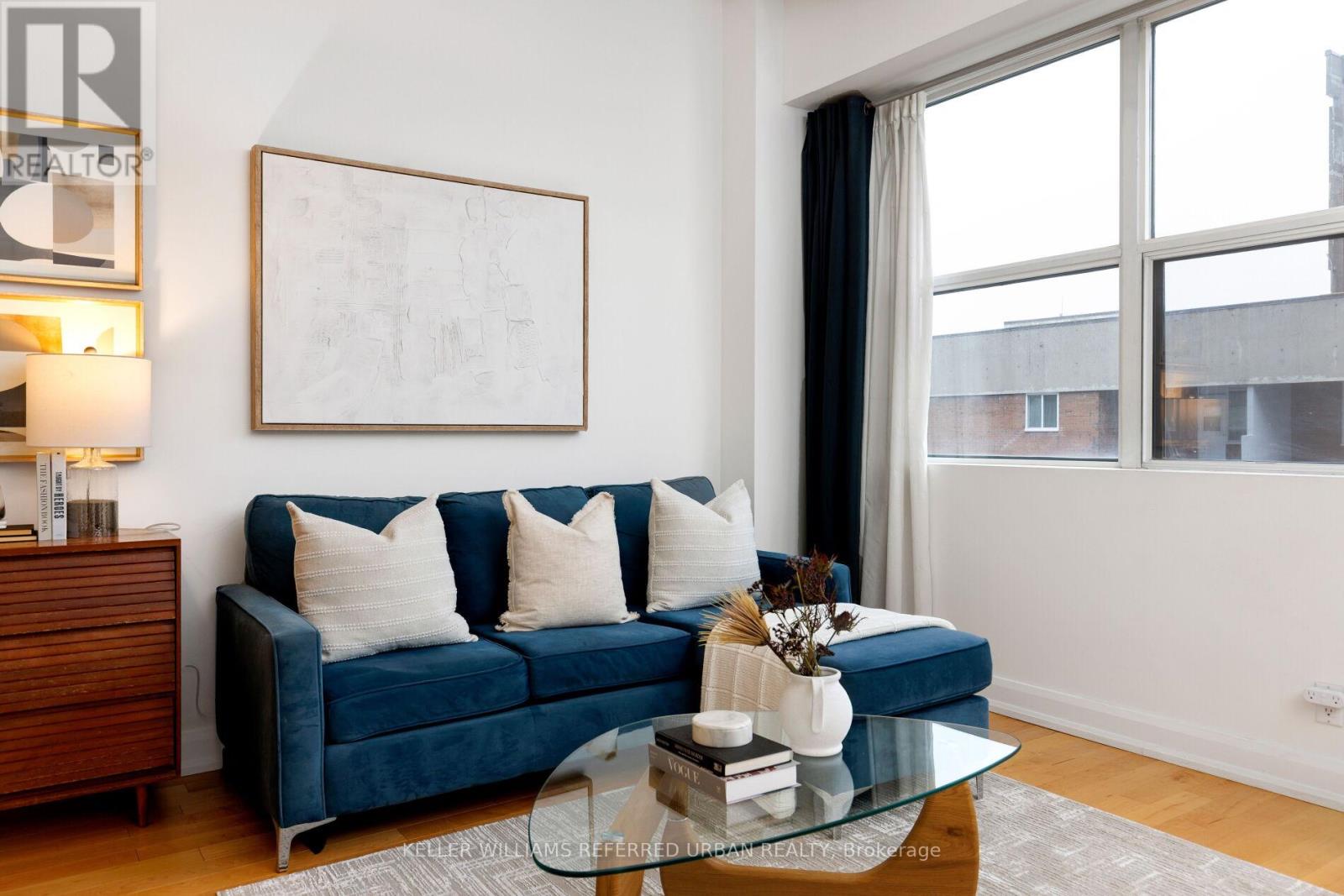 Welcome to the iconic Clock Tower Lofts, one of Toronto's most sought-after authentic loft conversions. This spacious 650sqft 1+1 bedroom suite showcases true industrial character with soaring 11-foot ceilings, exposed ductwork, oversized warehouse windows, and sliding barn-style doors that perfectly capture the building's heritage charm. Designed for both comfort and functionality, the open-concept living and dining area offers incredible flexibility for entertaining or relaxing at home. The oversized den is a true separate space - with doors - not just a nook - making it a dedicated home office, guest area, 2nd brdroom or creative studio. The generous primary bedroom features a full wall of closets and a 4-piece ensuite bath, delivering both convenience and privacy. Freshly updated Engineered Hardwood Flooring and brimming with potential, this loft blends authentic industrial aesthetics with modern livability. Ample in-suite storage is complemented by a large locker conveniently located on the same floor, and the rate bonus of parking adds even more everyday ease. Moving in is seamless with the service elevator located just steps away. Residents enjoy exceptional amenities including a fully equipped gym, party room, games room, visitor parking, and 24/7 concierge service - widely regarded as some of the friendliest and most professional in the city. The building's strong management and community feel truly set it apart. Positioned in vibrant King West, you're just steps from Toronto's best restaurants, cafes, boutiques, nightlife, and transit. The upcoming Ontario Line will introduce a new subway station at King & Bathurst, further enhancing connectivity and long-term value. Whether you're a first-time buyer, professional, or investor, this is your opportunity to own an authentic Toronto hard loft with character, space and unbeatable location! (id:49203)