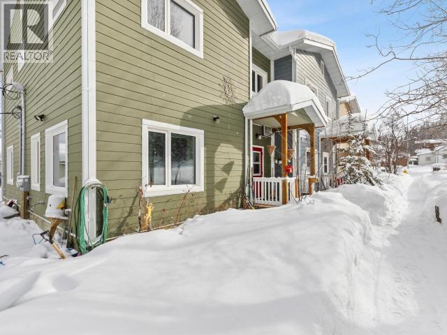 $306.61 MonthlyDiscover this super-green downtown townhouse featuring three generously sized bedrooms and one and a half baths. The main floor is graced with nine-foot ceilings, natural light and views of Cook Street Park and the clay cliffs that comprise the front yard of this tucked away downtown haven. Upstairs comprises three generous, whimsical bedrooms and an attractive tiled bathroom. Washer, dryer and fridge are under two years old. This super solid build "for the North" has exceptional insulation--R56 in the walls and R80 in the ceiling plus quadruple-glazed, argon-filled, low-e windows for maximum energy efficiency. Electric heat and lighting costs average only $318 per month. Condo fees are just over $300, with $100 allocated to the reserve fund. Ideally located on a greenbelt with hiking and biking trails right outside your door, this home is within walking distance of schools and shopping, offering the very best of downtown living. Don't let this one get away. (id:49203)