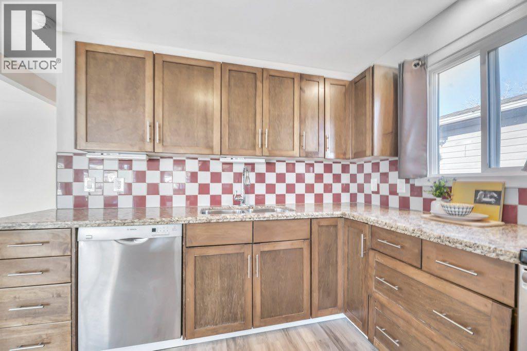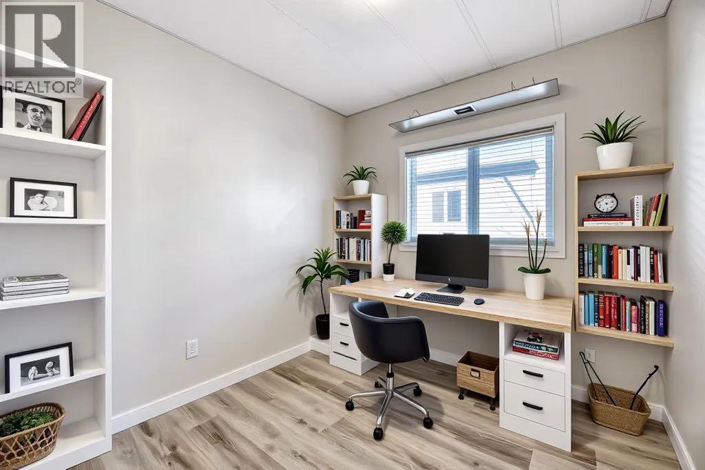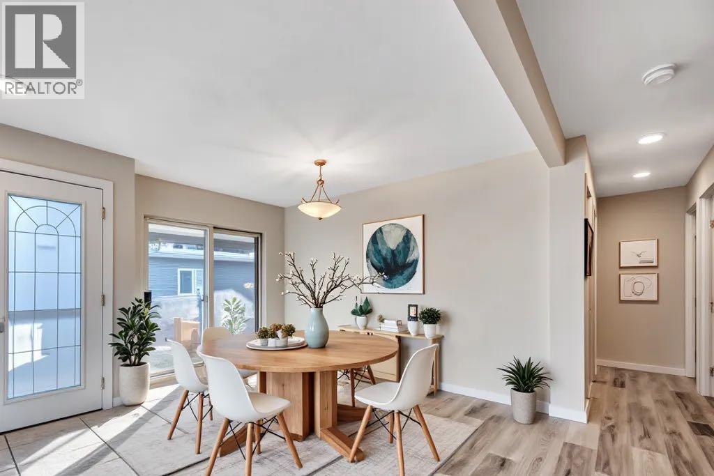 Think you can’t get an updated home with a fenced backyard, detached garage and a lake view in this price range?? Think again - this updated 2 bedroom home is spacious, open and absolutely bathed in natural light. The main living area is totally open concept with huge windows and there is newer luxury vinyl plank flooring throughout the whole home. You’ll feel inspired in this well equipped kitchen complete with stainless steel appliances, granite counters, cheery backsplash and a center island with extra seating. The 2 bedrooms are located at the end of the hall. The primary has popular sliding barn doors on the closet for a cozy farmhouse feel. The other bedroom is perfectly suited as a kids room or maybe a home office. A 3 pc bath with nice sized walk in shower is conveniently located close to the bedrooms but also easily accessed from the main living area for guests. The laundry room is nicely tucked to the side and offers an additional exterior door. Step out onto your side deck from the dining room where you’ll enjoy a view of Gray’s Lake. A fully fenced back yard comes with a covered patio area, 2 storage sheds and plenty of room for kids and pets to play. There is plenty of parking and a double gate leads to the single detached garage allowing for storage for a small RV if needed. The ceiling in the garage is super high creating the opportunity to add mezzanine storage. This terrific home is ideally located close to Brentwood Elementary School as well as the Strathmore Family Centre Arena and is just steps from Gray’s Park and its picturesque walking paths. If you’re looking for an affordable & adorable home in Strathmore don’t miss out on this little gem! (id:49203)