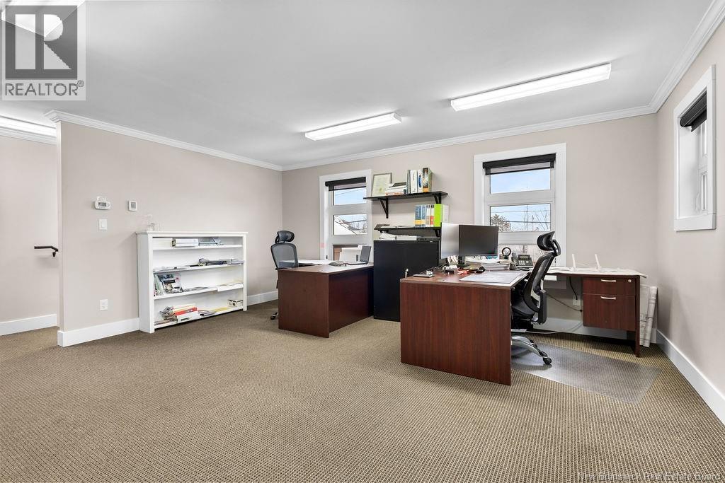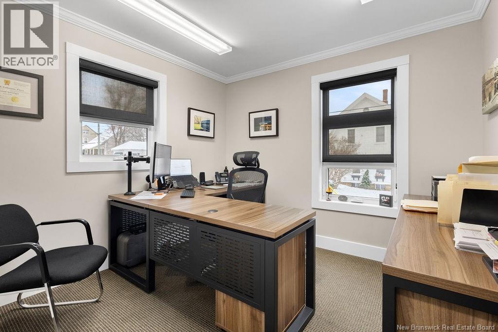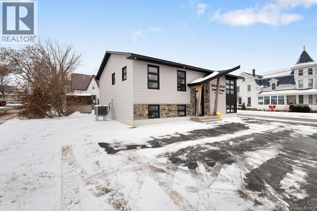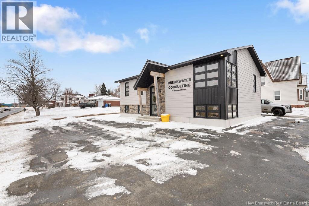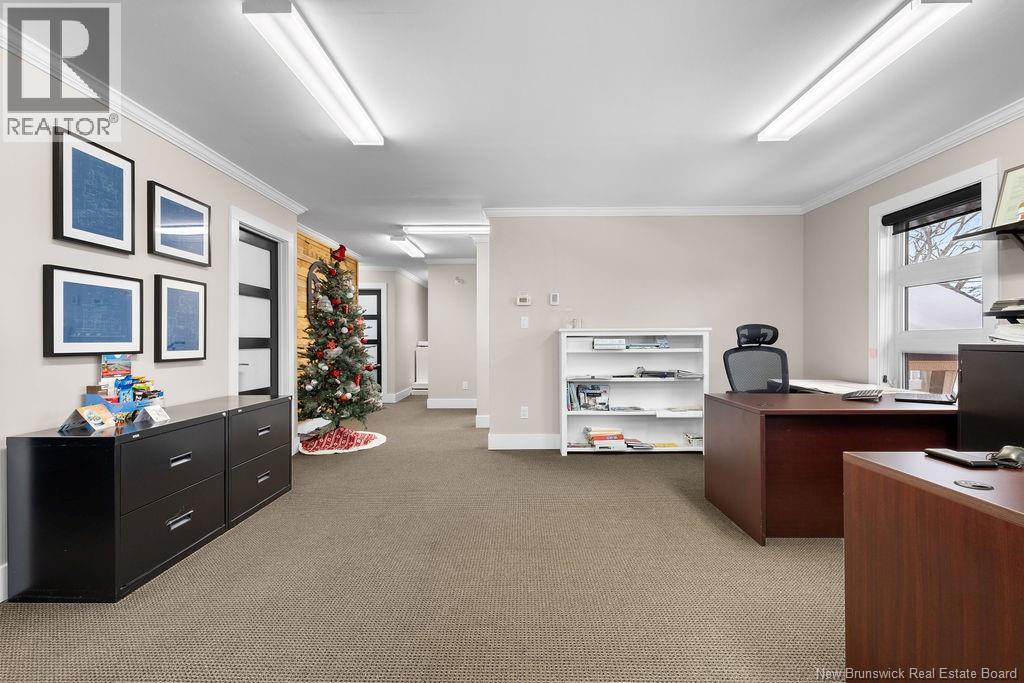 This two-level office building offers a modern, professional, and highly visible workspace in Newcastles charming, historic downtown business district. Located on a high-traffic street, close to all amenities and just minutes from the Miramichi River, this renovated (2021) property offers professional design and operational efficiency in a fully turnkey package. The upper level features three private offices, a storage/document area, a large open office space, and a spacious boardroom ideal for meetings, presentations, or collaborative work. The lower level includes open office space, a full kitchen and utility room. There are also two bathrooms, one on each level. Additional highlights include a contemporary exterior, paved parking, and plenty of windows throughout, creating a bright and inviting environment. Purpose-built for practical use with a modern aesthetic. Ideal for professional services, administrative offices, or creative businesses seeking a turnkey solution in a central location, this modern office space is ready to impress clients and support business growth from day one. (id:49203)