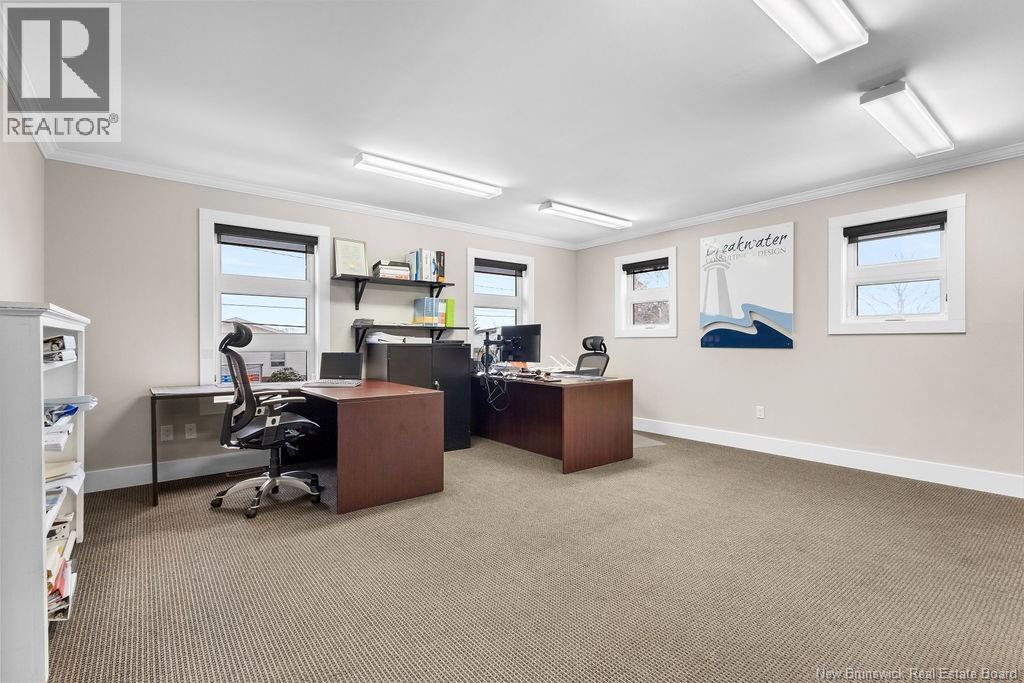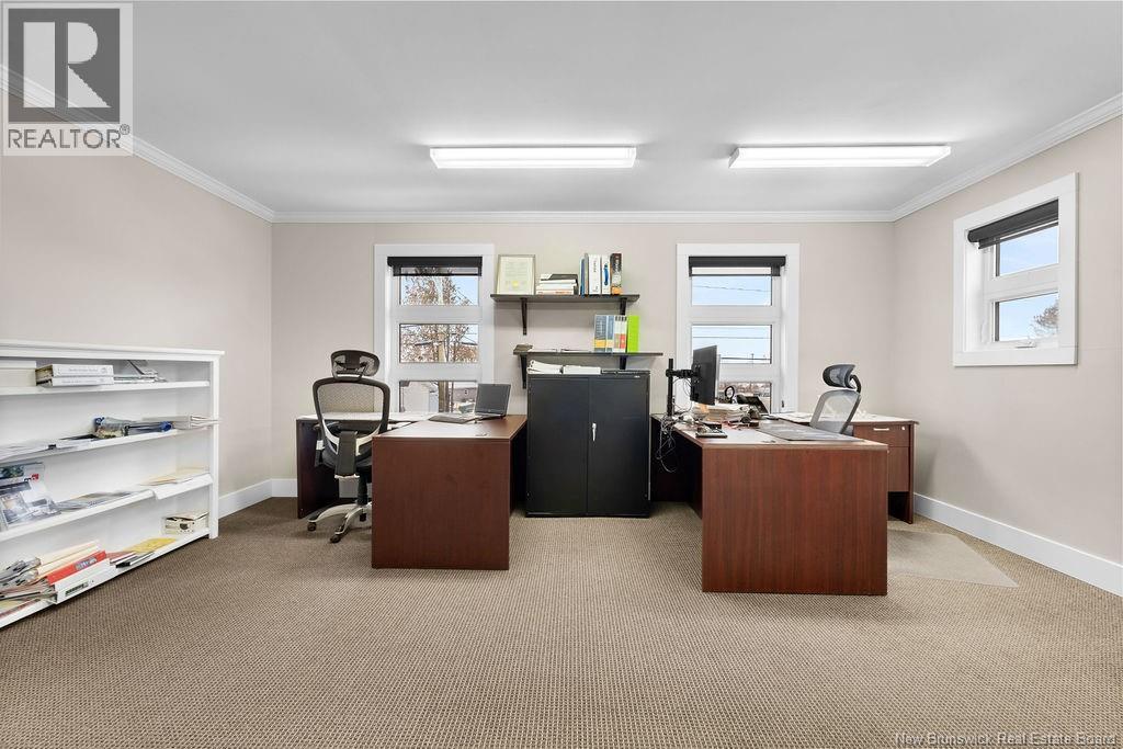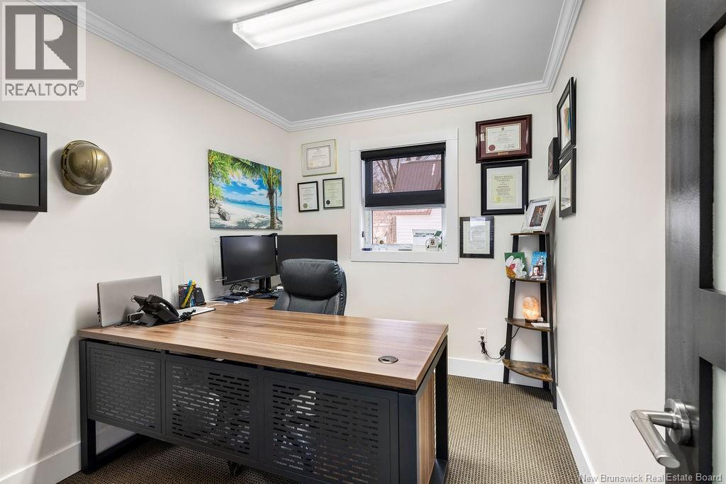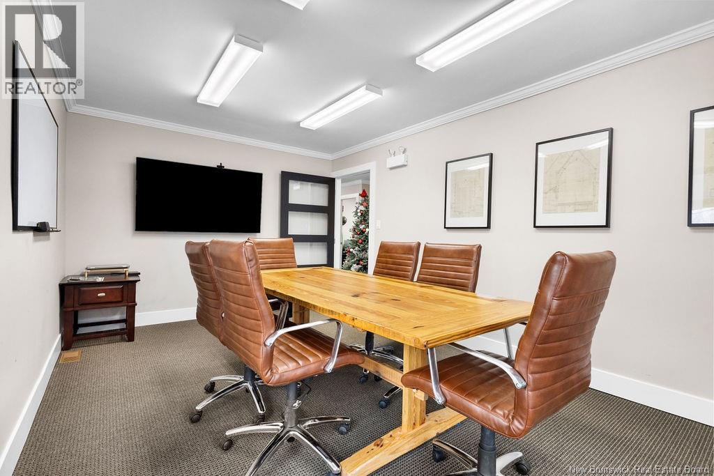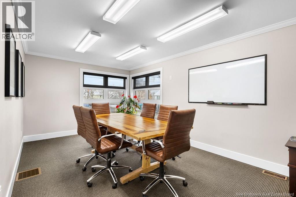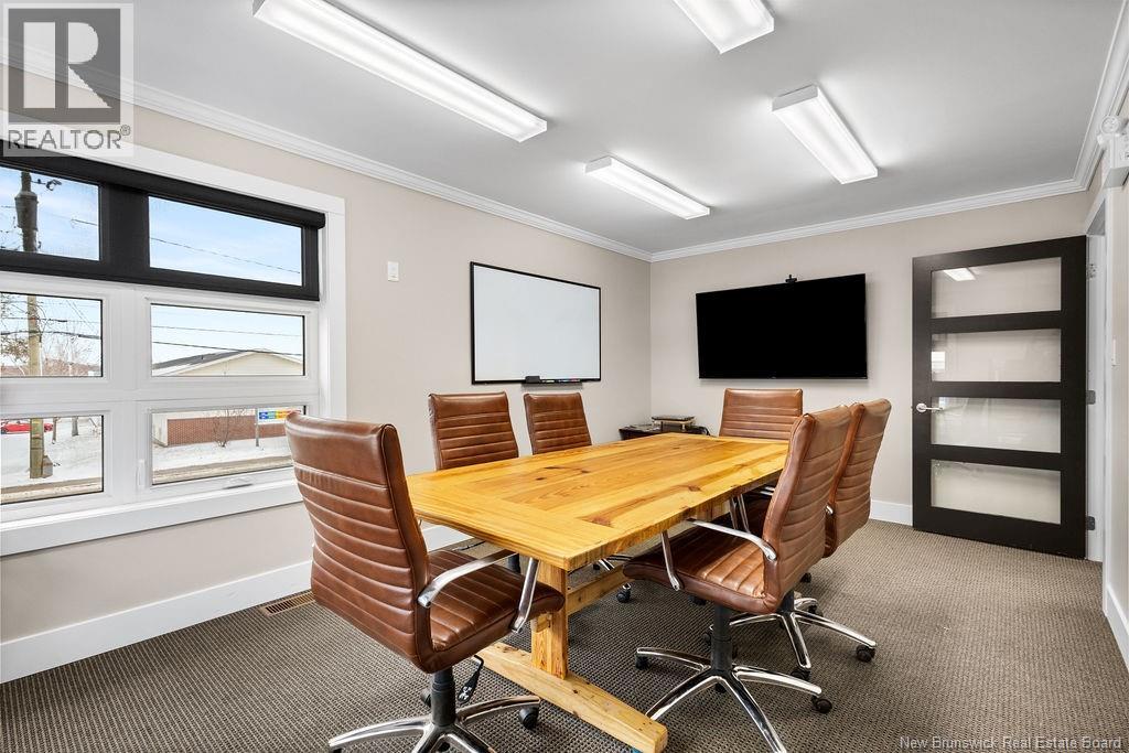This two-level office building offers a modern, professional, and highly visible workspace in Newcastles charming, historic downtown business district. Located on a high-traffic street, close to all amenities and just minutes from the Miramichi River, this renovated (2021) property offers professional design and operational efficiency in a fully turnkey package. The upper level features three private offices, a storage/document area, a large open office space, and a spacious boardroom ideal for meetings, presentations, or collaborative work. The lower level includes open office space, a full kitchen and utility room. There are also two bathrooms, one on each level. Additional highlights include a contemporary exterior, paved parking, and plenty of windows throughout, creating a bright and inviting environment. Purpose-built for practical use with a modern aesthetic. Ideal for professional services, administrative offices, or creative businesses seeking a turnkey solution in a central location, this modern office space is ready to impress clients and support business growth from day one. (id:49203)