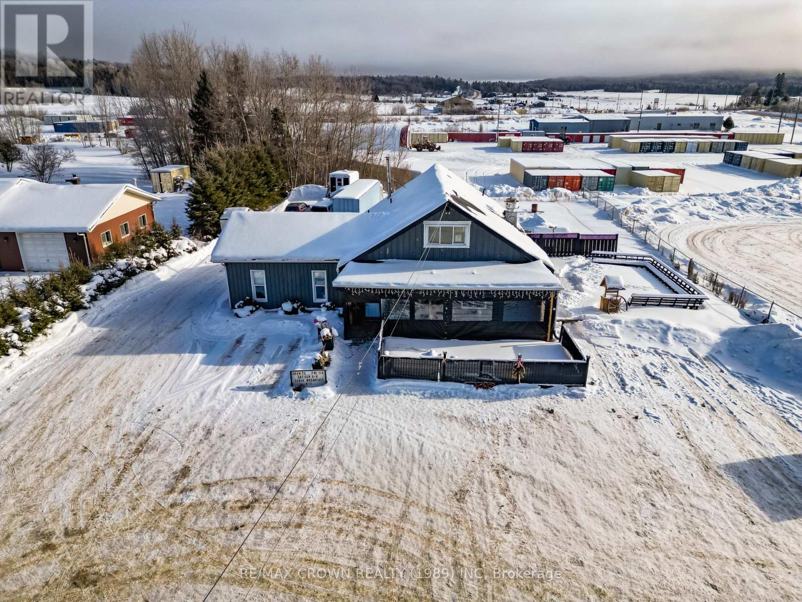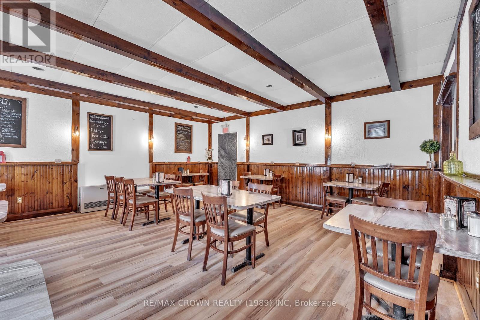 The Wagon Wheel Restaurant is a well-established, full-service dining operation located in Powassan, offering a turnkey opportunity that includes the land, building, and active business. This is a rare opportunity to acquire a recognized and proven restaurant with a strong history in the community. The property holds a valid liquor license and accommodates approximately 109 guests, with 50 interior seat sand 59 on the outdoor patio. The layout is functional and welcoming, supported by a fully equipped commercial kitchen, and is appropriately zoned for continued restaurant use. The Wagon Wheel has built a respected reputation for consistent food quality, friendly service, and dependable home-style dining. It attracts a steady customer base of local residents, surrounding rural communities, cottage owners, and Highway 11 travelers. With an established digital presence, strong reviews, and long-standing community recognition, this offering represents a stable and well-positioned investment opportunity with continued upside potential. VTB financing may be available for qualified buyers. (id:49203)