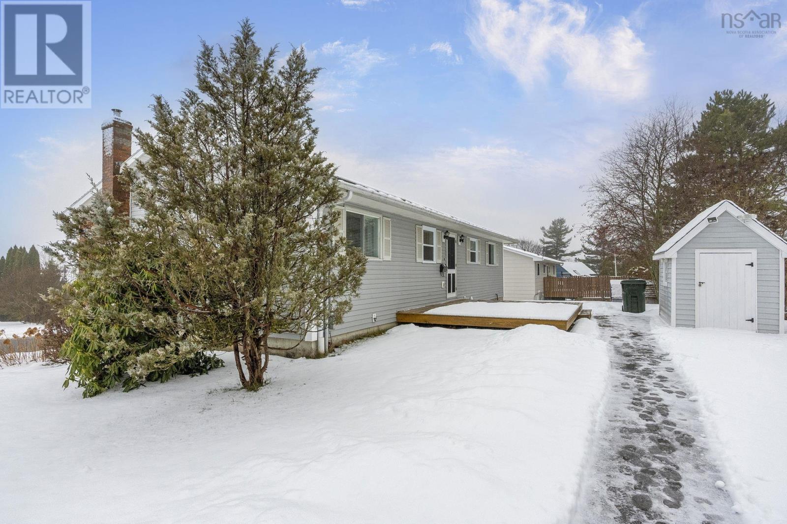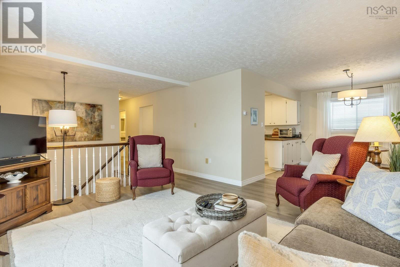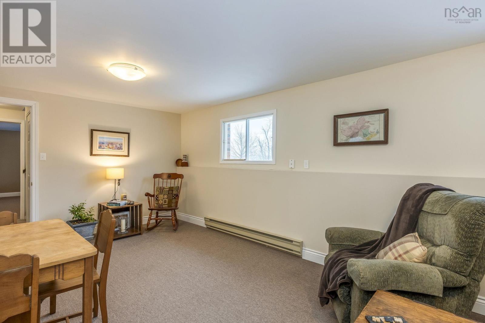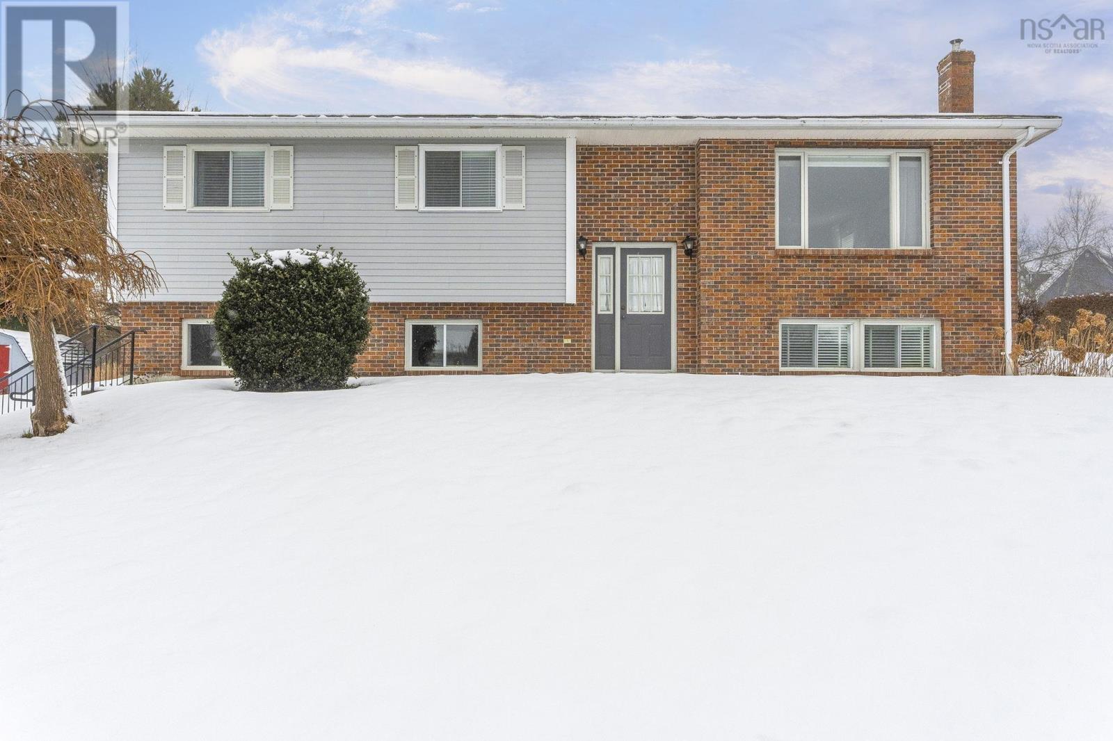 This lovely home is well maintained and move-in ready, with lots of possibilities! Main-level living attainable with back entrance at grade. This floor offers convenient laundry closet, an open kitchen (complete with appliances), dining area and bright living room, with an economical heat pump. Down the hall, two bedrooms and the primary, with direct access to the main bath. Downstairs has a generous rec room (gravity-fed oil stove disconnected/oil tank removed but could easily be reconnected or switched to wood or gas), a bathroom, plenty of storage space and another bedroom/den/office with walkout at grade and separate paved drive - ideal for an in-law/guest suite! Recently painted throughout, new flooring, most windows replaced, chimney repointed (2025), heat pump (2 yrs), siding (8 yrs), custom blinds, Hot Water Heater (2 yrs-wrapped) and more. Lovely, mature landscaping, easily maintained with inground irrigation. Great location, just minutes from Valley Regional Hospital, NSCC, schools, parks, and local amenities, this property should be on your list! (id:49203)