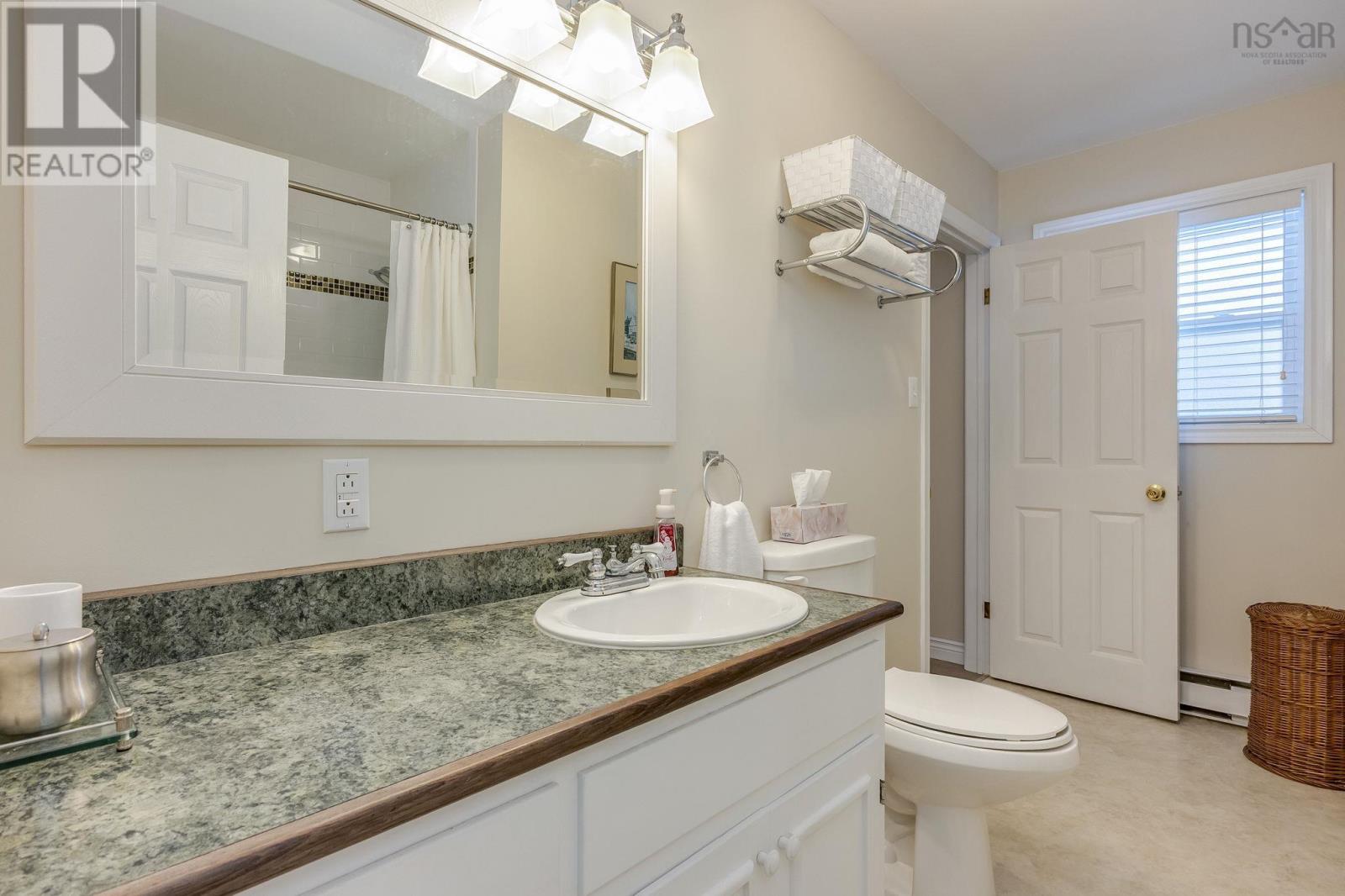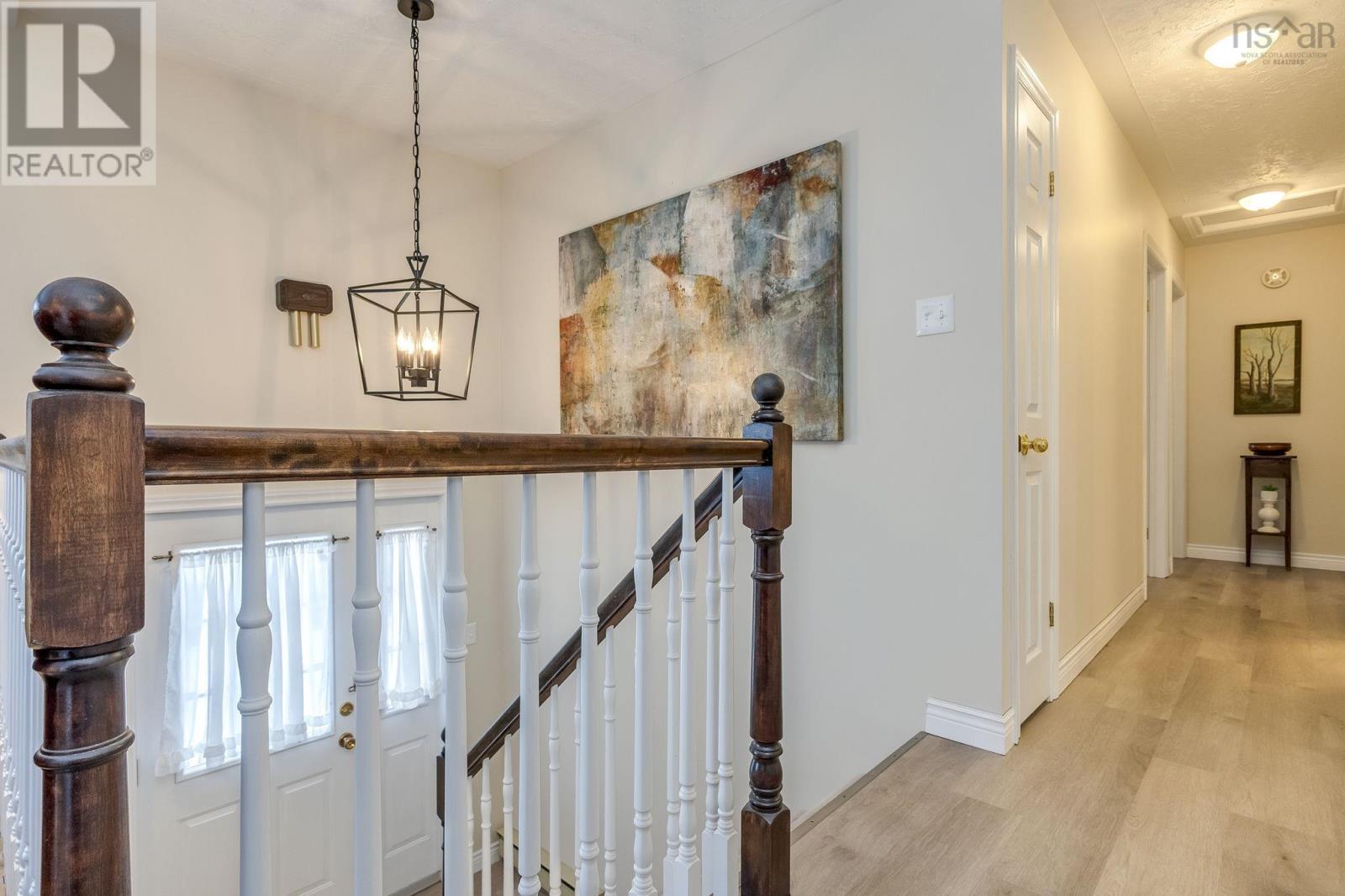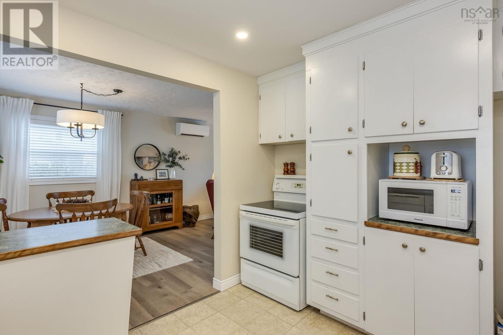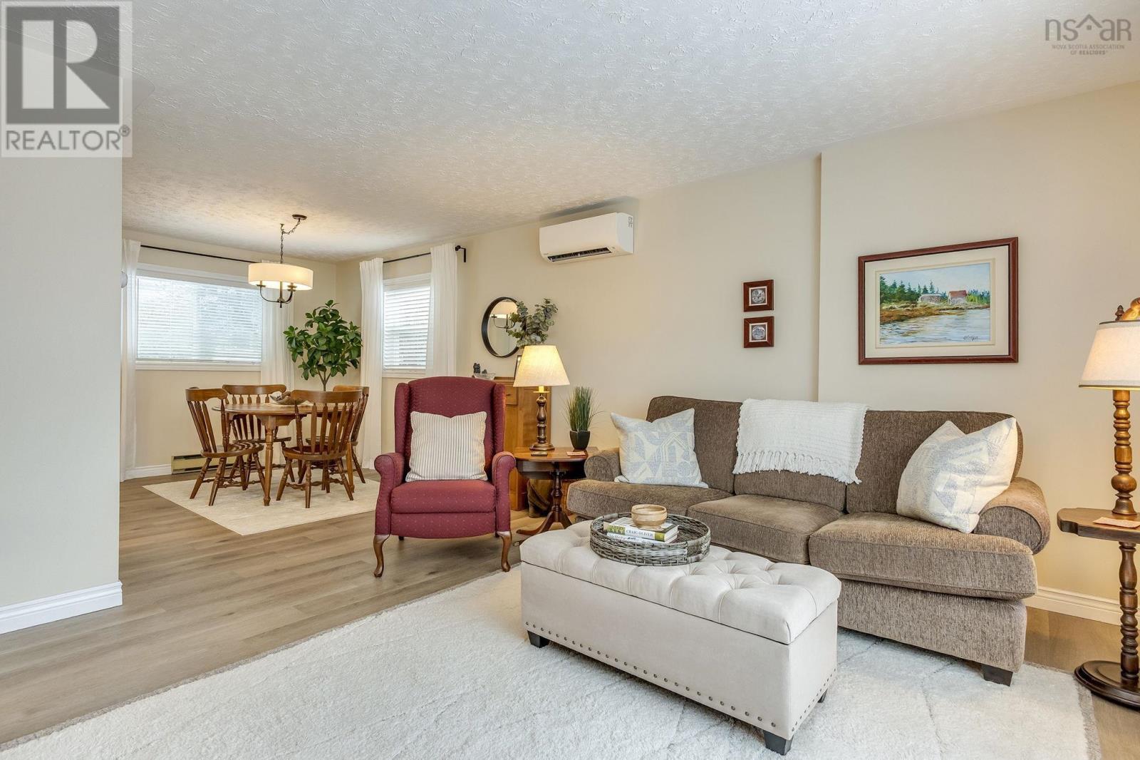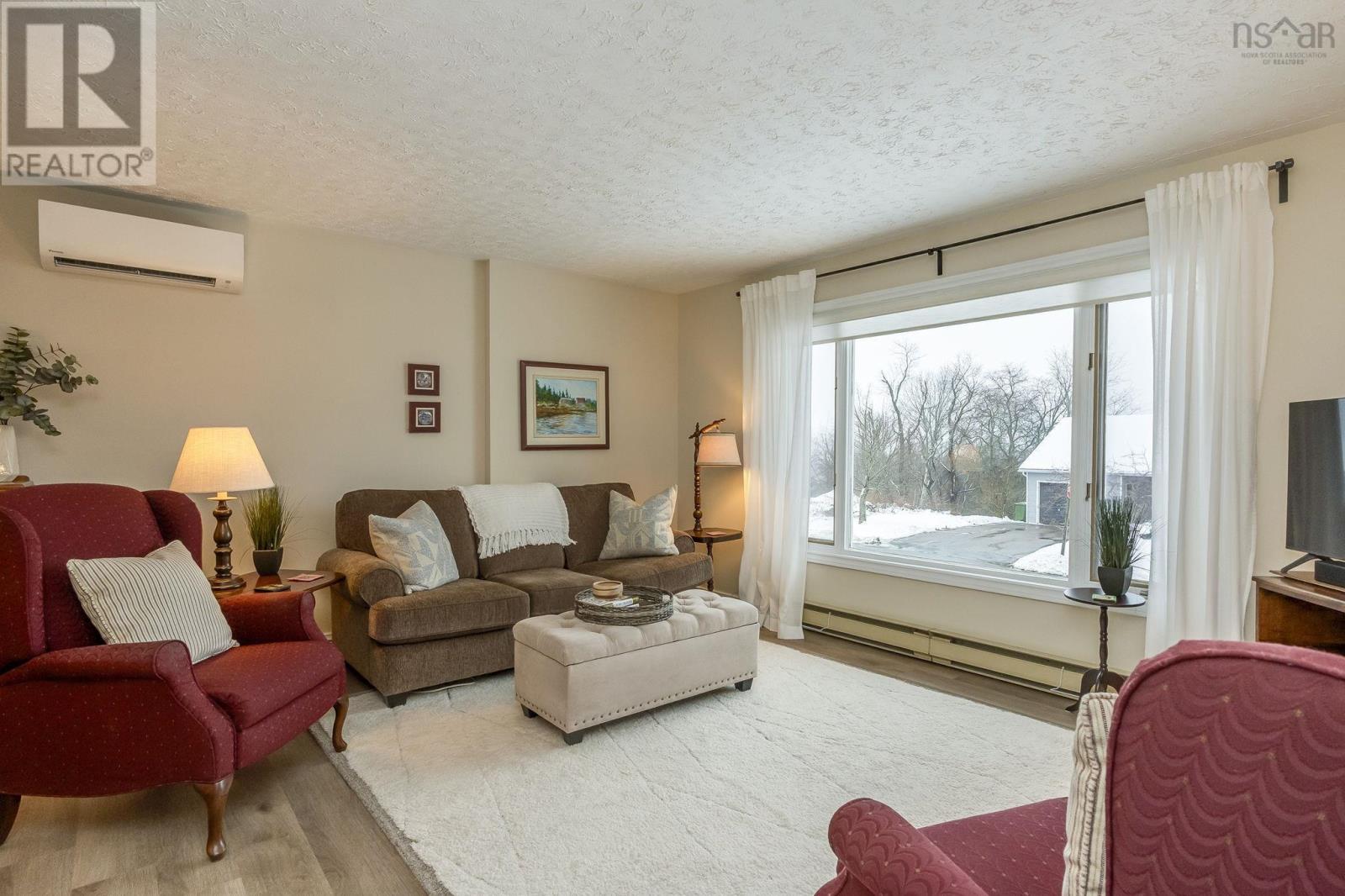 This lovely home is well maintained and move-in ready, with lots of possibilities! Main-level living attainable with back entrance at grade. This floor offers convenient laundry closet, an open kitchen (complete with appliances), dining area and bright living room, with an economical heat pump. Down the hall, two bedrooms and the primary, with direct access to the main bath. Downstairs has a generous rec room (gravity-fed oil stove disconnected/oil tank removed but could easily be reconnected or switched to wood or gas), a bathroom, plenty of storage space and another bedroom/den/office with walkout at grade and separate paved drive - ideal for an in-law/guest suite! Recently painted throughout, new flooring, most windows replaced, chimney repointed (2025), heat pump (2 yrs), siding (8 yrs), custom blinds, Hot Water Heater (2 yrs-wrapped) and more. Lovely, mature landscaping, easily maintained with inground irrigation. Great location, just minutes from Valley Regional Hospital, NSCC, schools, parks, and local amenities, this property should be on your list! (id:49203)