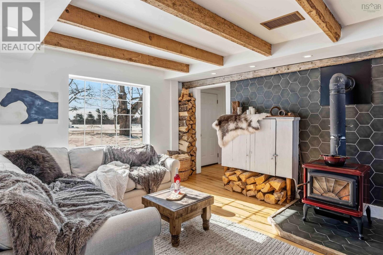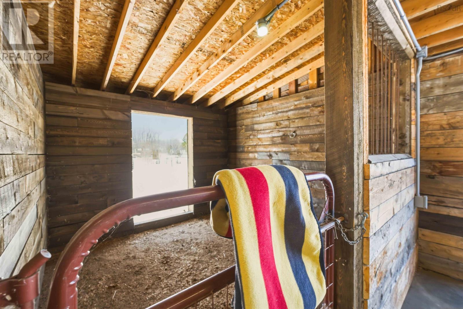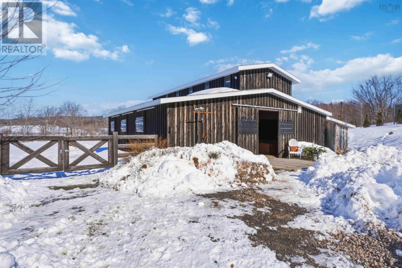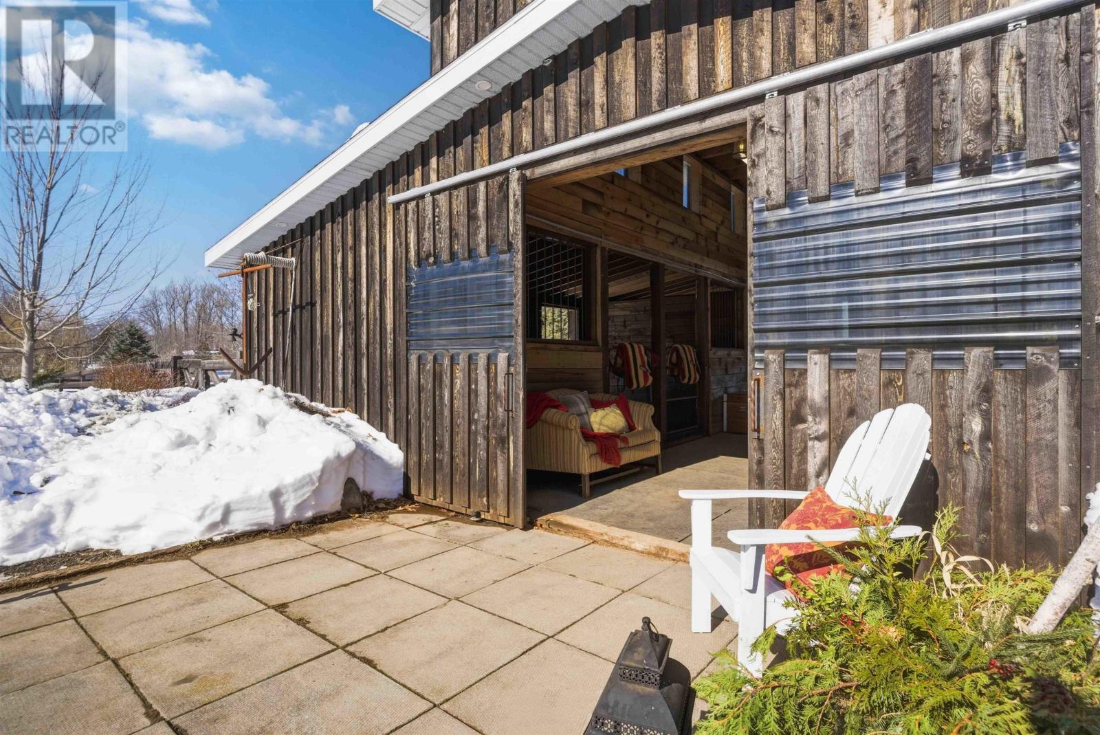 This classic New England cape cod style home has been carefully renovated to maintain its character and charm while adding warmth and comfort throughout. As you approach the property you will be drawn in by the inviting covered patio leading to the main entrance. Opening the door will reveal a large mudroom with laundry followed by an open concept kitchen/dining/living area complete with a wood stove - perfect for entertaining. A powder room, and a family room complete the main level, while upstairs you will find 3 bedrooms plus a 4-pc bath. The 1.9-acre property is fully cleared and was previously used to keep horses. The contemporary barn was constructed within the last 6 years and offers 2 large and airy horse stalls both with direct access to outdoors, one is 24 x 12 and the other is 12 x 12. The barn also includes a loft area, storage or work area, and a side shed bay. In front of the barn you will find a raised 120 x 80 sand riding ring and the former paddock behind the barn is still partially fenced and could easily be restored. A short walk to the back of the property provides a tranquil escape from everyday life where you can sit beside the little river and listen to the birds and animals chirp or enjoy the landscaped fire pit. While this property gives you that warm country feeling it is only 5 minutes away from town amenities and just 10 minutes from CFB Greenwood. (id:49203)